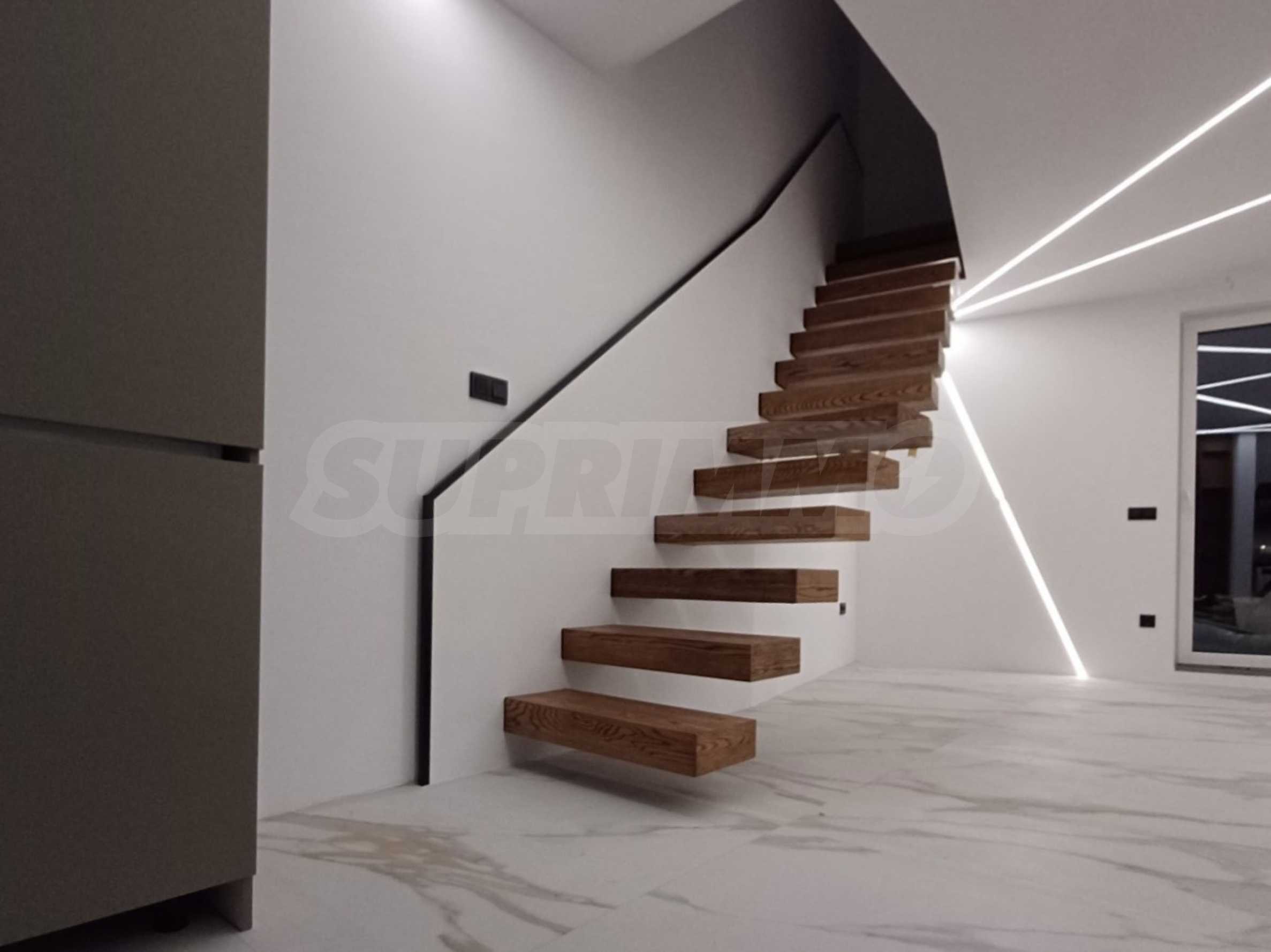 •Стълбище от масивен дъб, обработено с масла Osmo и LED амбиентно осветление;