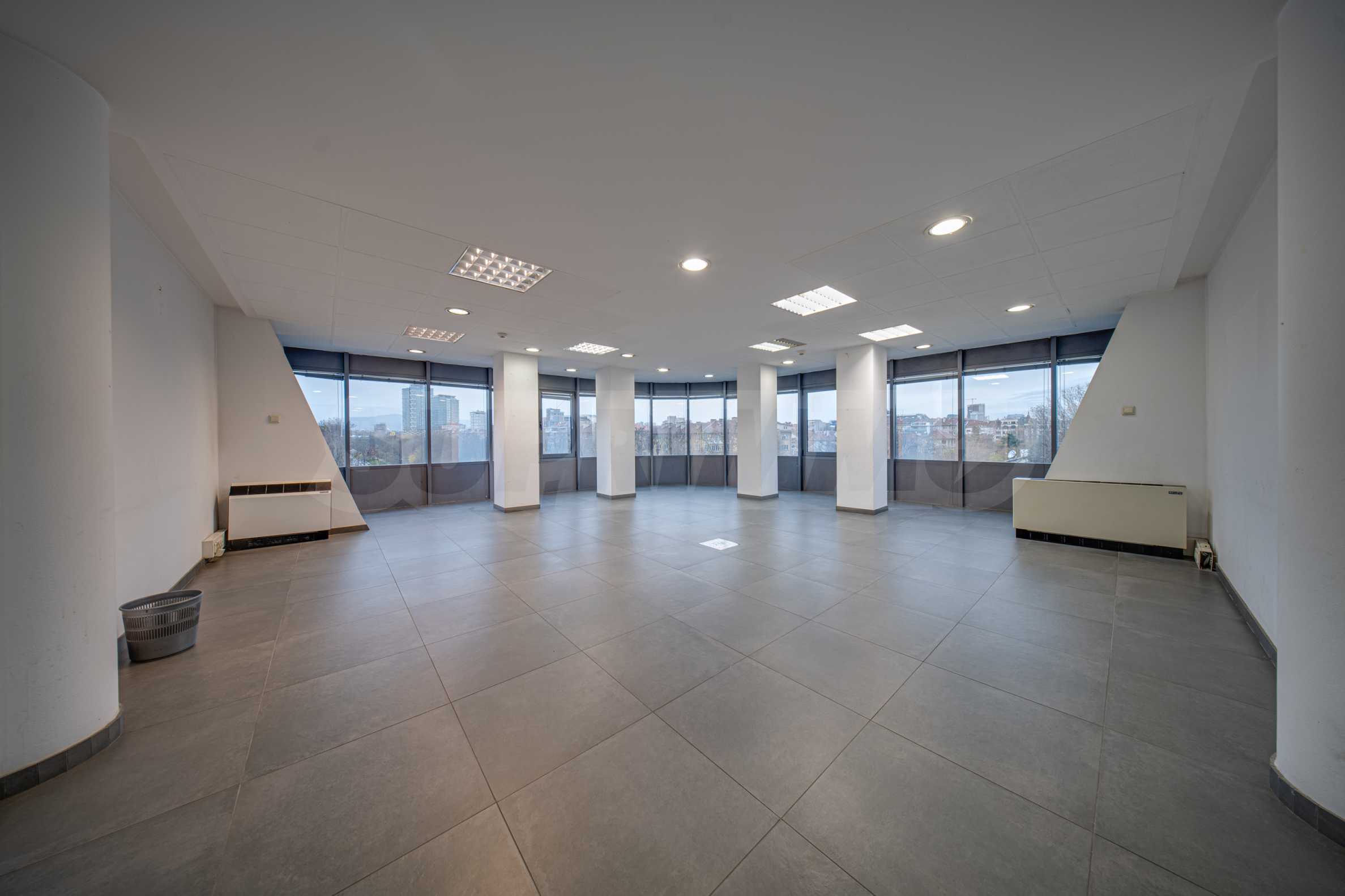 Офис със светли помещения в бизнес сграда до НДК, мол Парк Център София и хотел „Хемус”. На метри се намира метростанция "Европейски съюз" и големите столични булеварди - „Арсеналски” и „Черни връх”. Имотът е част от сграда с Разрешение за ползване от 2000 г., разполагаща с луксозни общи части, контролиран достъп и денонощна охрана 24/7. Районът е отлично развит и предлага бързи транспортни връзки с отделни точки от града.