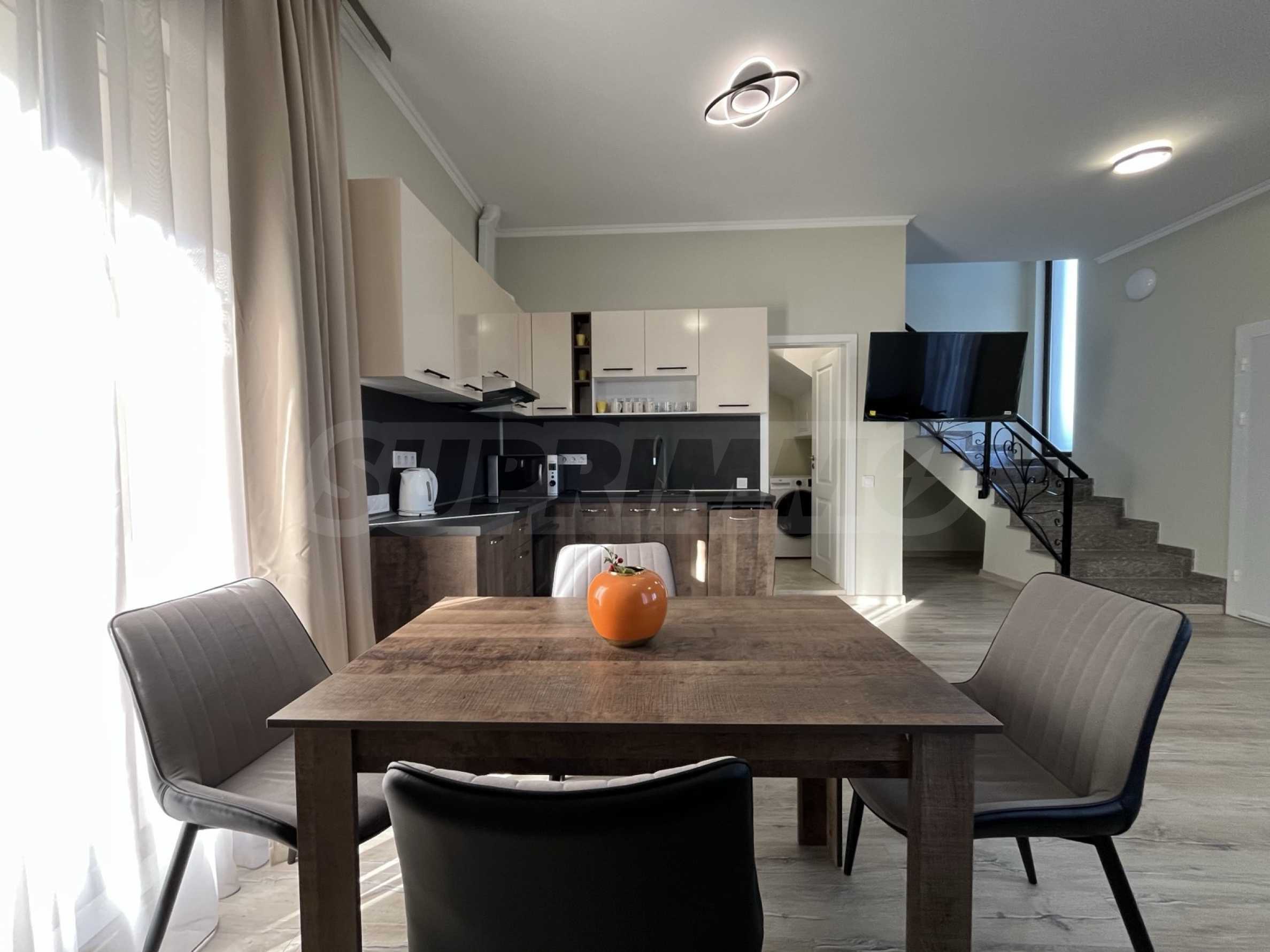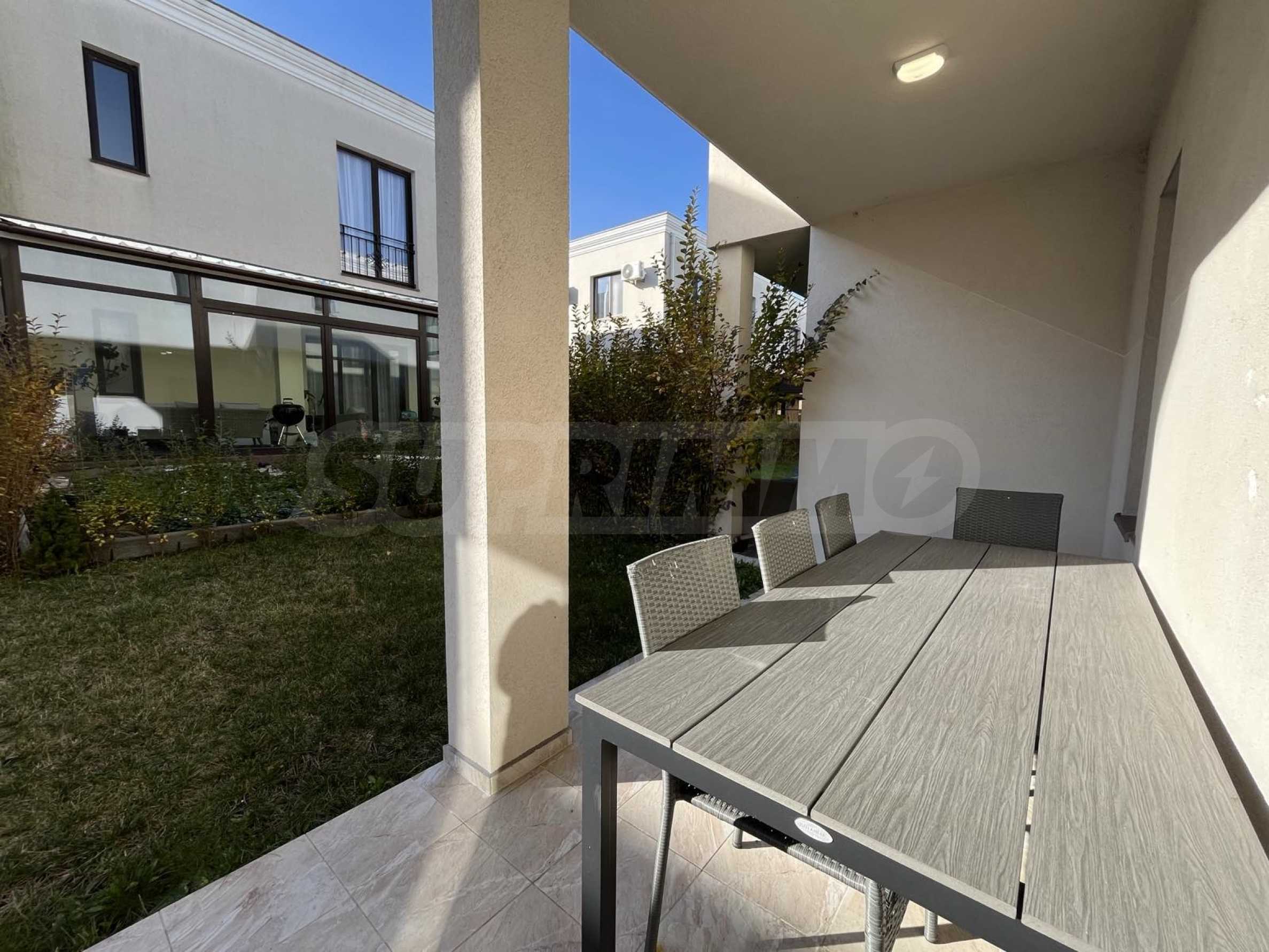 Къщата е напълно обзаведена и оборудвана с чисто нови мебели и техника. Паркирането е осигурено с открити паркоместа.