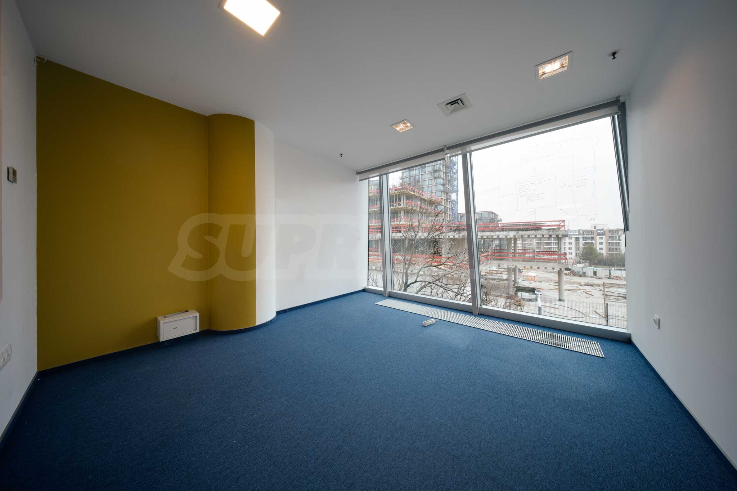 Състои се от две по-големи помещения, рецепция и три малки стаи. Подовата настилка е с мокет, стените са с латекс, а осветлението е ЛЕД. Има двоен под с подови кутии и пълно окабеляване.
