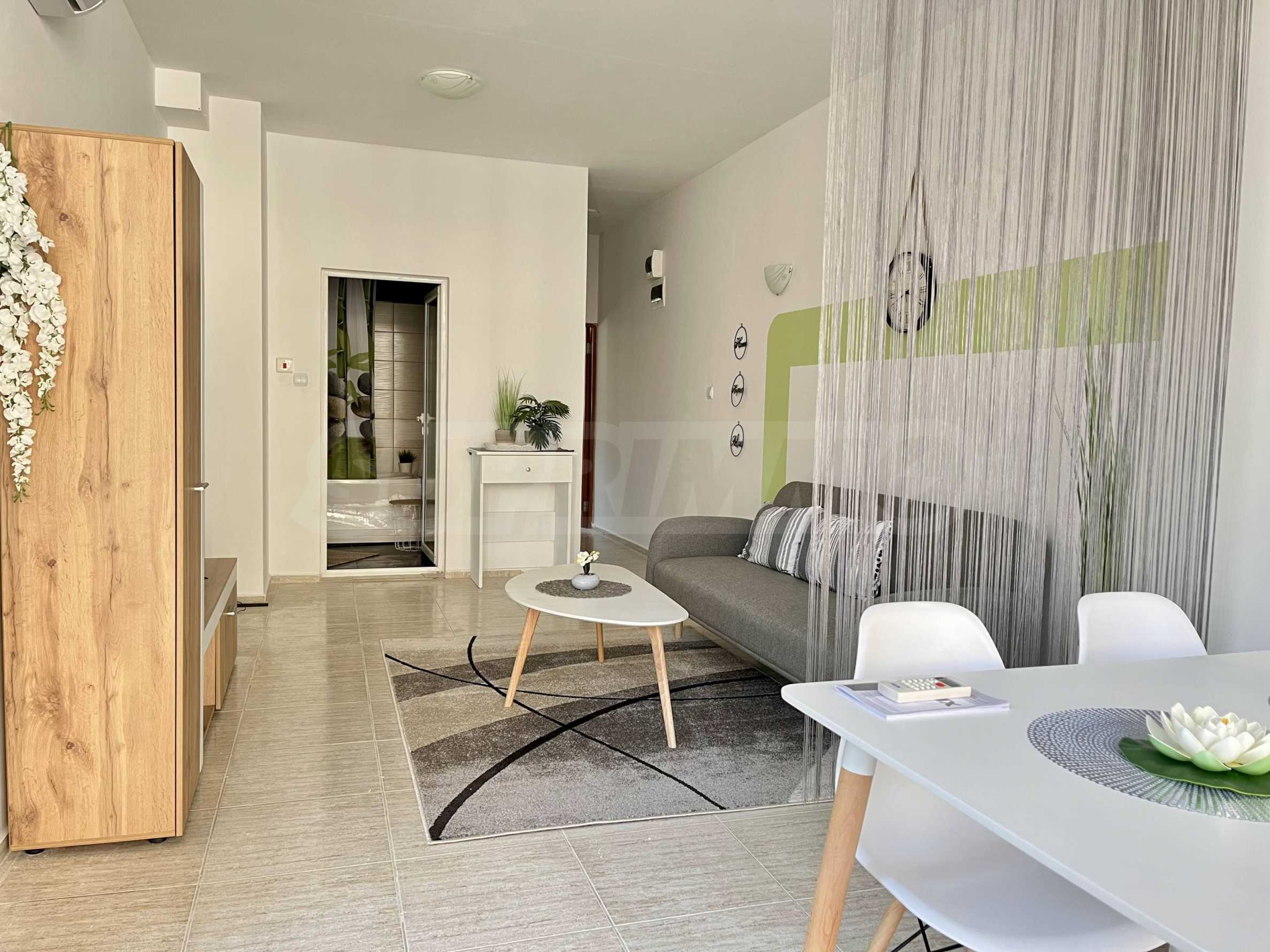 Жилището е след основен ремонт, комфортно обзаведено с чисто нови мебели и техника. Настилките са от гранитогрес в дневната и спалнята, стените са боядисани с латекс, банята е с теракот и санитарен фаянс на Ideal Standard. Отоплението е посредством нов инверторен климатик.