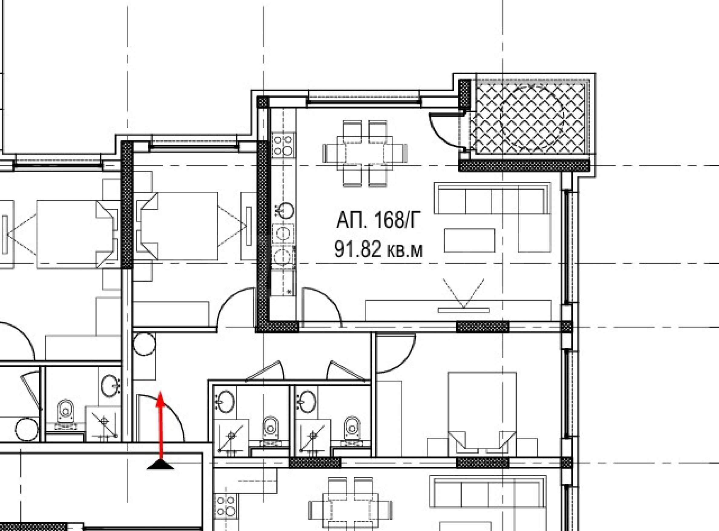 Имотът е разположен на 3-ти етаж и е с обща площ 106.09 кв.м, чиста площ - 91.82 кв.м, върху които са разпределени: антре, две бани с тоалетни, дневна с кухня и тераса, две спални. Жилището се издава в степен на завършеност по БДС, с петкамерна PVC дограма Rehau, с троен стъклопакет и блиндирана входна врата.