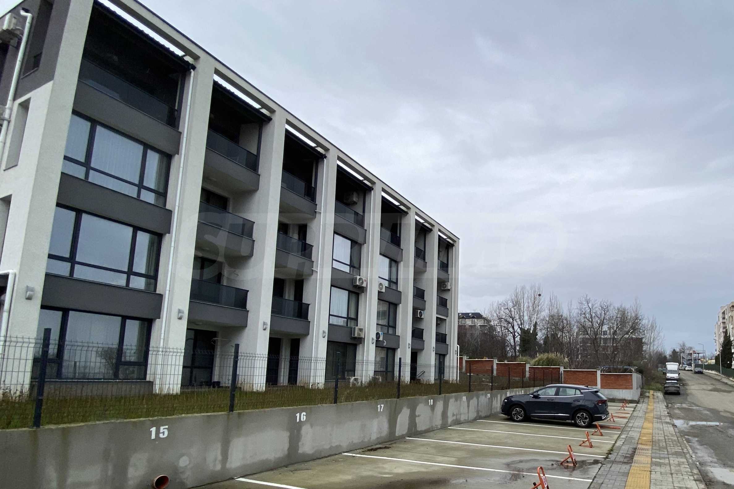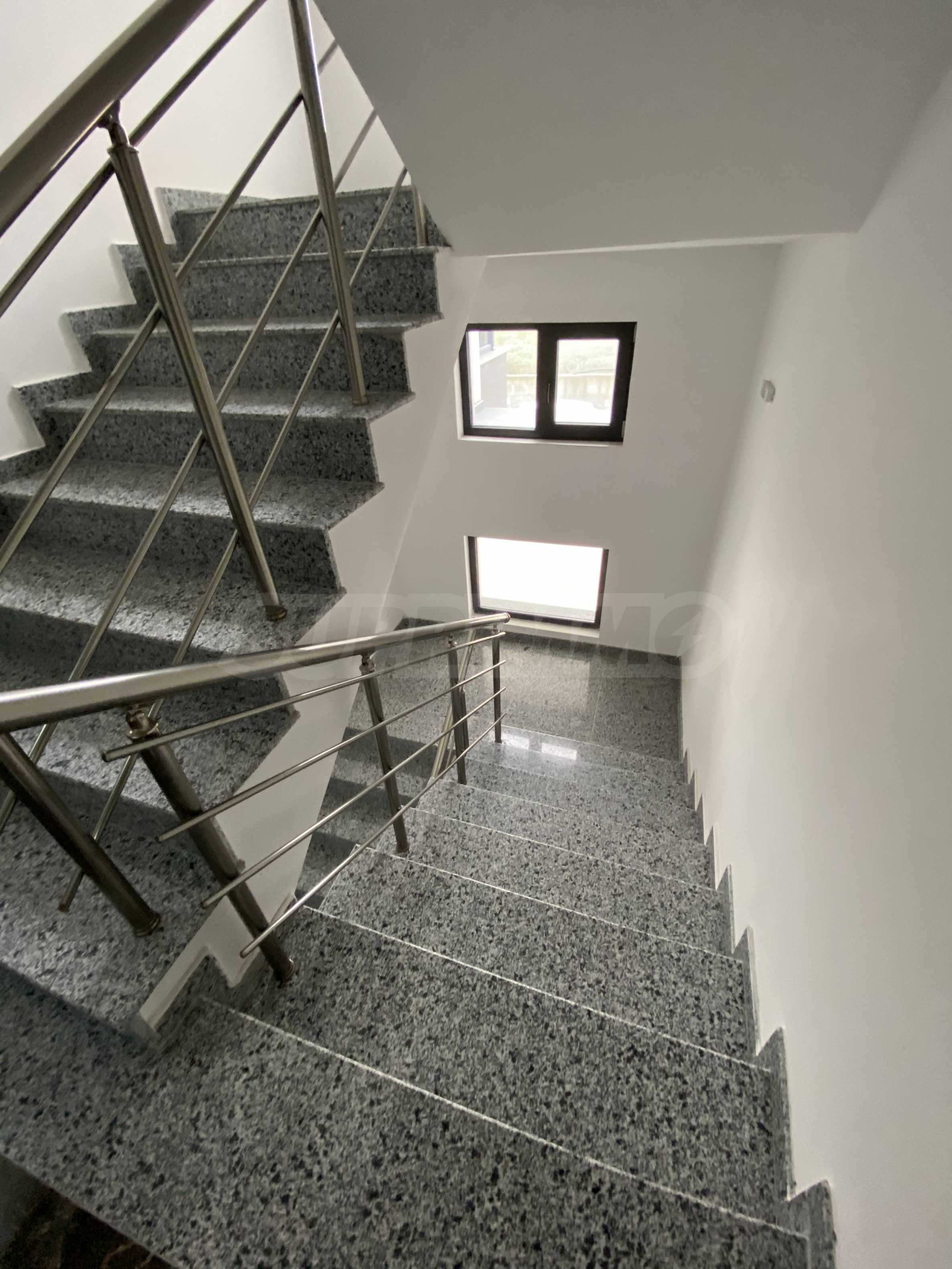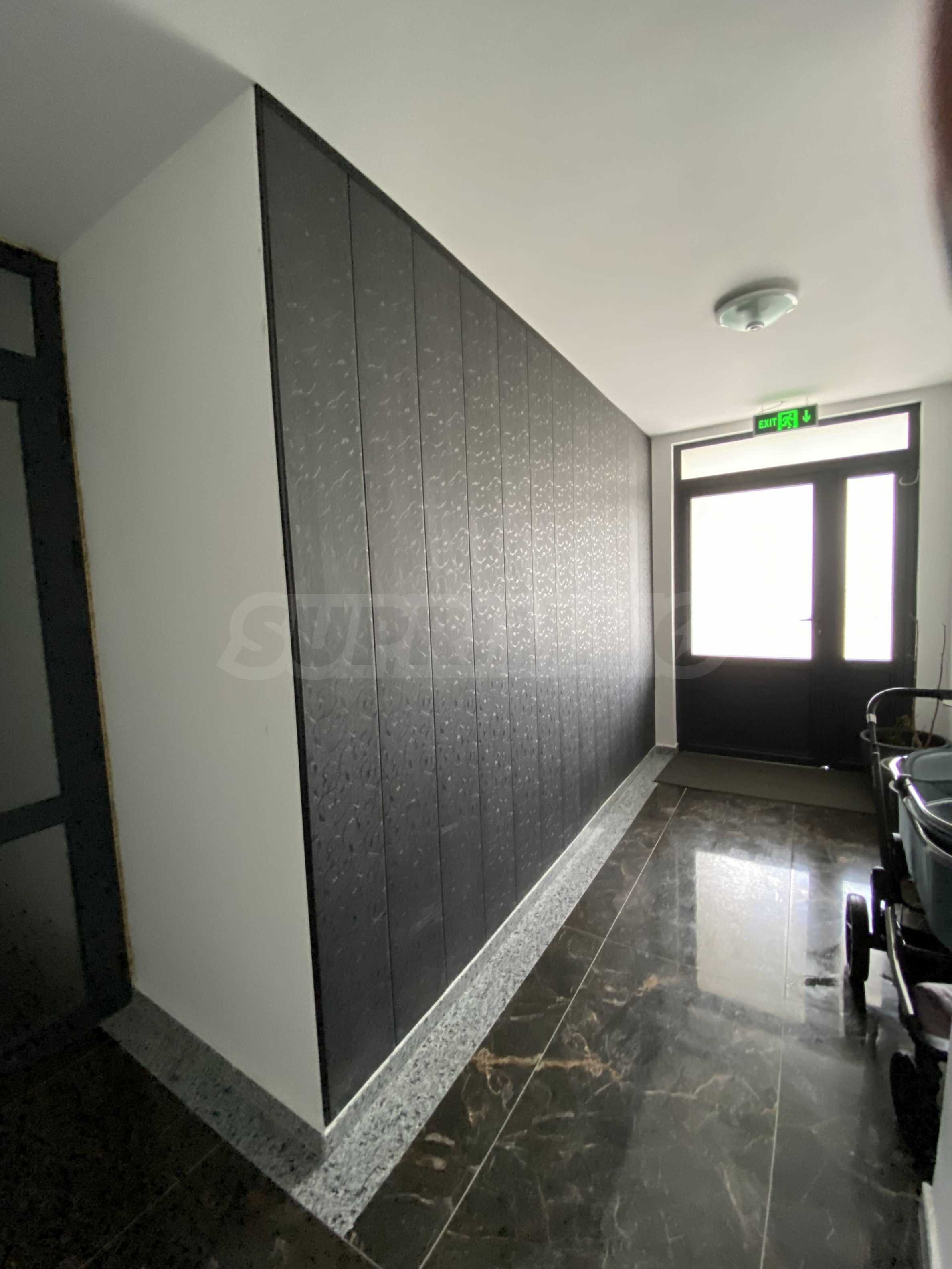 Сградата е със съвременна, градска визия, изпълнена с висококачествени материали, като настилките в коридорите са от гранит.