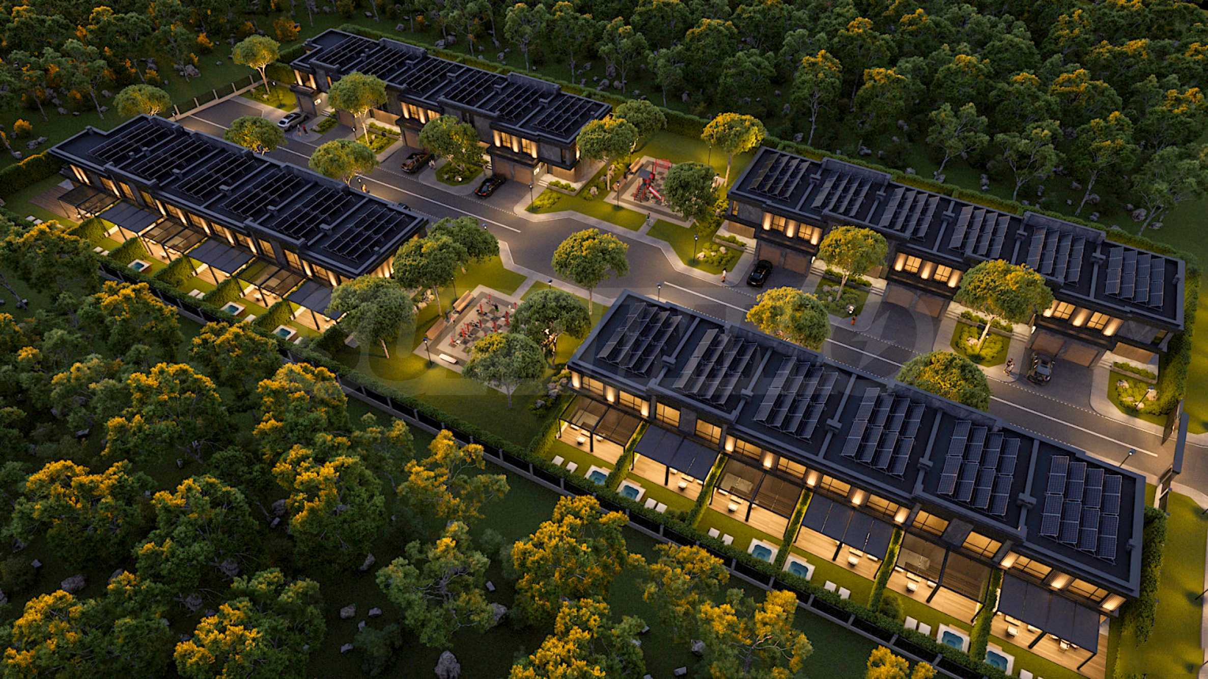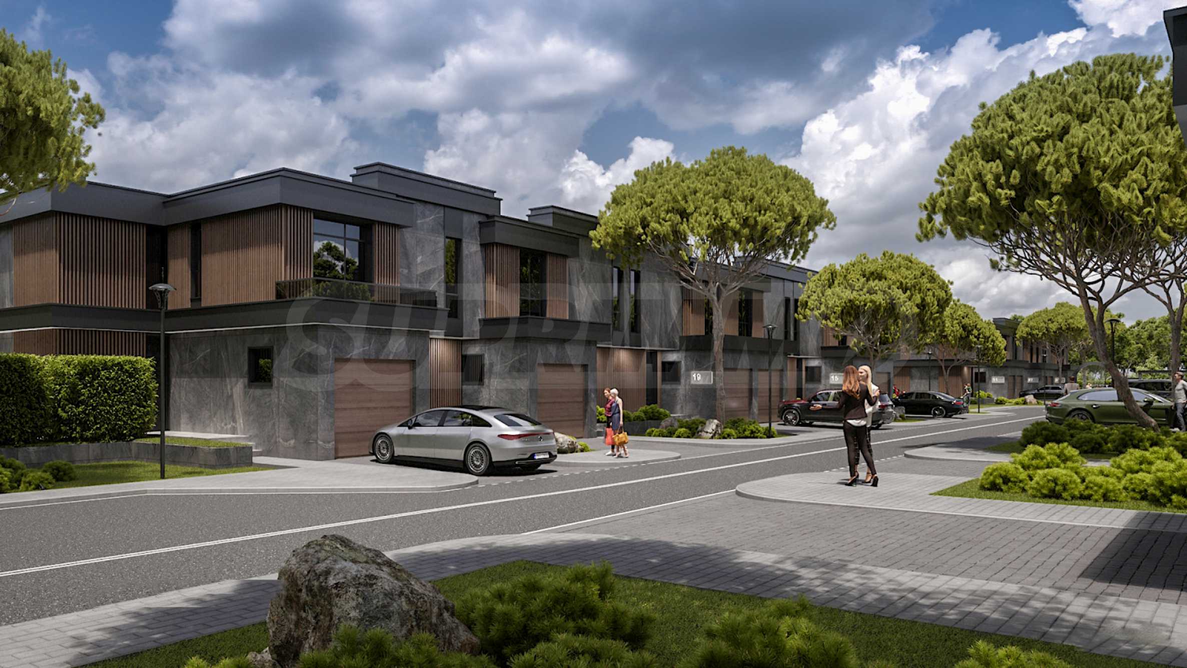 Комплексът представлява малък затворен ансамбъл от 24 редови къщи, разпределени в четири самостоятелни сгради. Всяка къща разполага със собствен двор и веранда, осигуряващи уединение и комфорт. Паркоместата са с ориентировъчна площ около 18 кв.м всяко. Дворовете към средните къщи са приблизително 40 кв.м, като крайните къщи разполагат с по-големи дворове