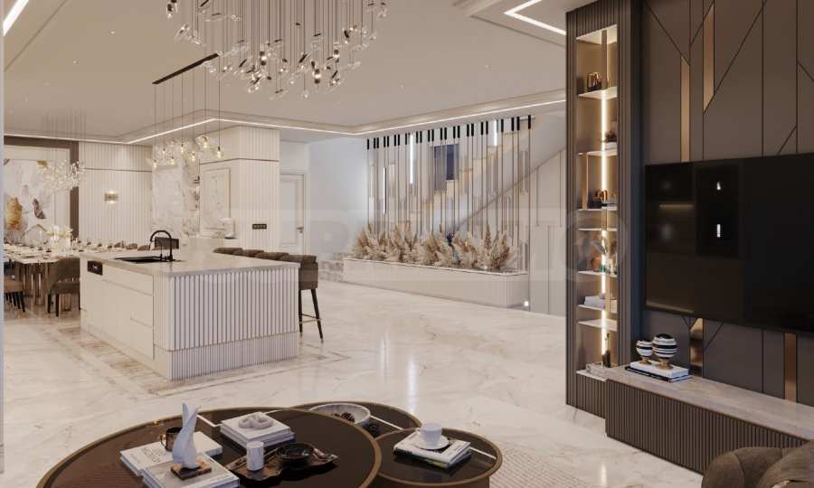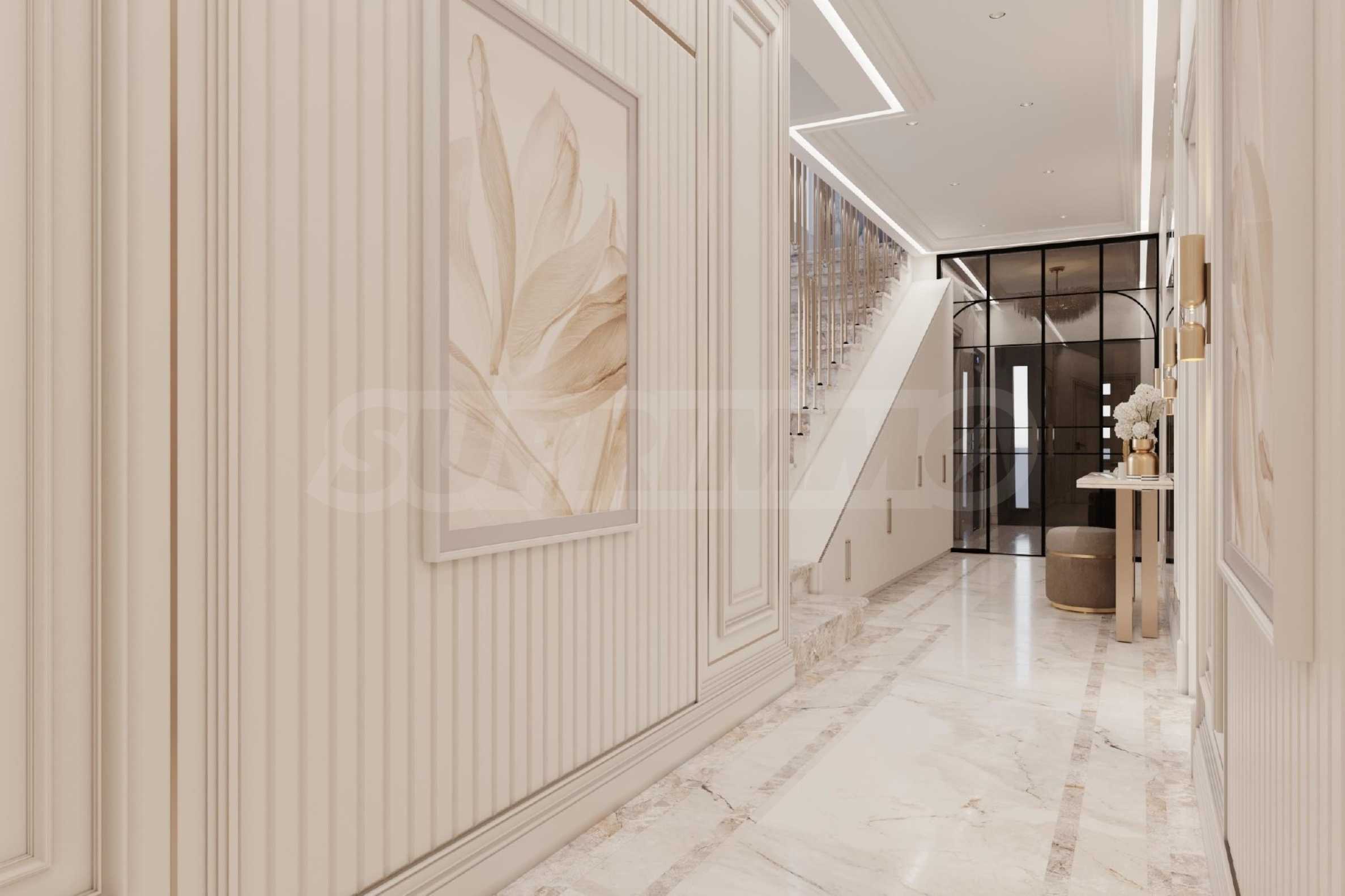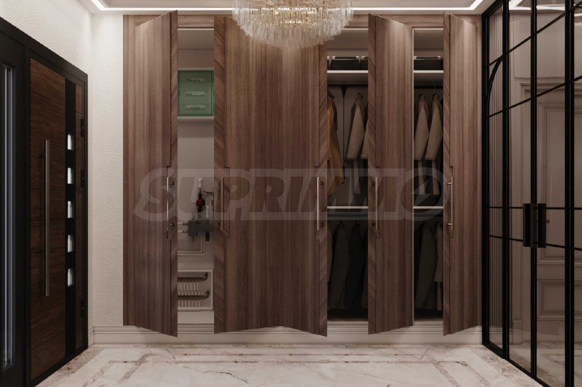 Къщата се предлага с първокласни довършителни работи "до ключ" (снимките с интериорен дизайн са примерни). Архитектурата ѝ е модерна, с акцент върху просторните обеми, естествената светлина и функционалното разпределение. Тази къща предоставя отлична възможност за създаване на висок клас семеен дом, съобразен с индивидуалните предпочитания на бъдещите собственици.