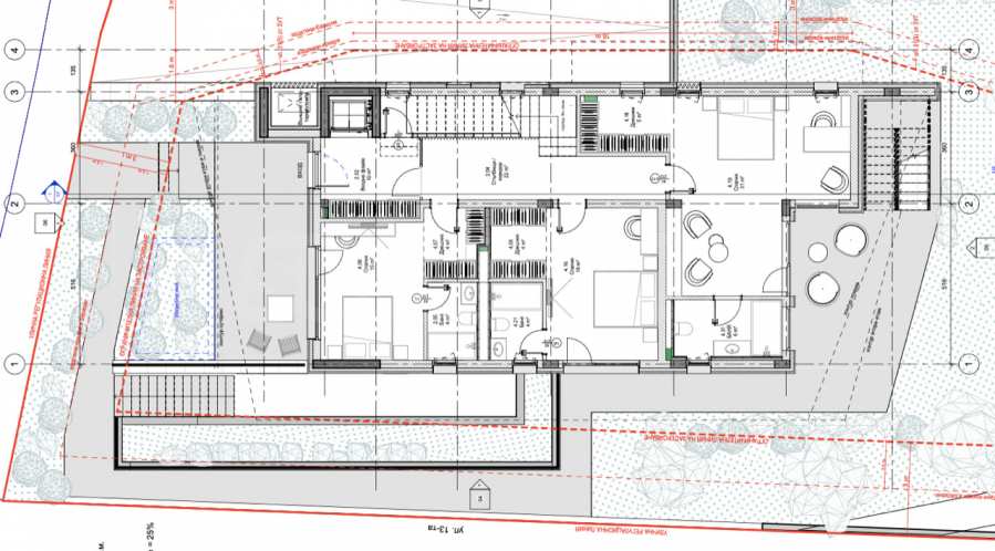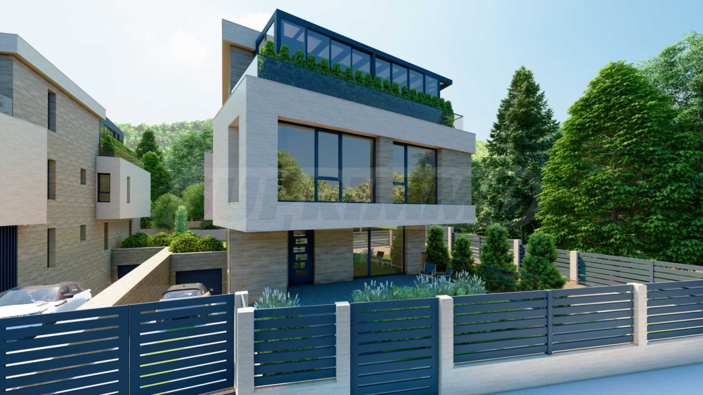 • надземни етажи – просторни помещения с възможност за обособяване на представителна дневна зона, спални, кабинети и зони за отдих, с панорамни гледки към Витоша;