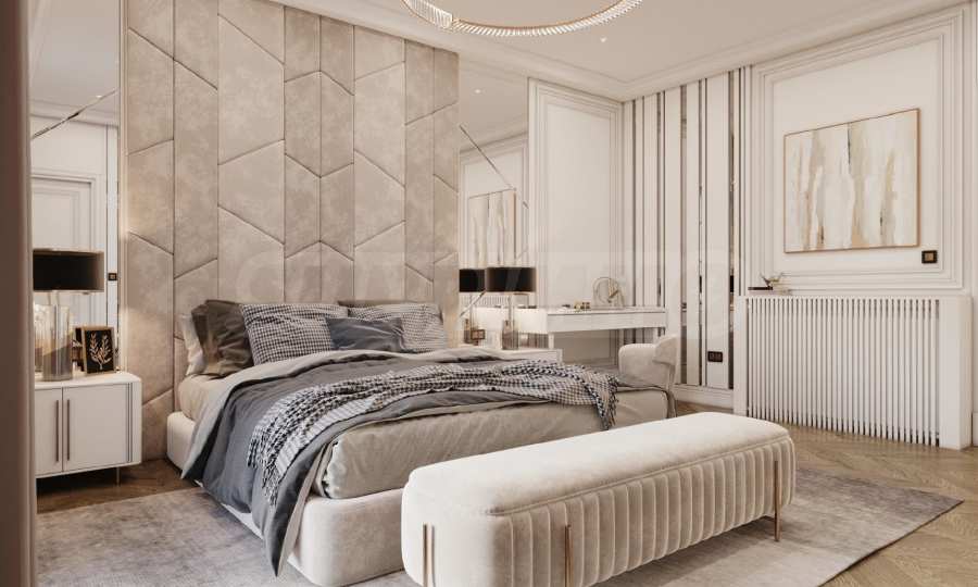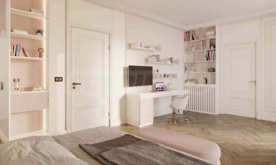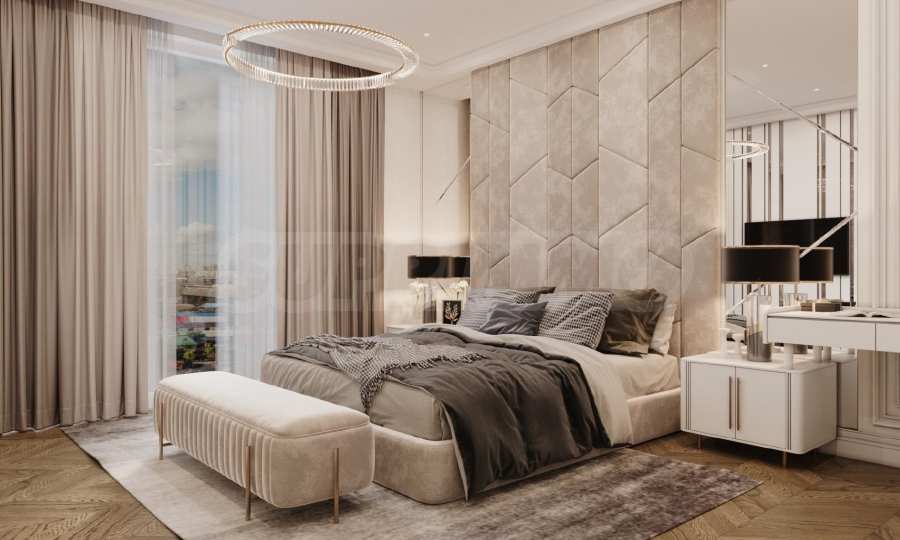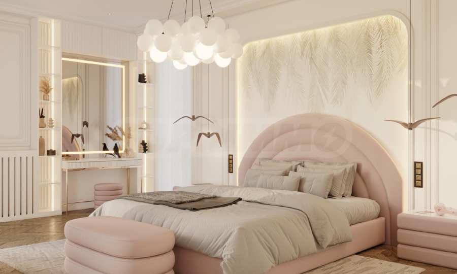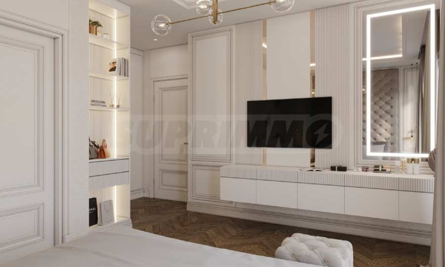 • настилки в спалните – висок клас естествен паркет (съгласуван с дизайнера);
