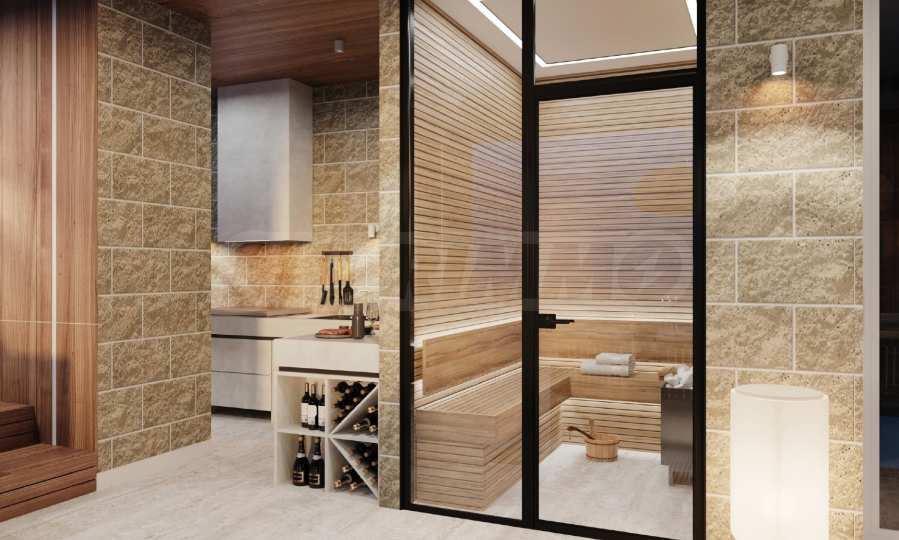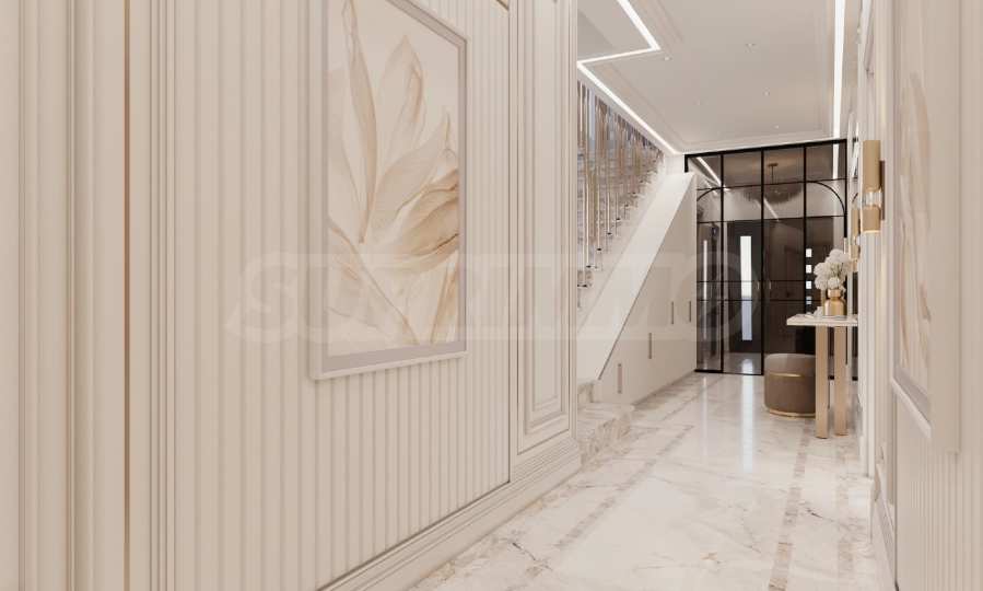 • стъпала – облицовка от гранит или травертин (след съгласуване с дизайнера);