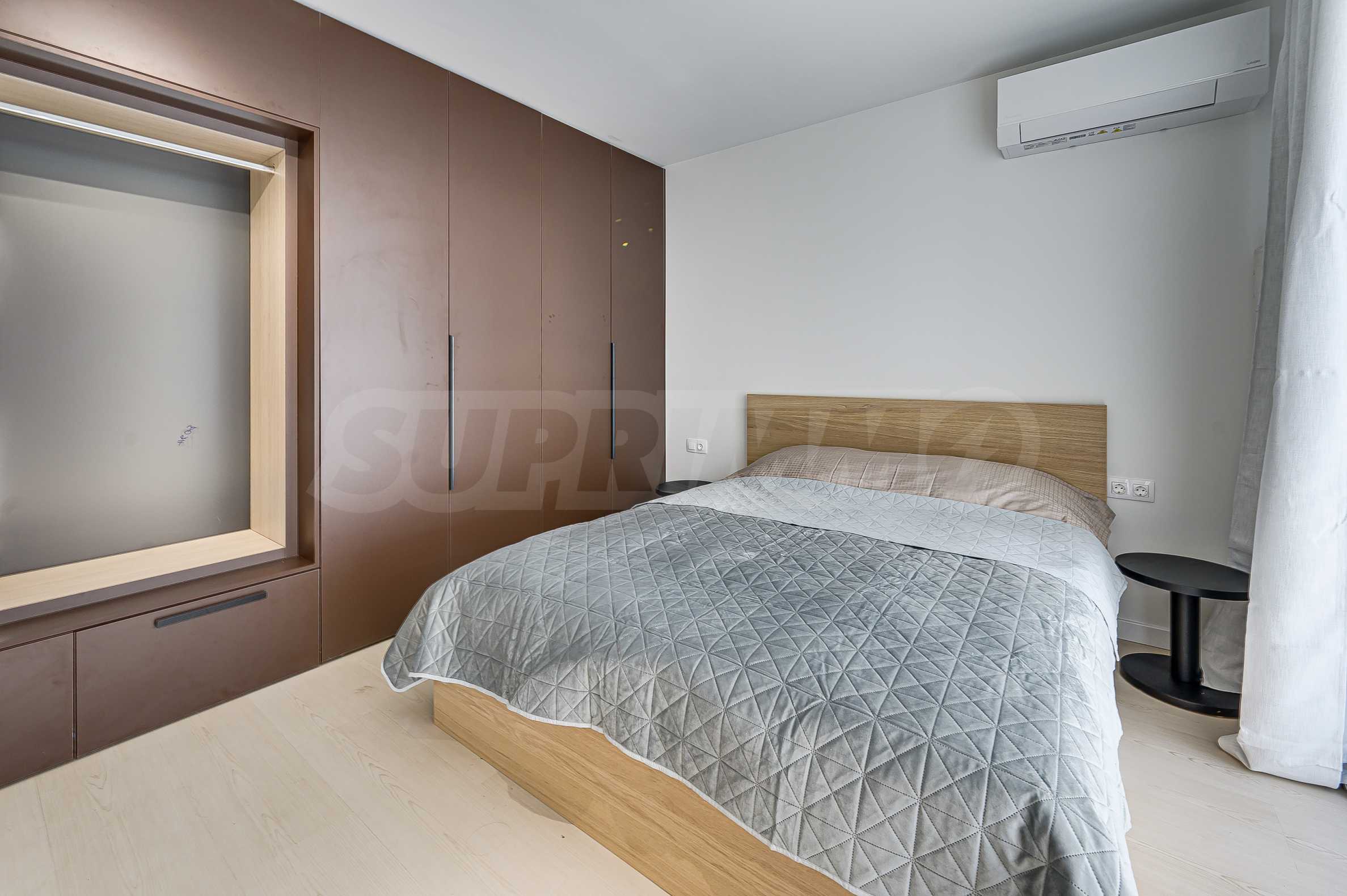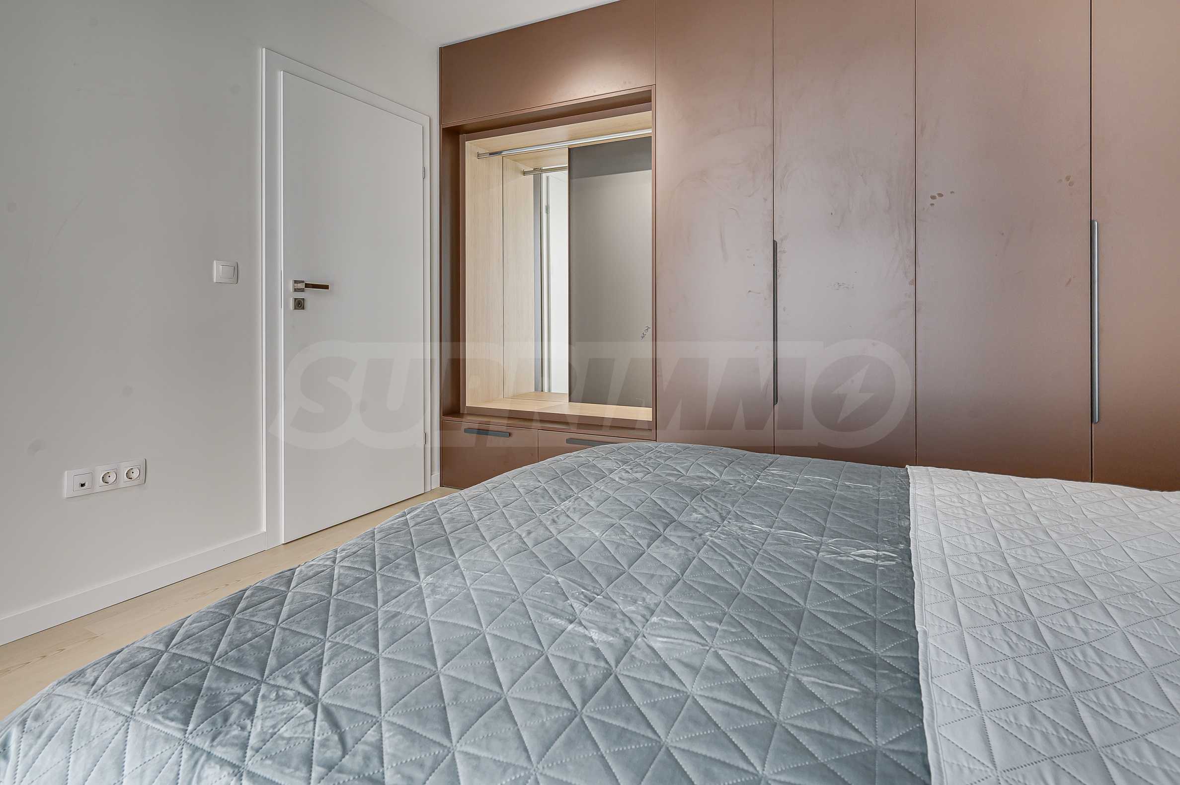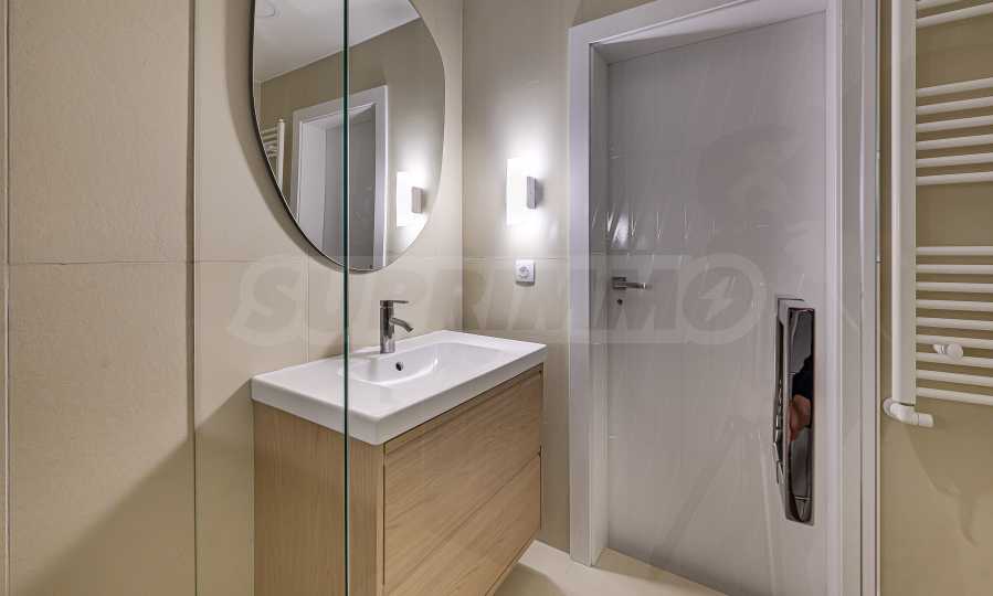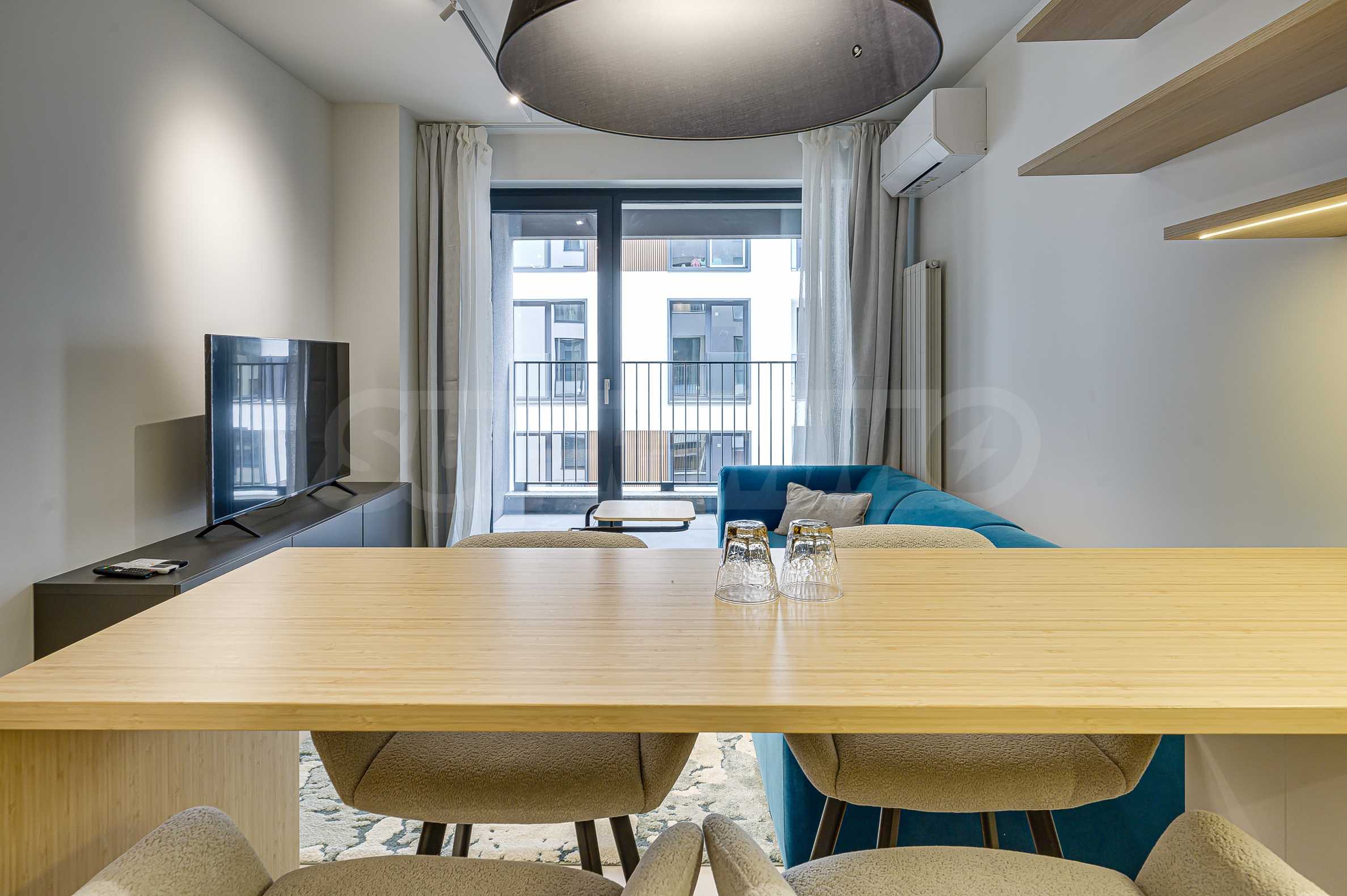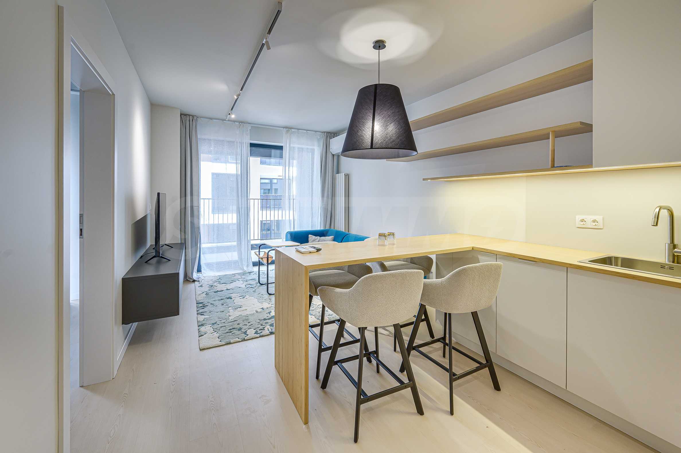 Апартаментът е реализиран по индивидуален проект – всичко е ново, подбрано с внимание към детайла и усещане за елегантен минимализъм. Пространствата са балансирани и функционални.