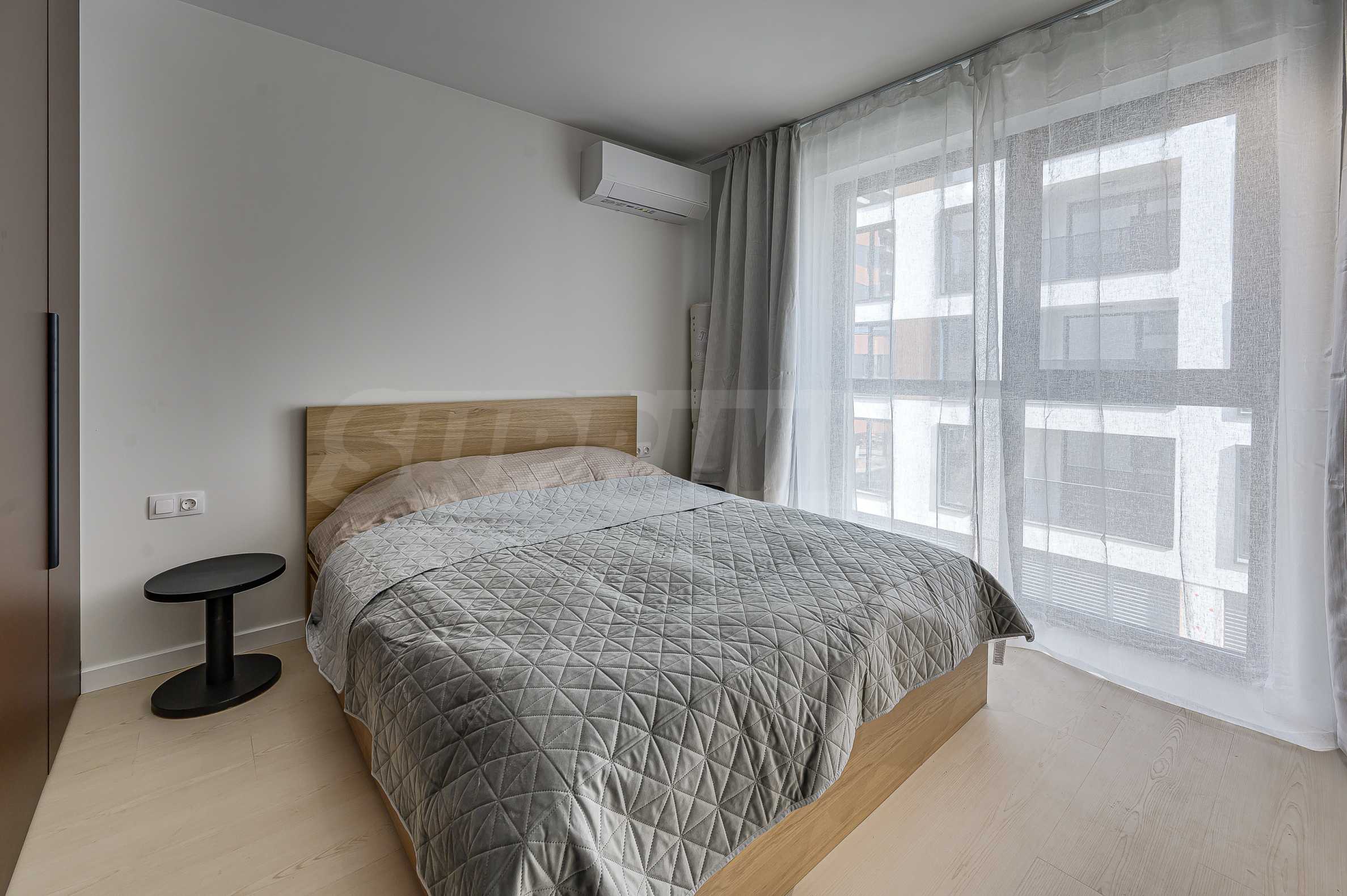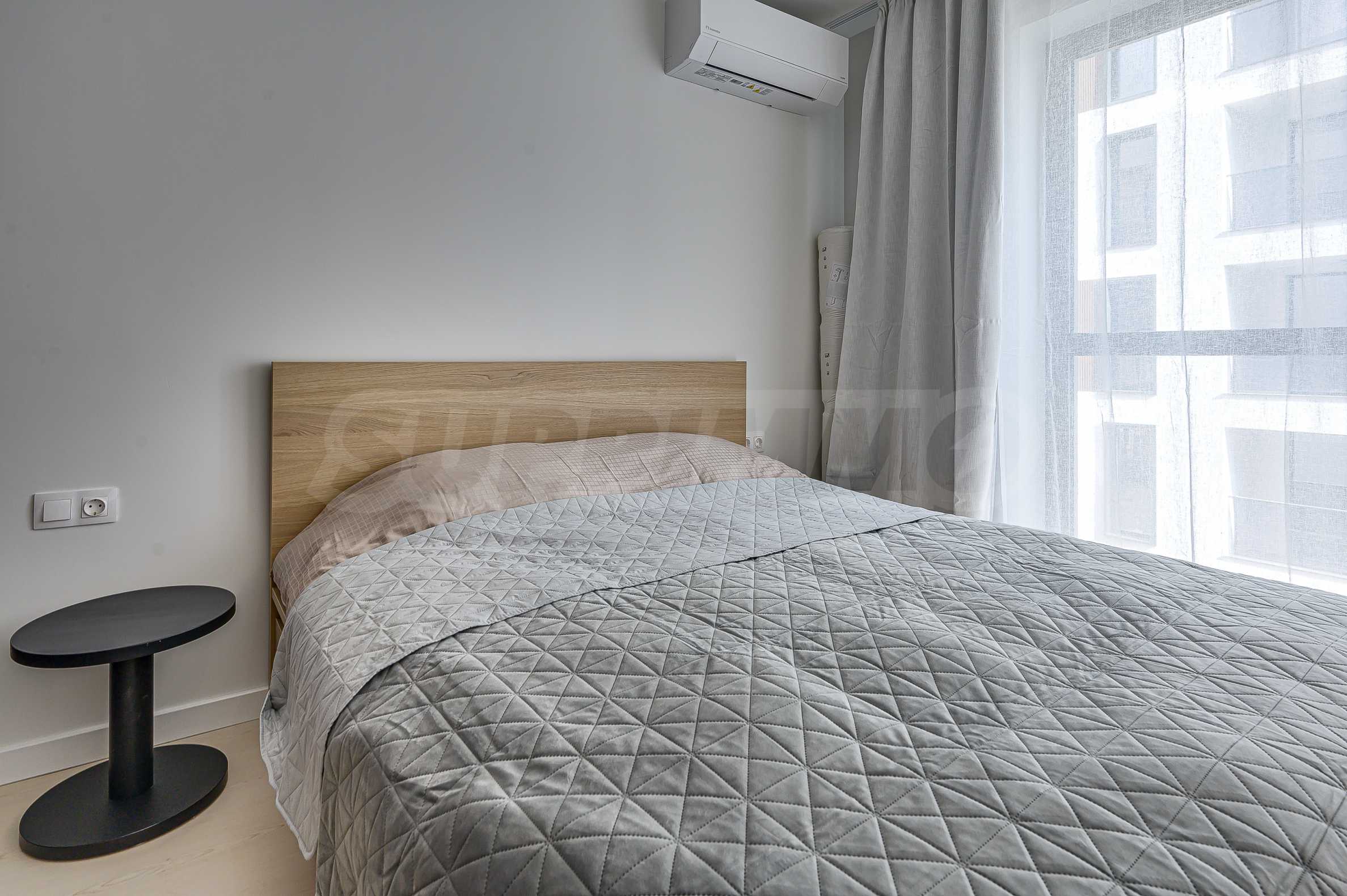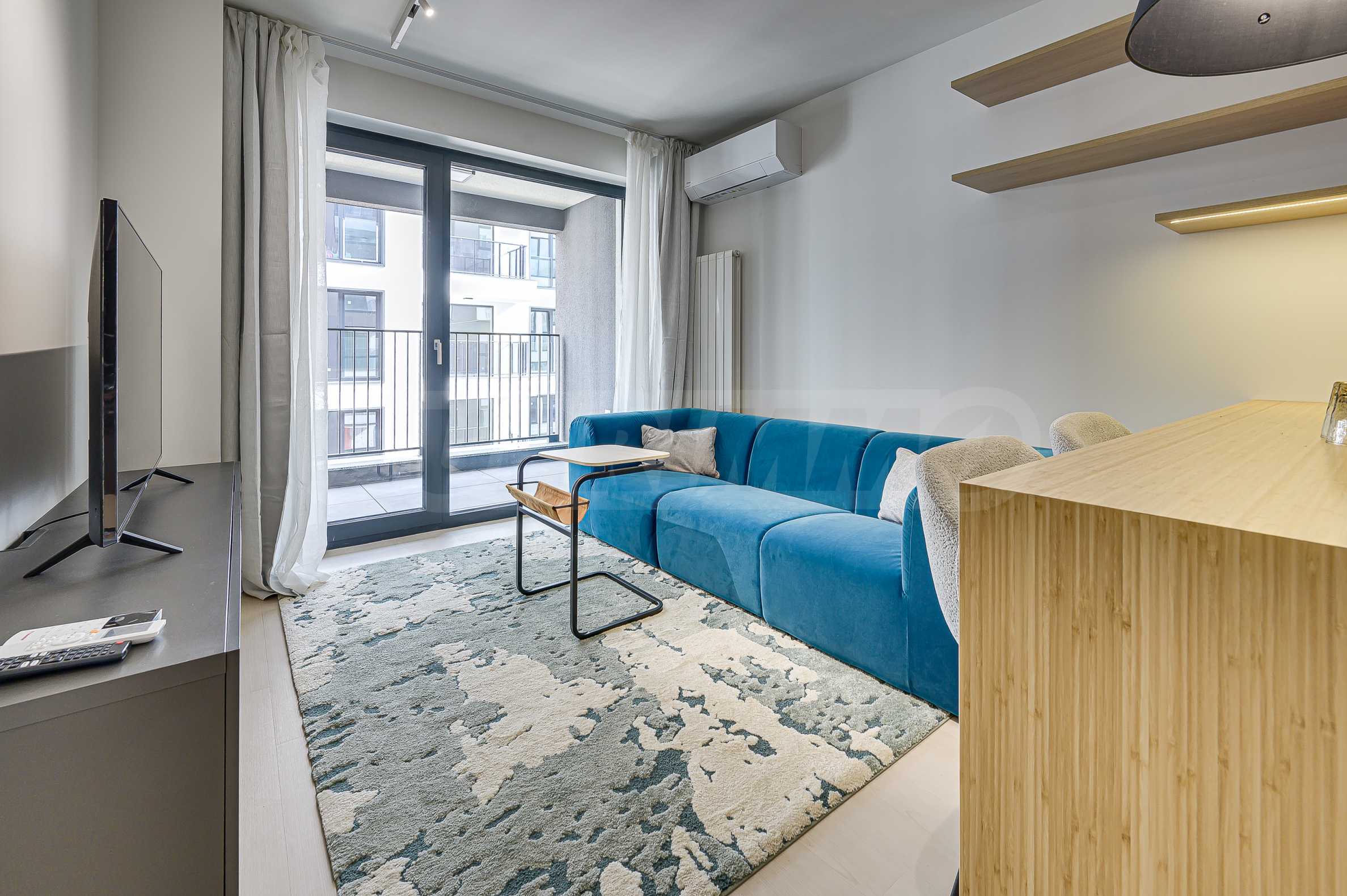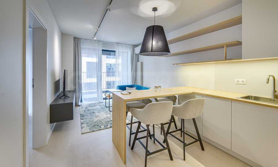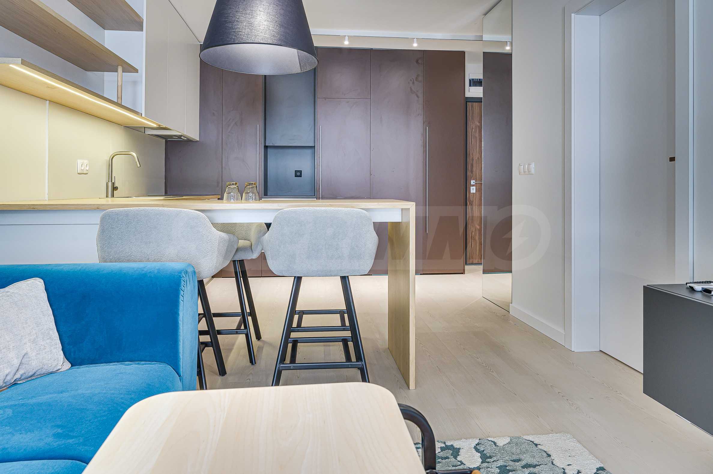 Апартаментът е реализиран по индивидуален проект – всичко е ново, подбрано с внимание към детайла и усещане за елегантен минимализъм. Пространствата са балансирани и функционални.