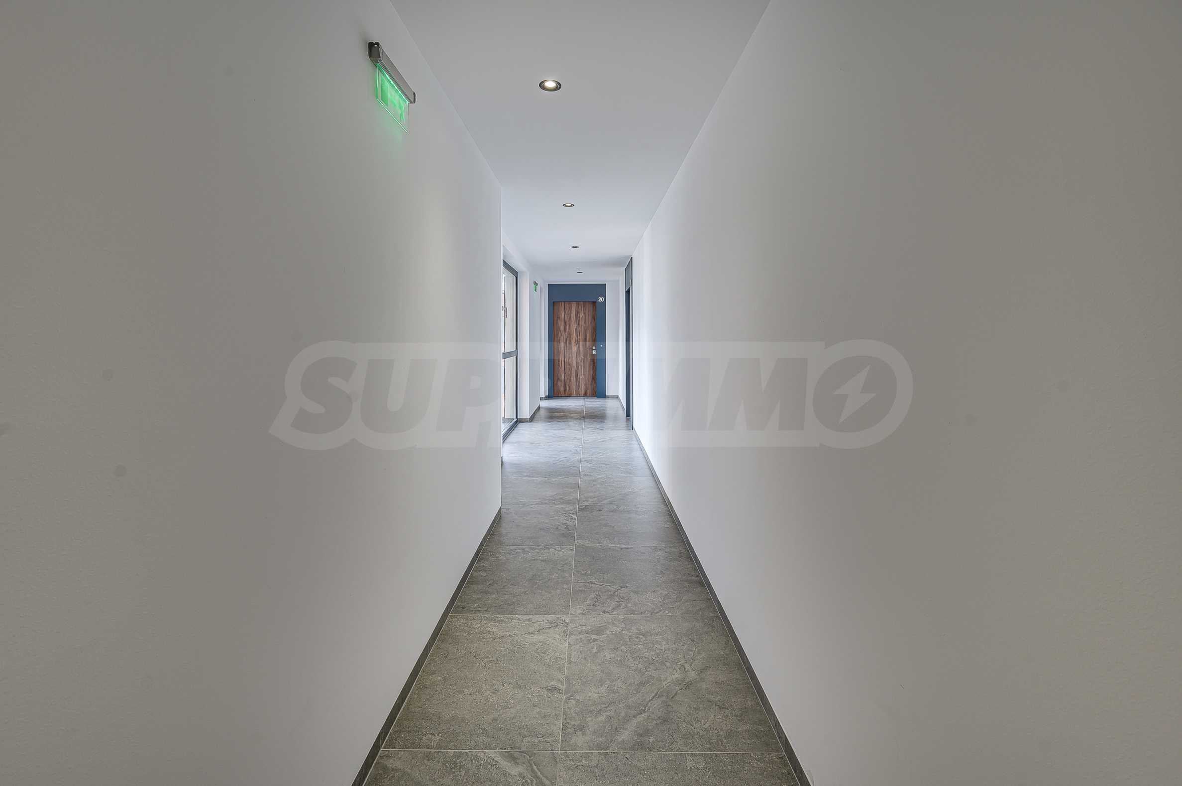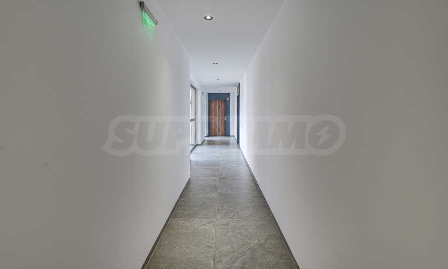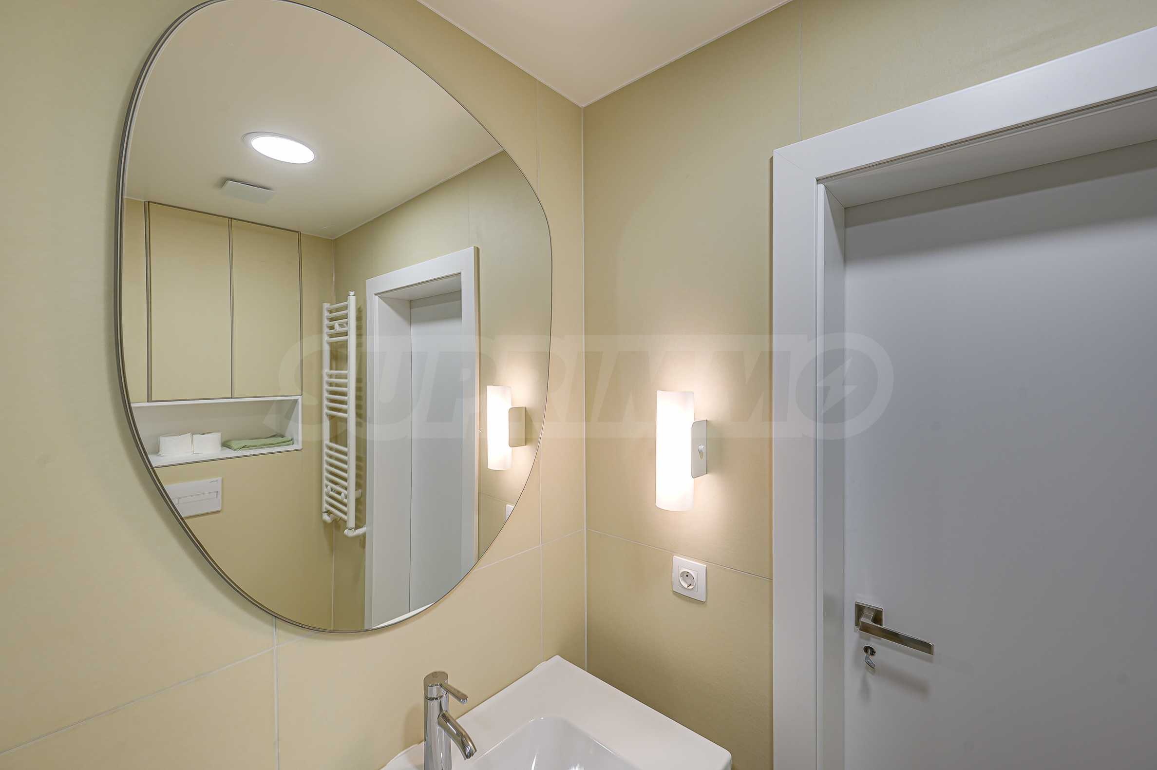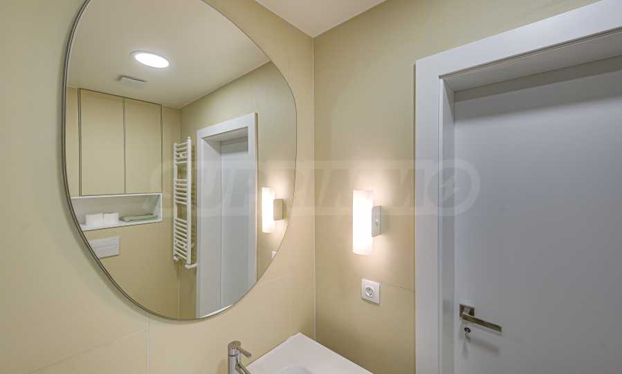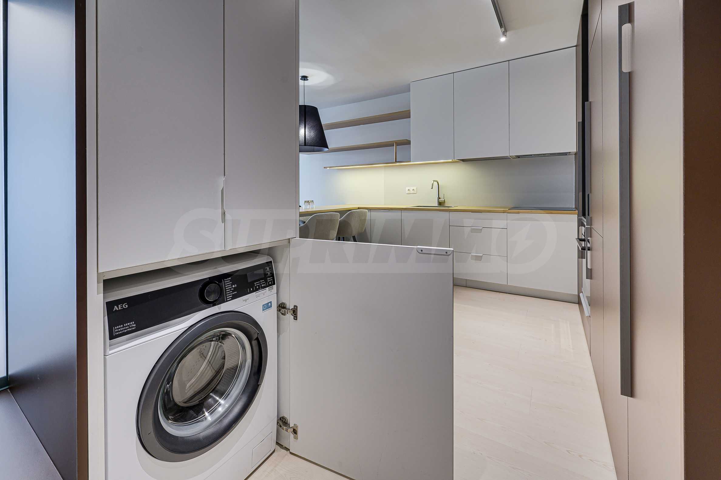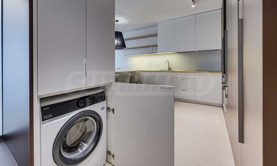 Апартаментът е реализиран по индивидуален проект – всичко е ново, подбрано с внимание към детайла и усещане за елегантен минимализъм. Пространствата са балансирани и функционални.