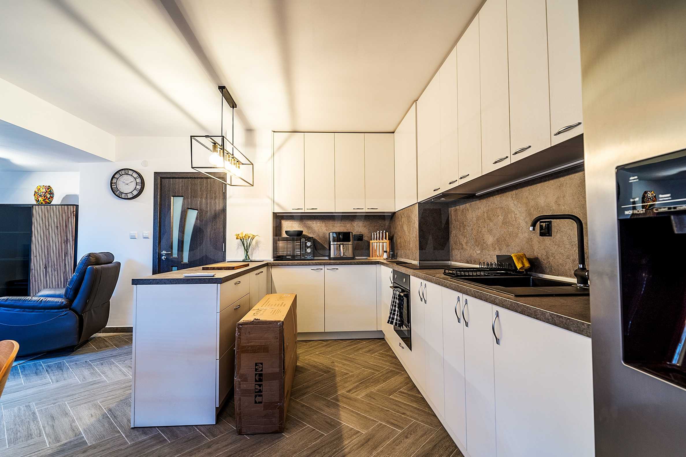 Апартаментът е след основен ремонт, модерно обзаведен и напълно оборудван, не е ползван от собствениците или отдаван под наем.