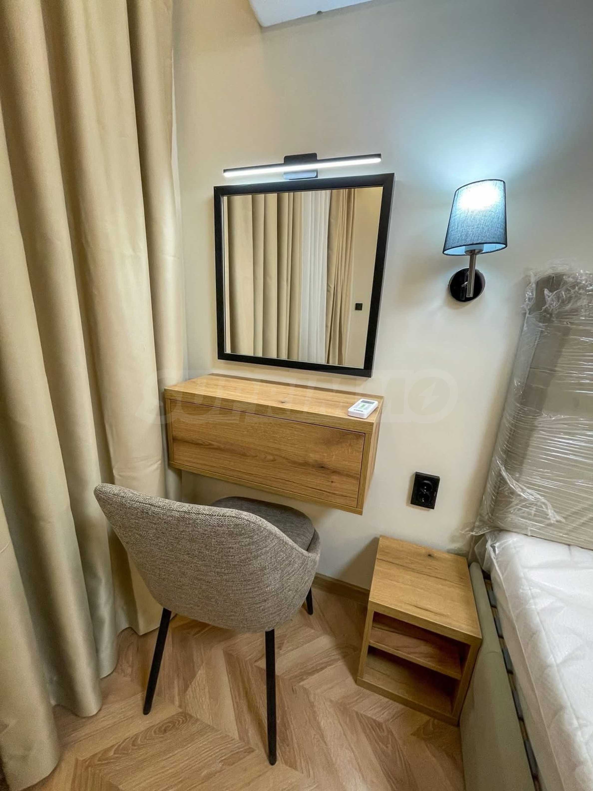 Апартаментът е напълно обзаведен и оборудван с всичко необходимо за живеене като мебели и ел. уреди.