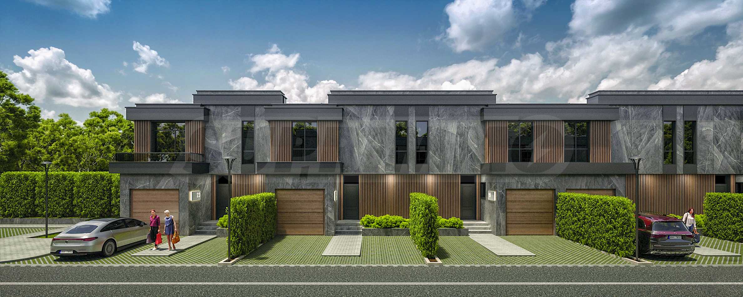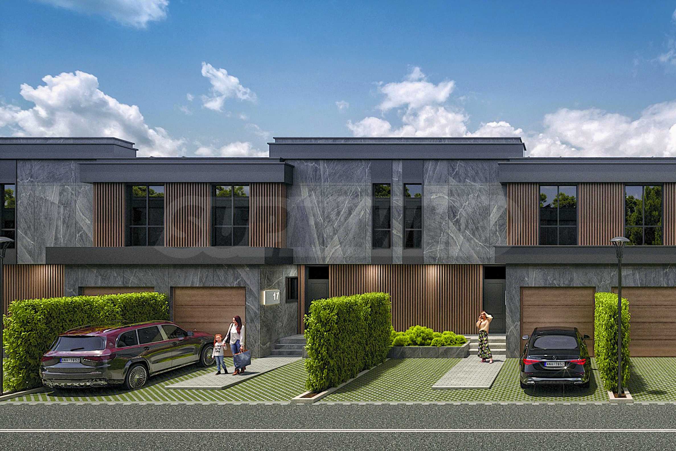 Имотите се отличават с модерна архитектура, естетически издържана визия и функционални разпределения. В цената са включени собствен гараж и две допълнителни паркоместа. Дневната зона е разположена на първия етаж, а спалните – на втория, осигурявайки ясно разграничение между общи и лични пространства.