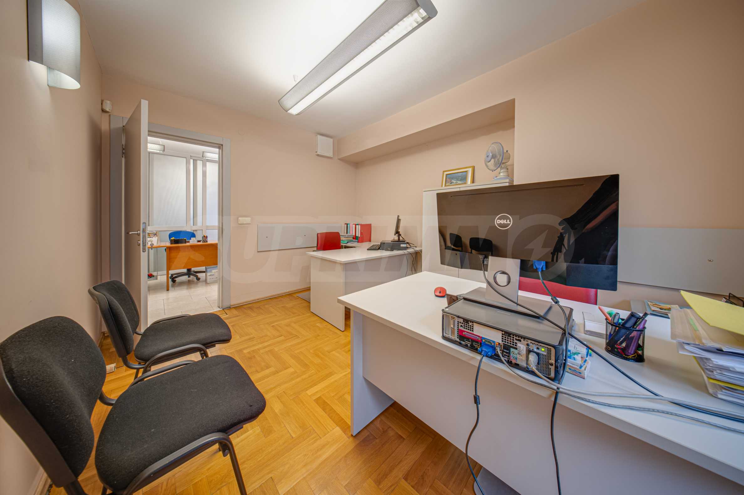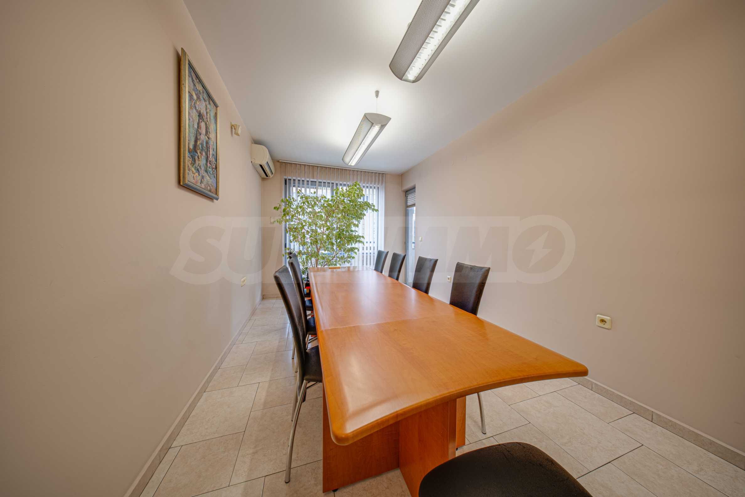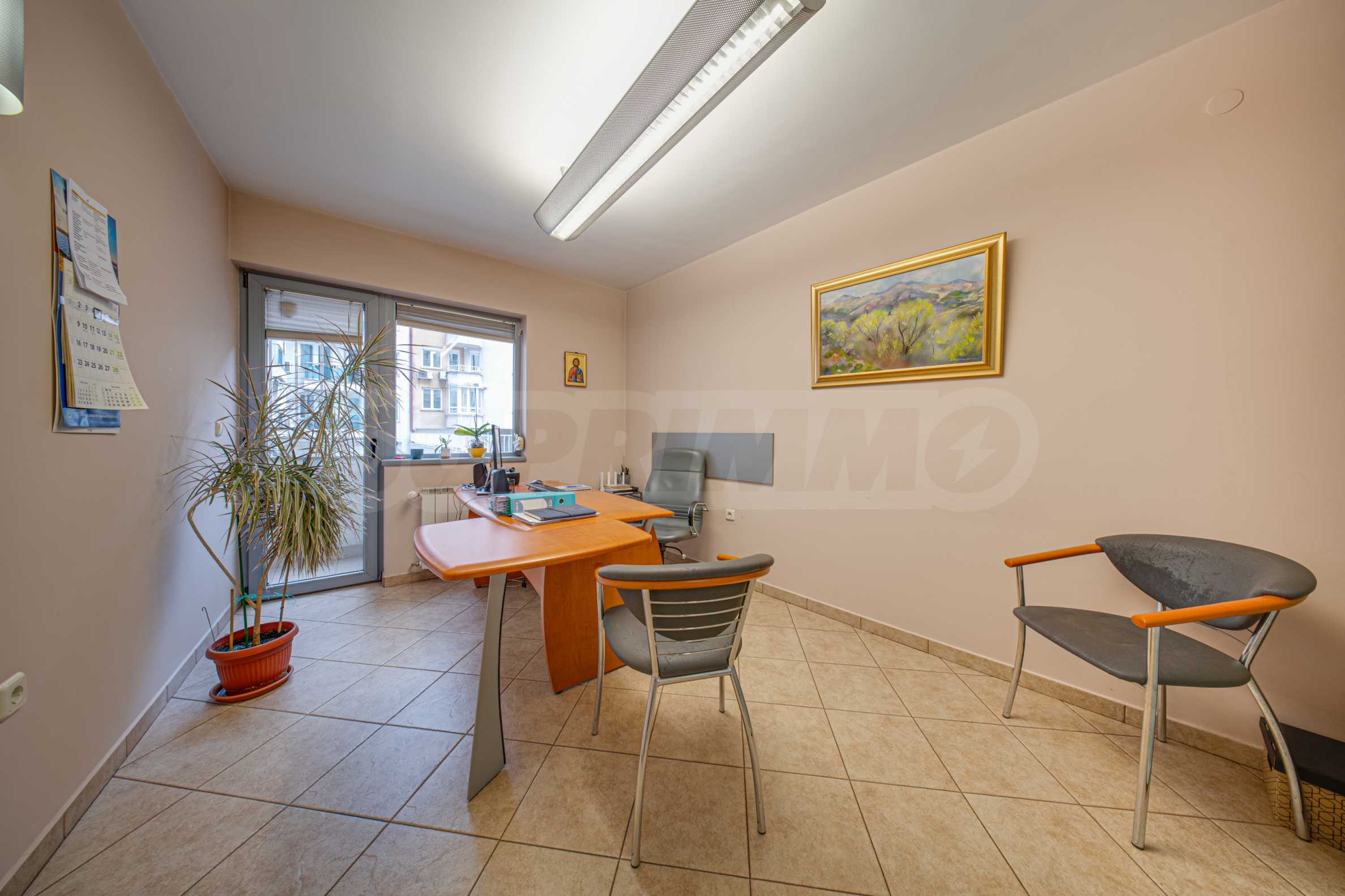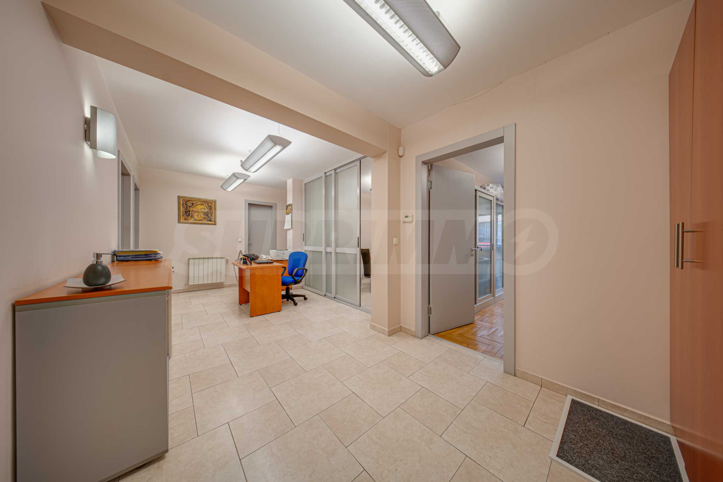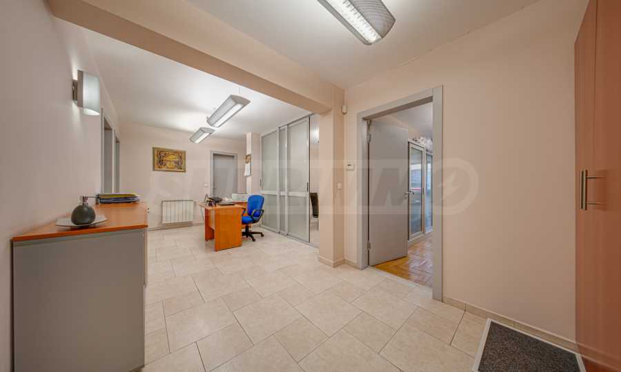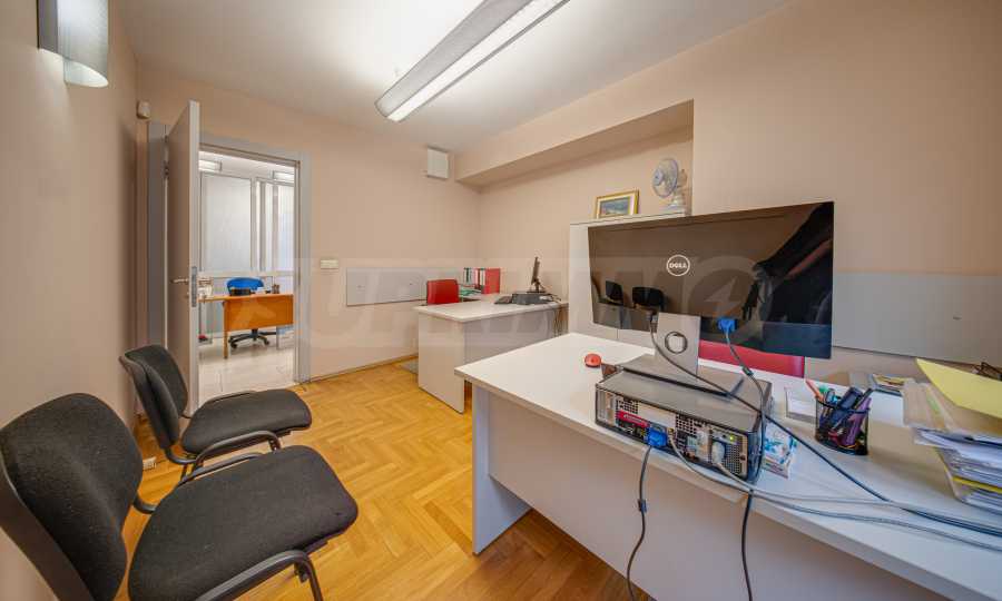 Офисът заема първи етаж над партер и е със застроена площ от 116.89 кв.м. + 4.35 % общи части. Завършен е качествено и се предлага със следните довършителни работи: