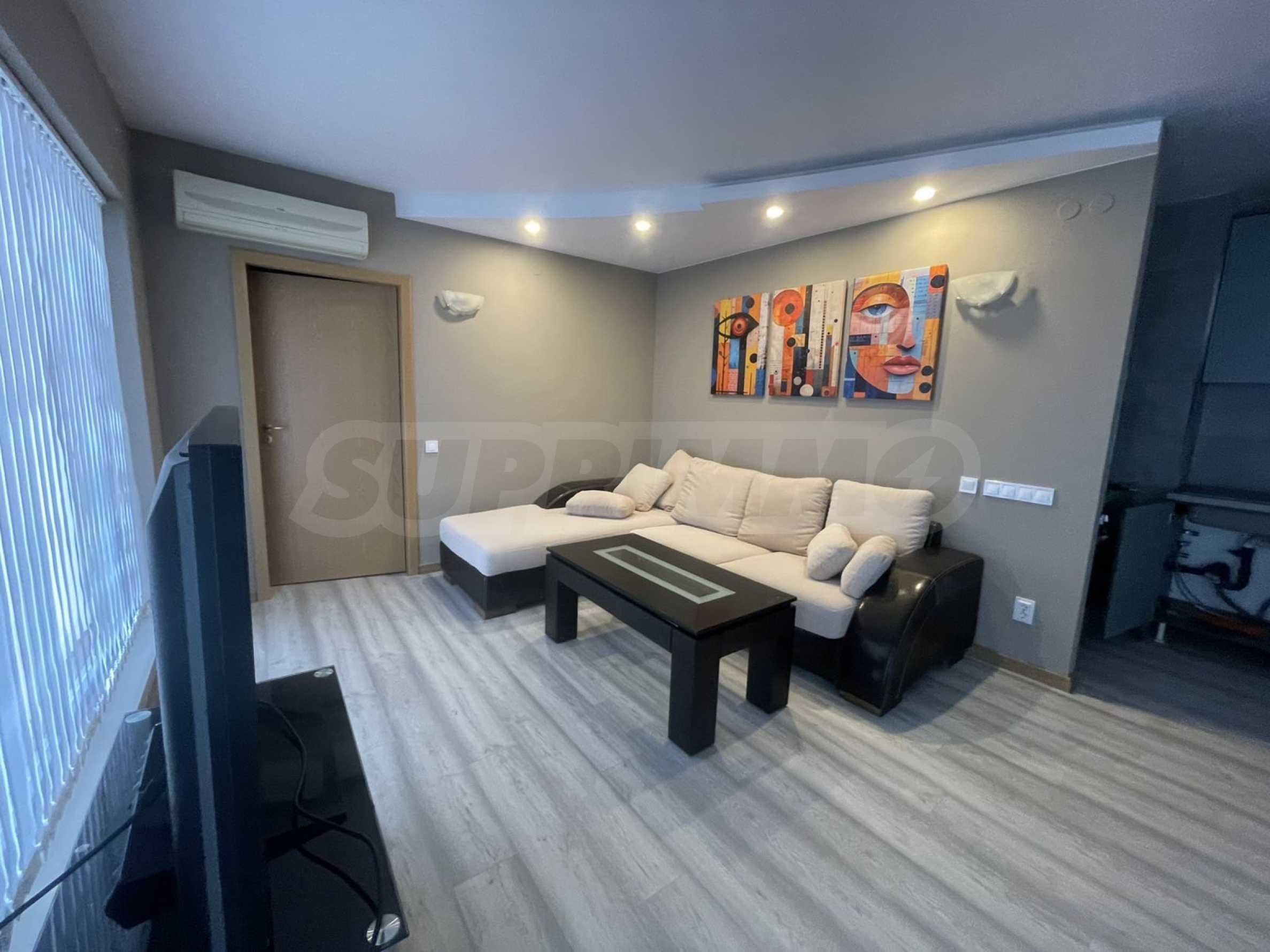 Апартаментът е изпълнен с внимание към всеки детайл и усещане за комфорт и елегантност, с изцяло подменена дограма, нови инсталации и висококачествени довършителни материали. Напълно обзаведен и оборудван, готов за нанасяне с всички необходими електроуреди и мебели.