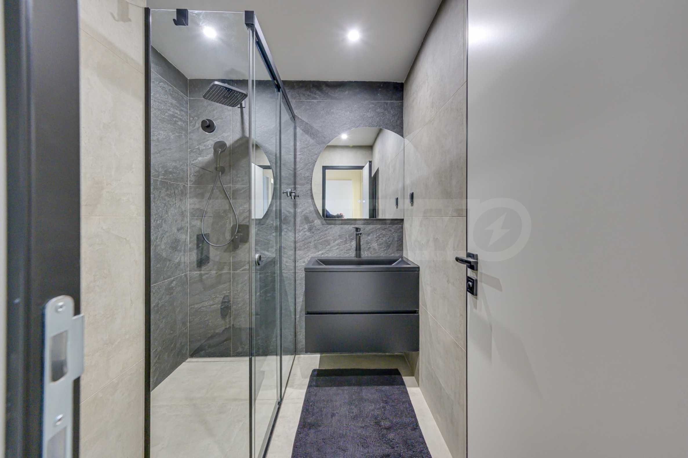 Апартаментът разполага със светла дневна зона с обособен кухненски кът и трапезарна част, самостоятелна спалня, баня с модерно изпълнение и входно антре. Пространството е естествено осветено, а неутралните тонове създават усещане за спокойствие и баланс. Имотът е чисто нов и готов за нанасяне.