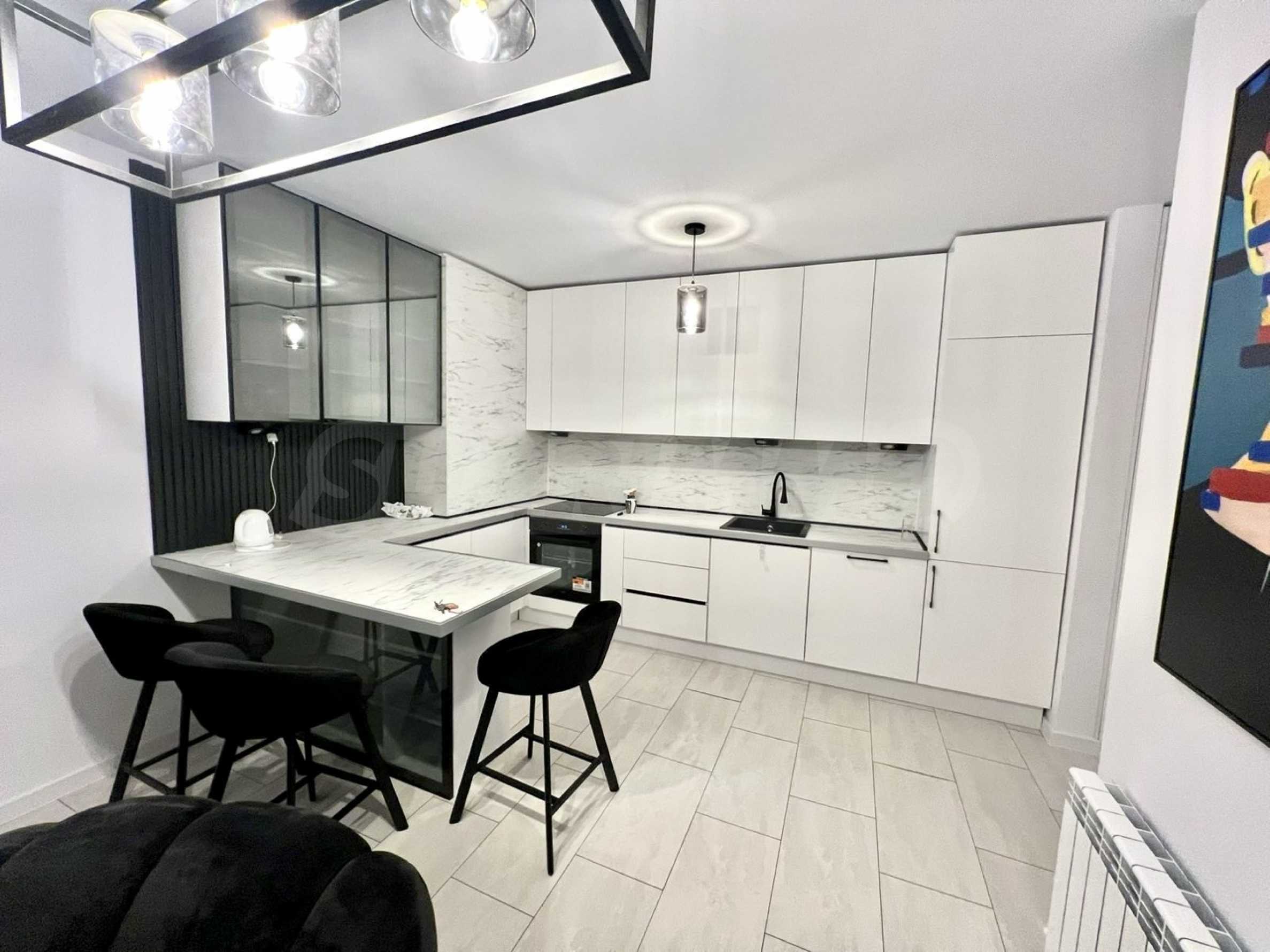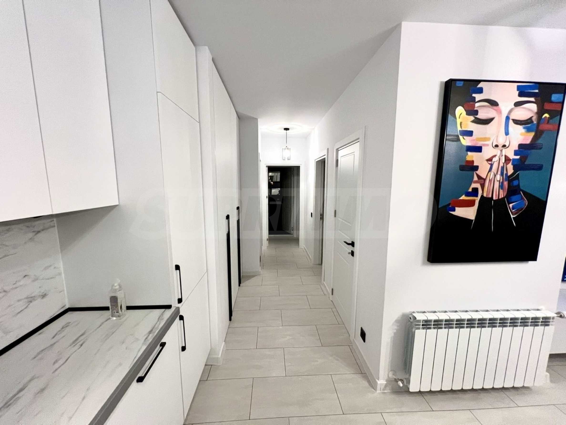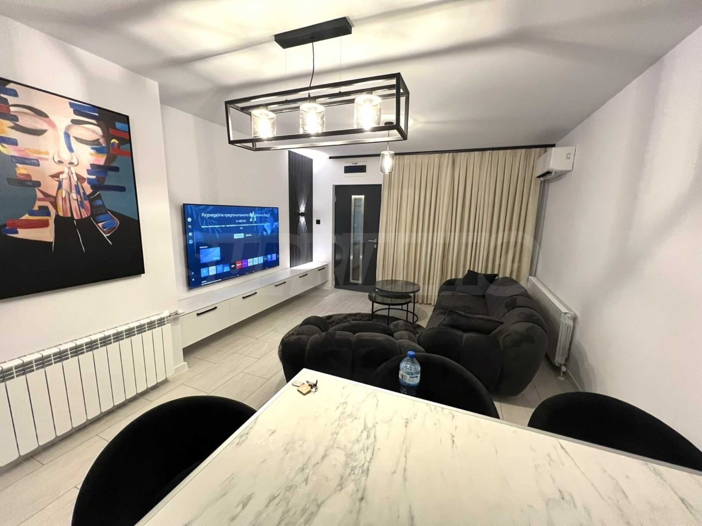 Жилището е напълно обзаведено с внимание към детайла и създава усещане за уютен, но представителен дом.