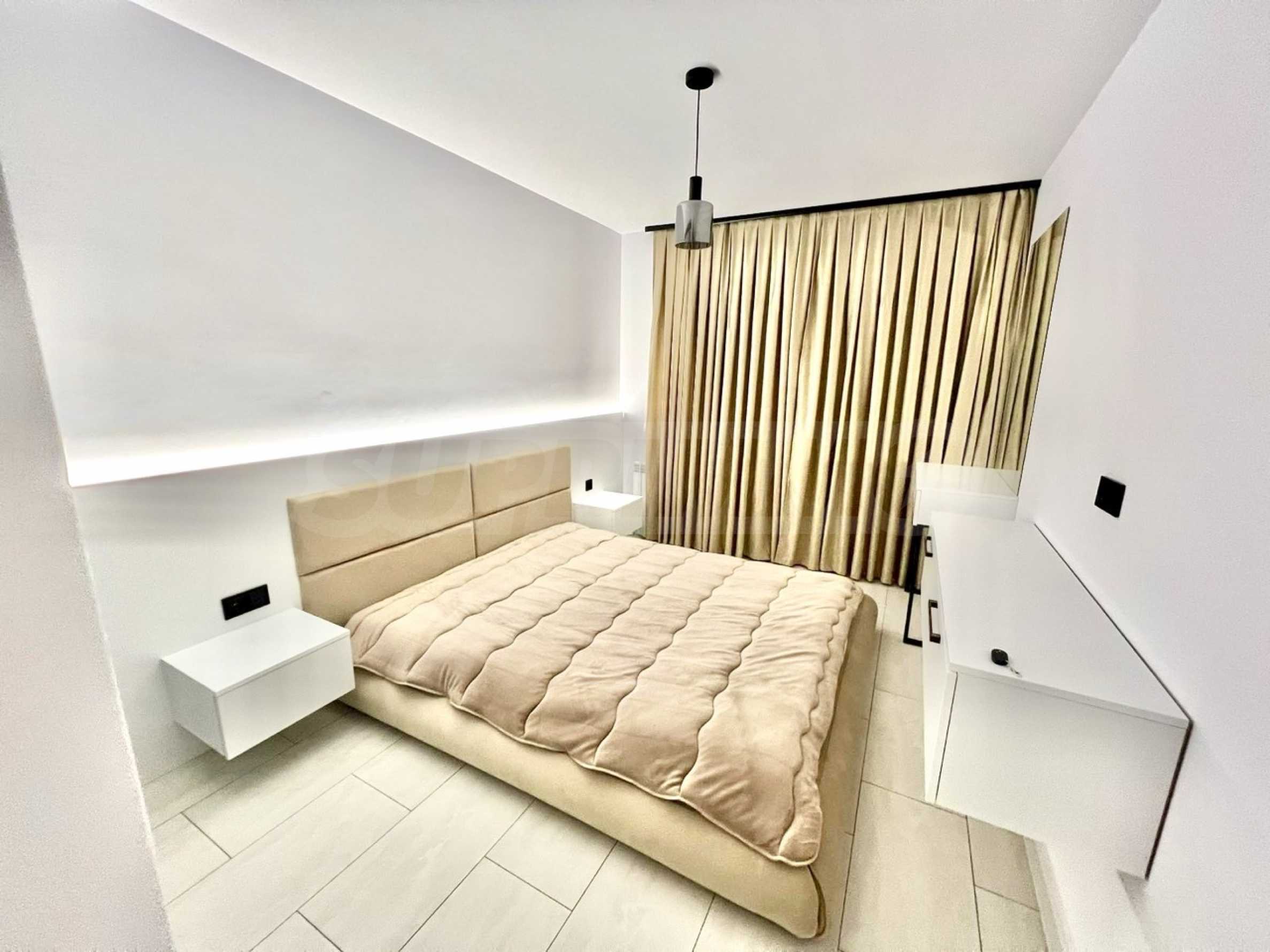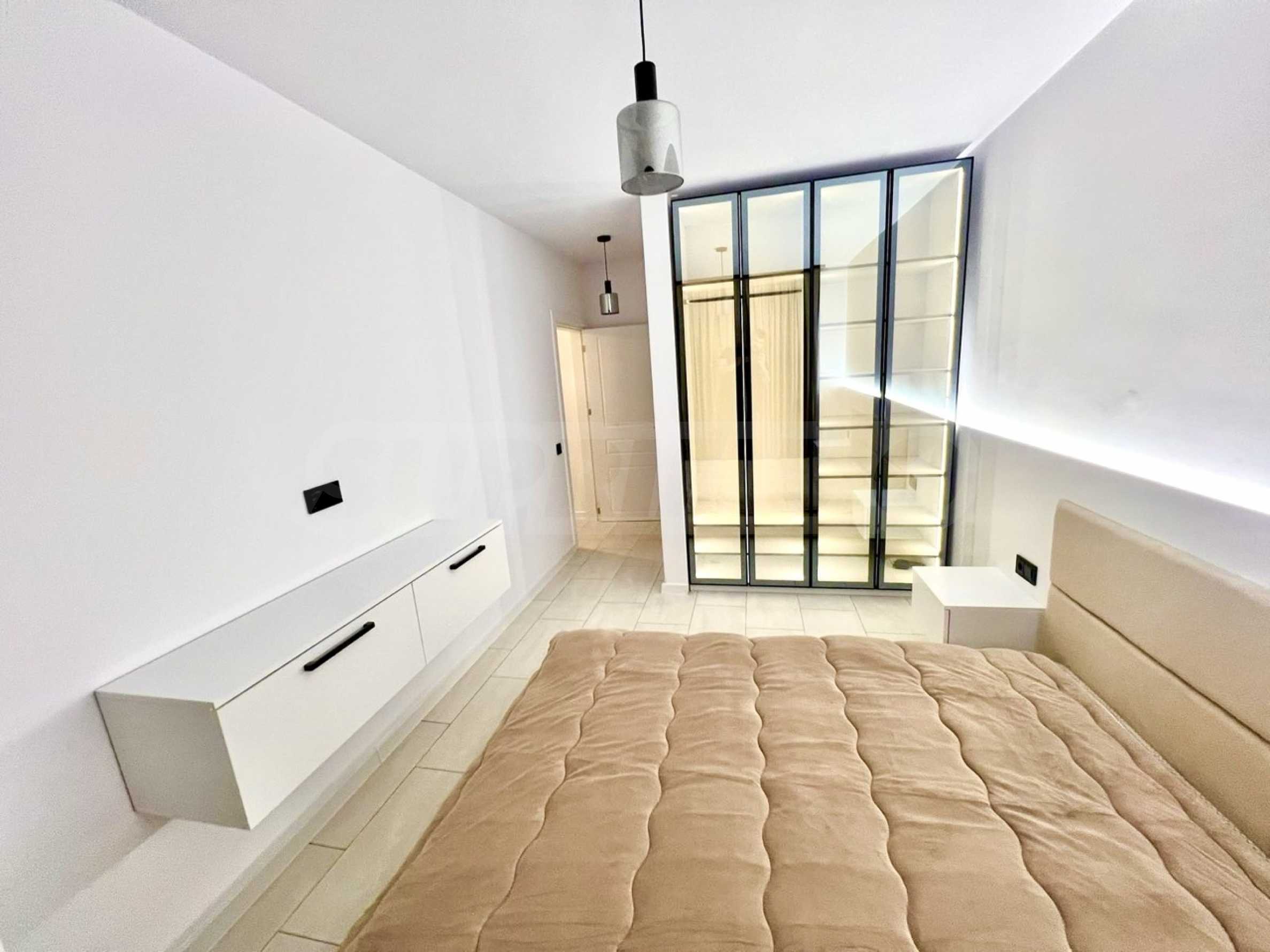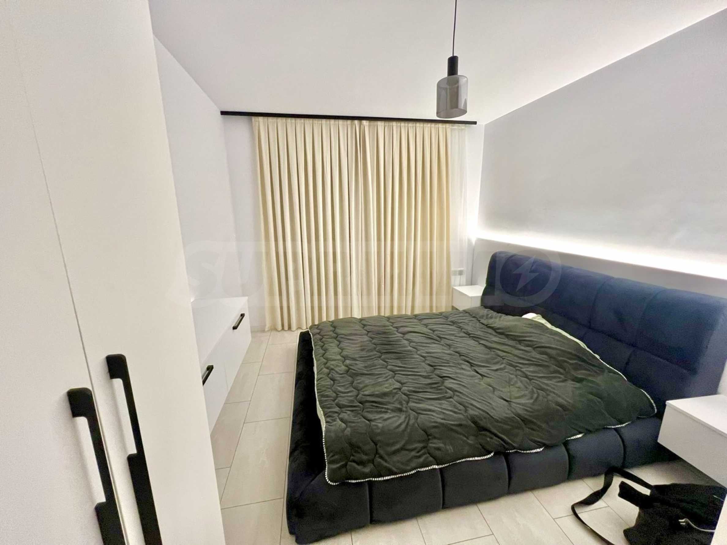 Жилището е напълно обзаведено с внимание към детайла и създава усещане за уютен, но представителен дом.