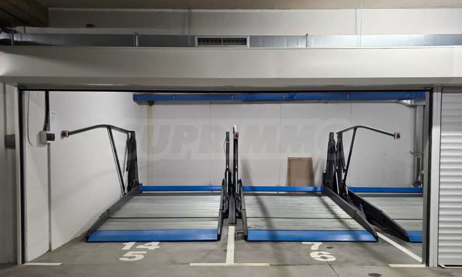 В цената е включено подземно паркомясто с повдигащ механизъм за втори автомобил и ролетна щора.