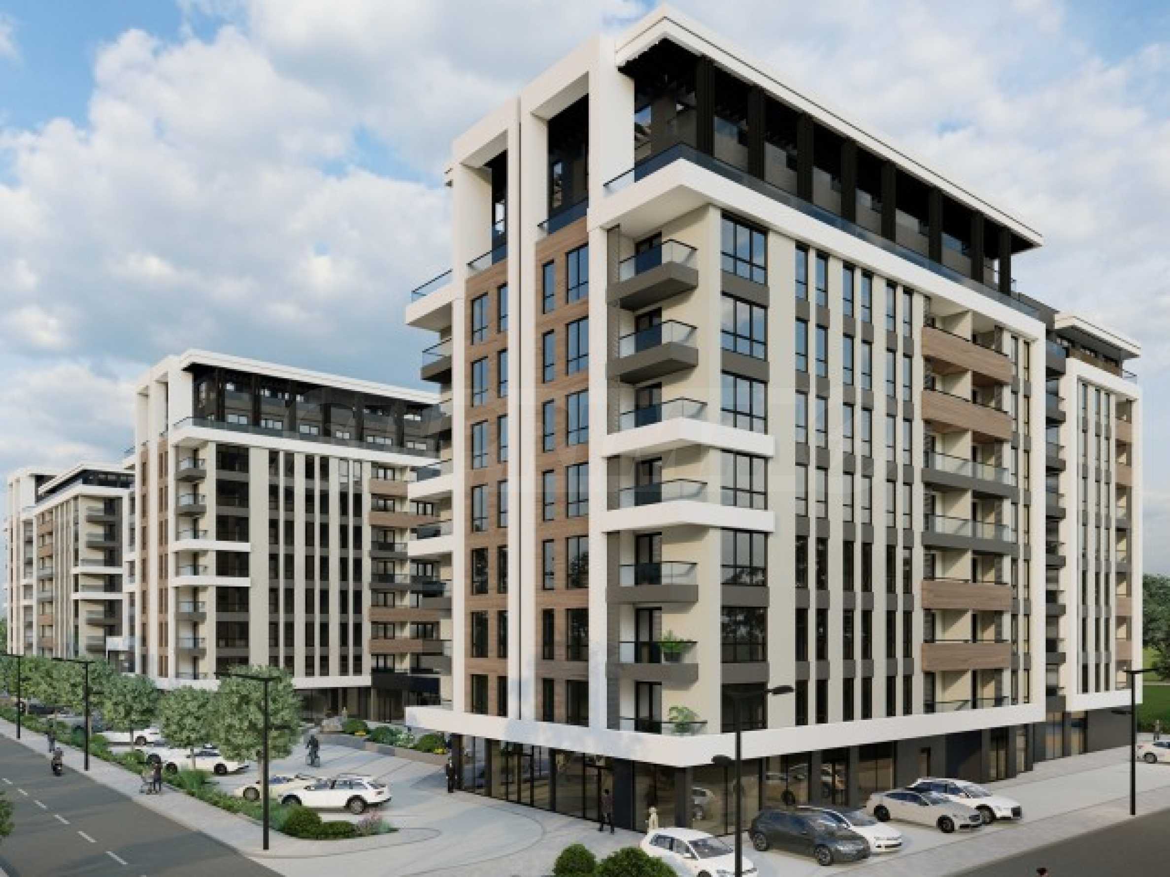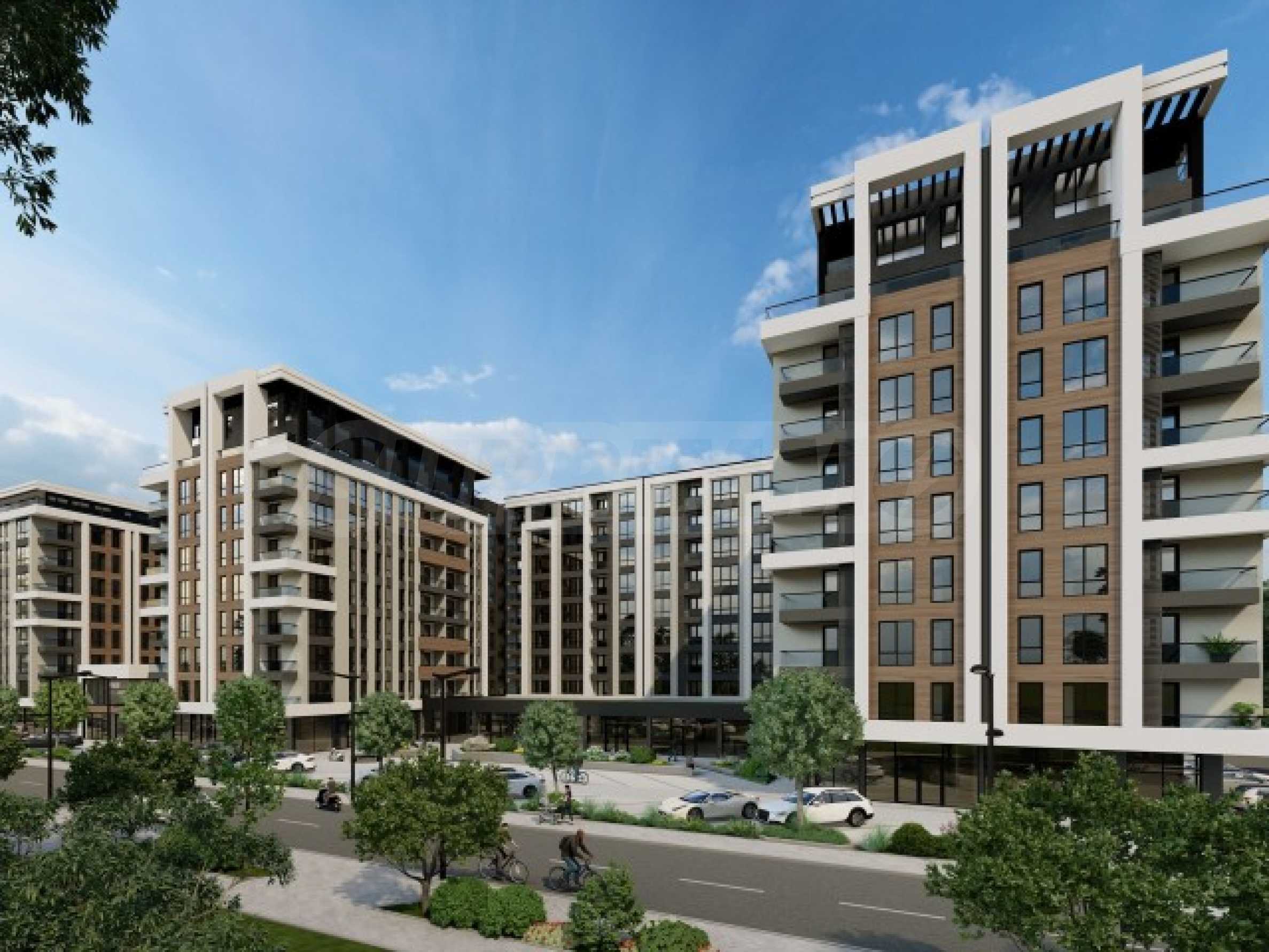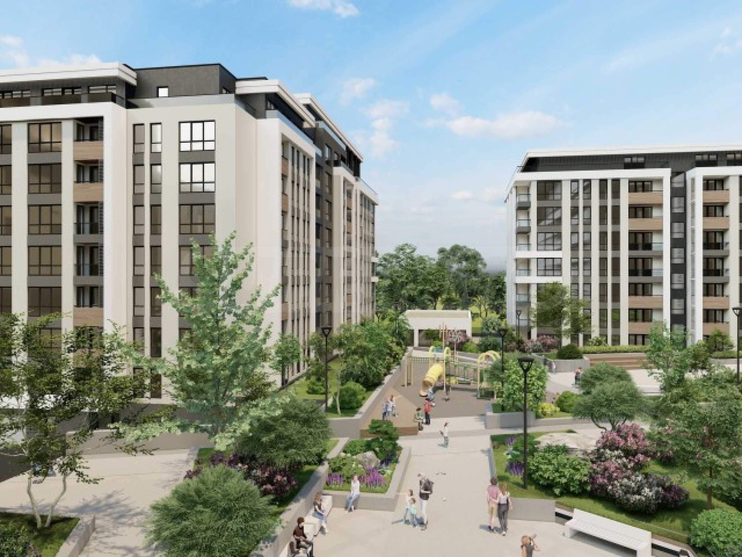Комплексът разполага с 6000 кв.м озеленени площи, проектирани детски площадки, алейна мрежа с растителност, зони за отдих, площадни пространства. На територията на комплекса ще намерите още търговски комплекс, аптека, дентален център, фитнес, ресторант и голям хранителен магазин, което ще направи живота Ви по-удобен и комфортен. Предлага едностайни, двустайни, тристайни и четиристайни апартаменти. Паркирането е 100% осигурено с надземни и подземни паркоместа, което е удобство за всички жители.