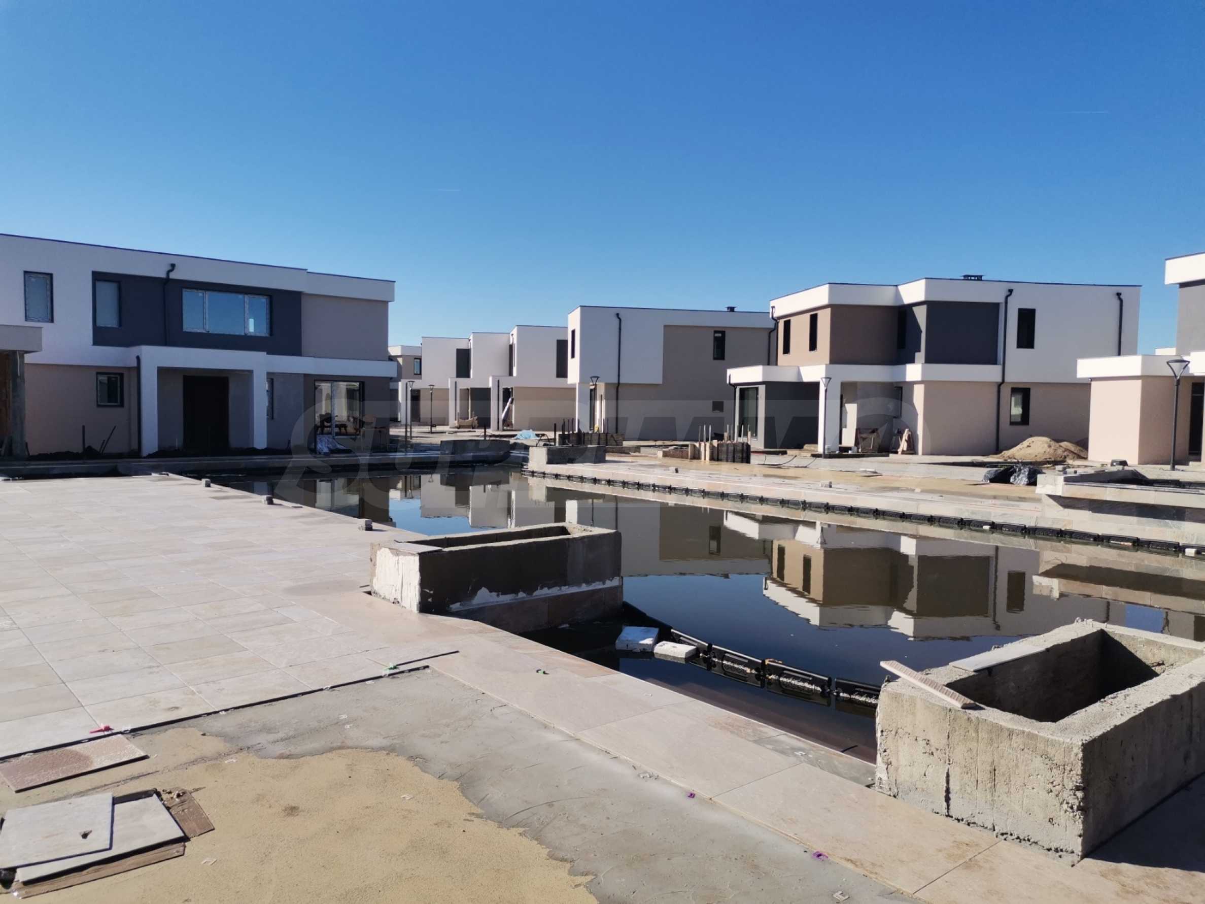 Представяме за продажба двуетажна къща с две спални в елитен комплекс, подходящ за целогодишно живеене, в тиха и спокойна среда, между Бургас и Поморие.