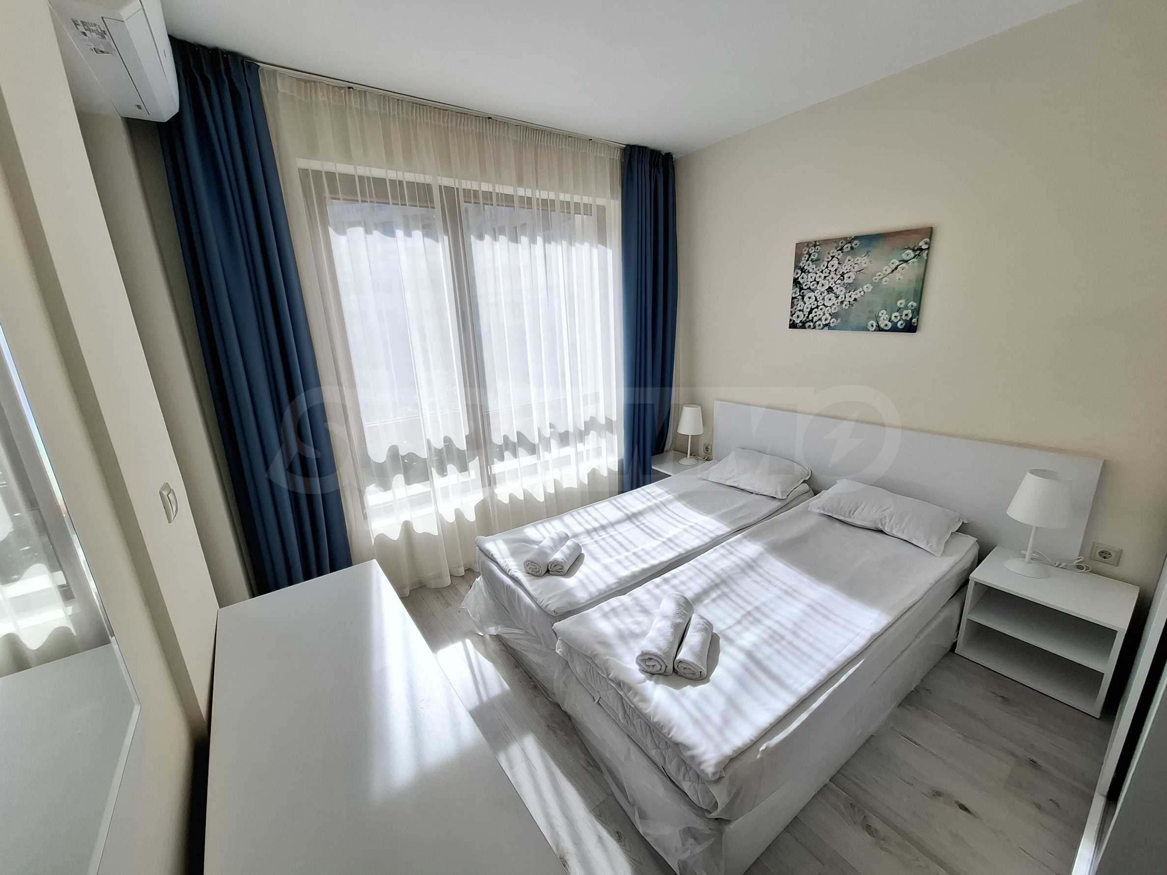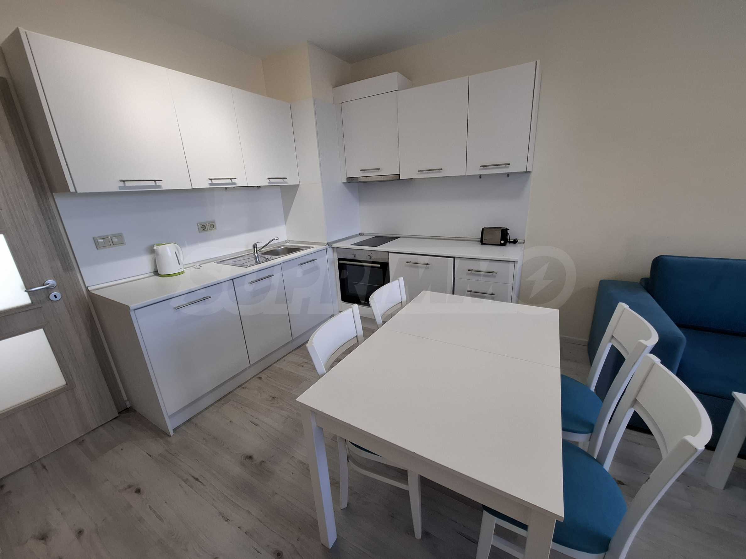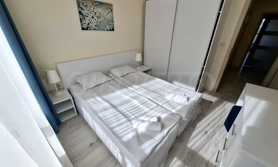 Жилището е напълно обзаведено и оборудвано с всичко необходимо като мебели и електроуреди, готово е за нанасяне.