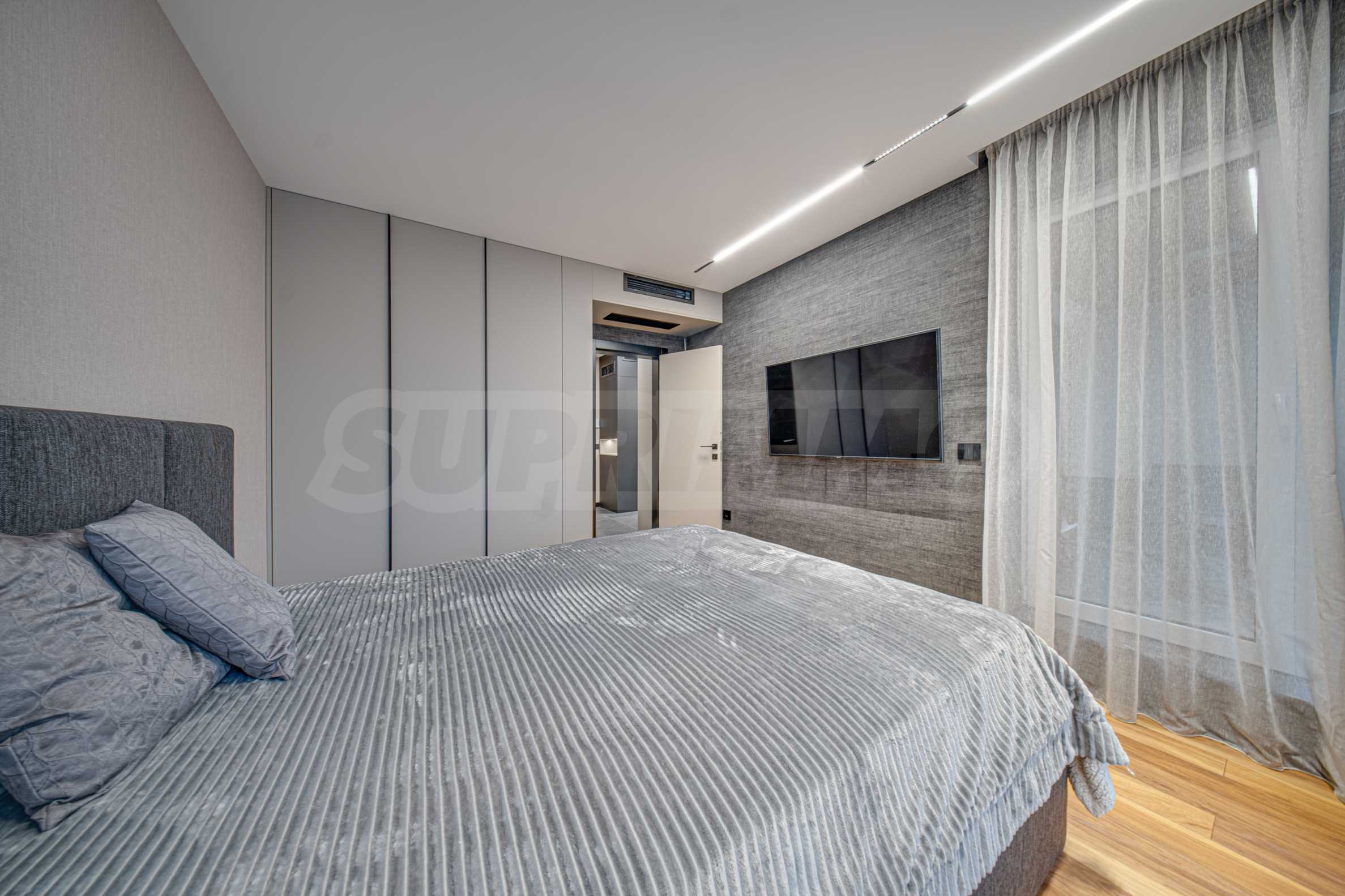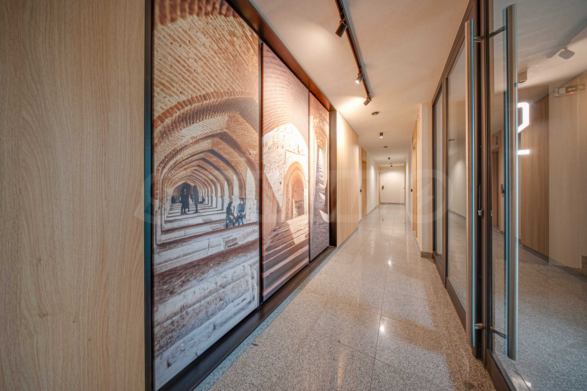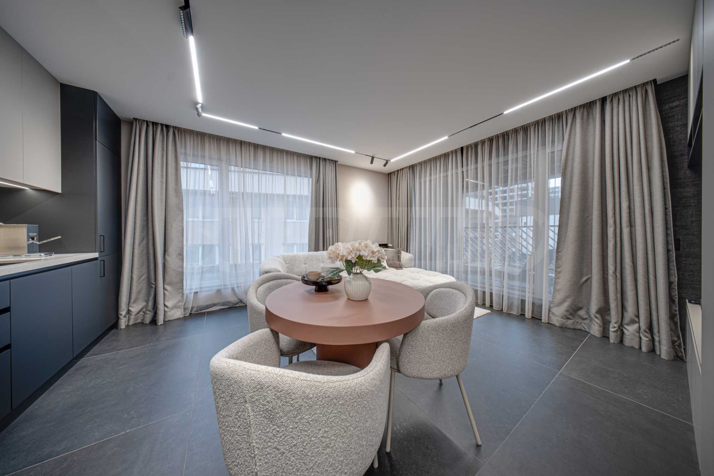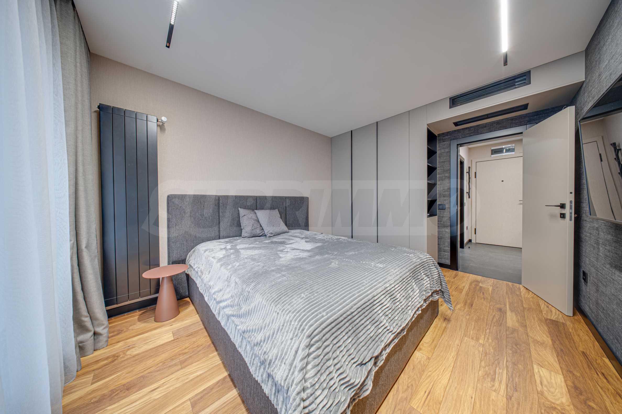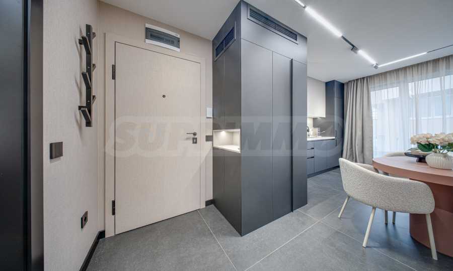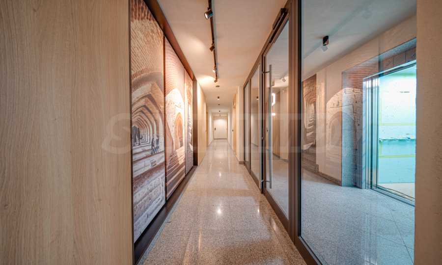 Апартаментът се предлага завършен с висок клас довършителни работи и заема втори етаж от общо четири етажа.