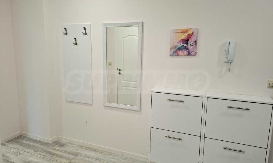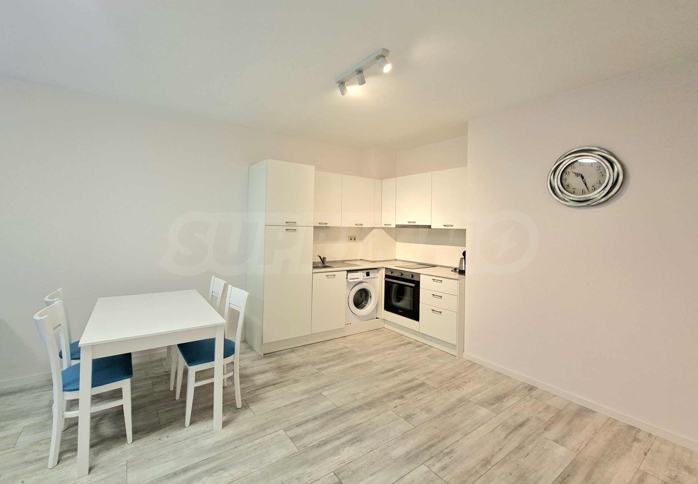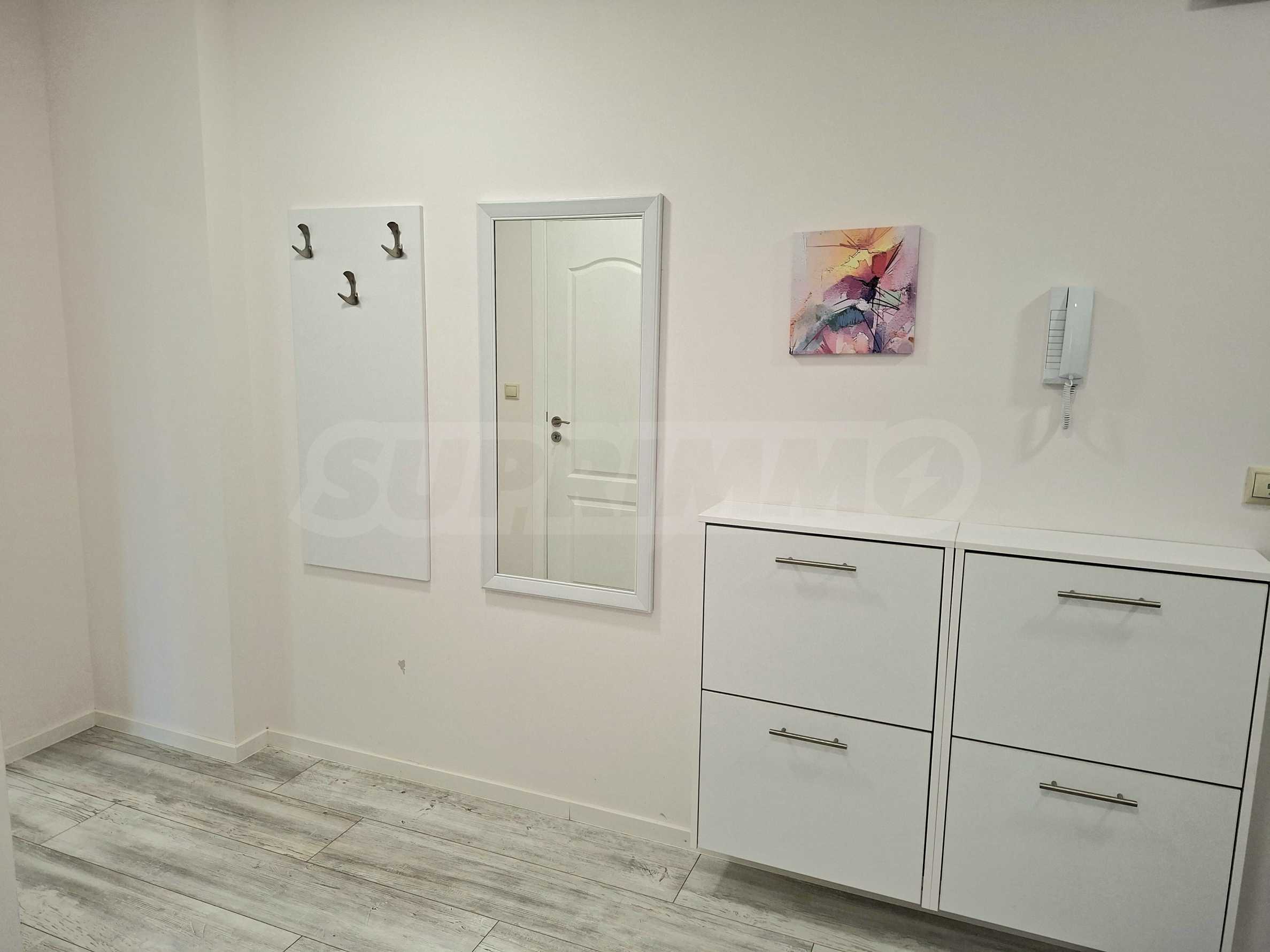 Апартаментът е напълно обзаведен и оборудван с всичко необходимо за живеене като качествени мебели и ел. уреди, с внимание към всеки детайл.