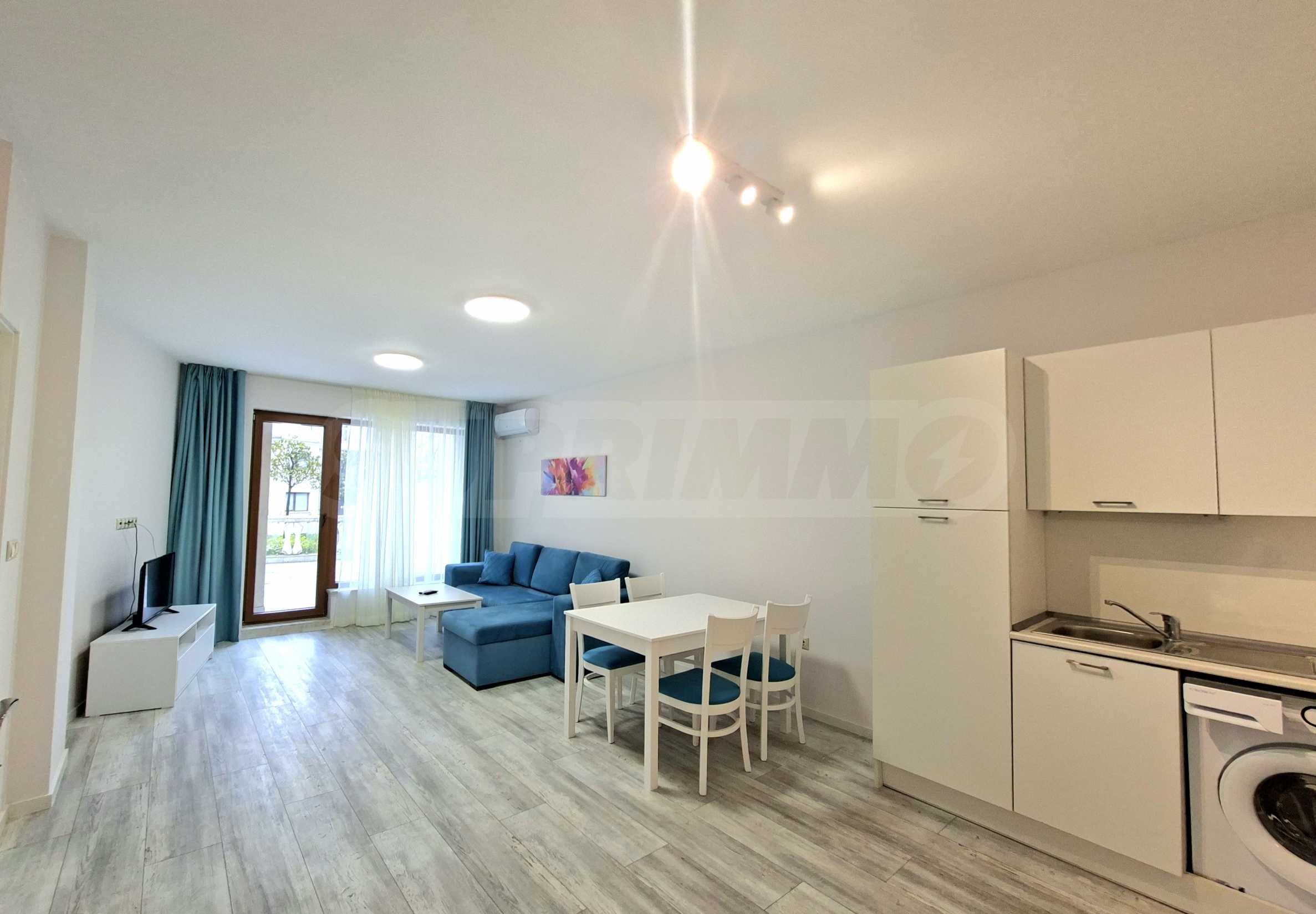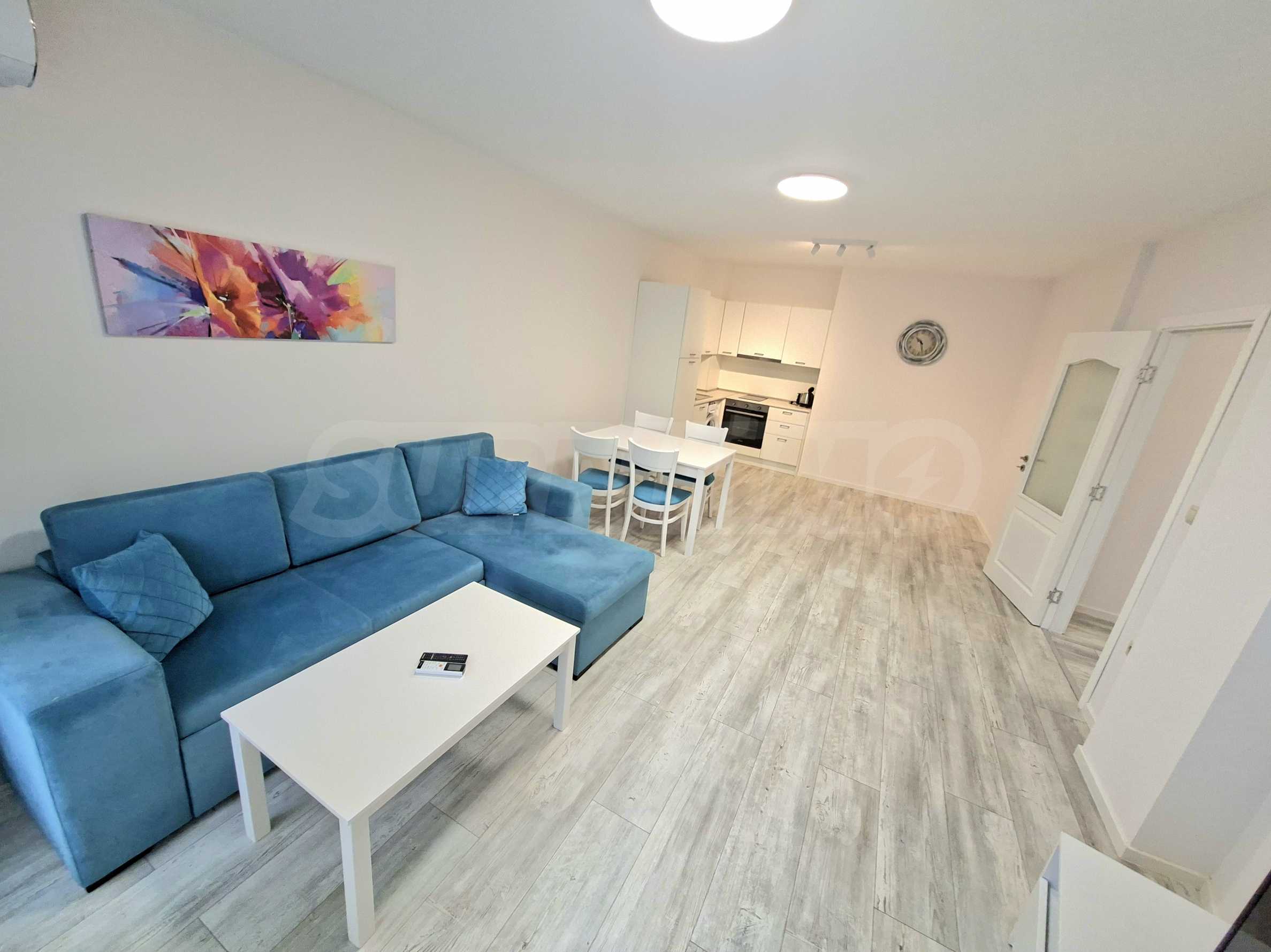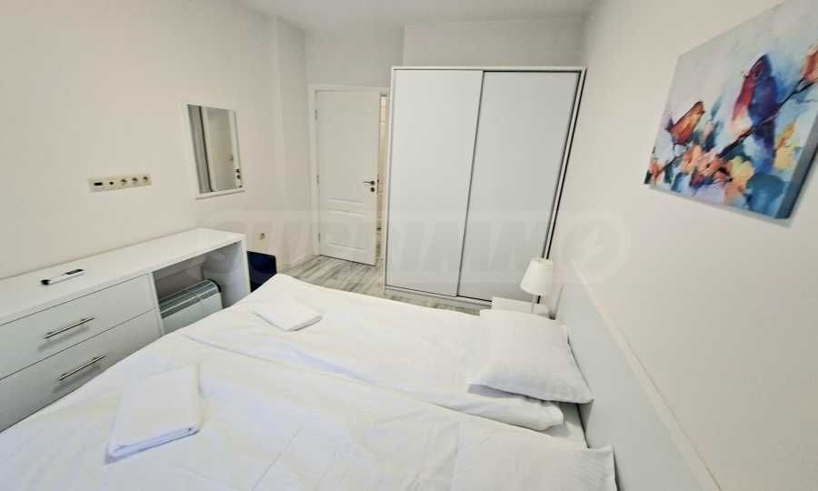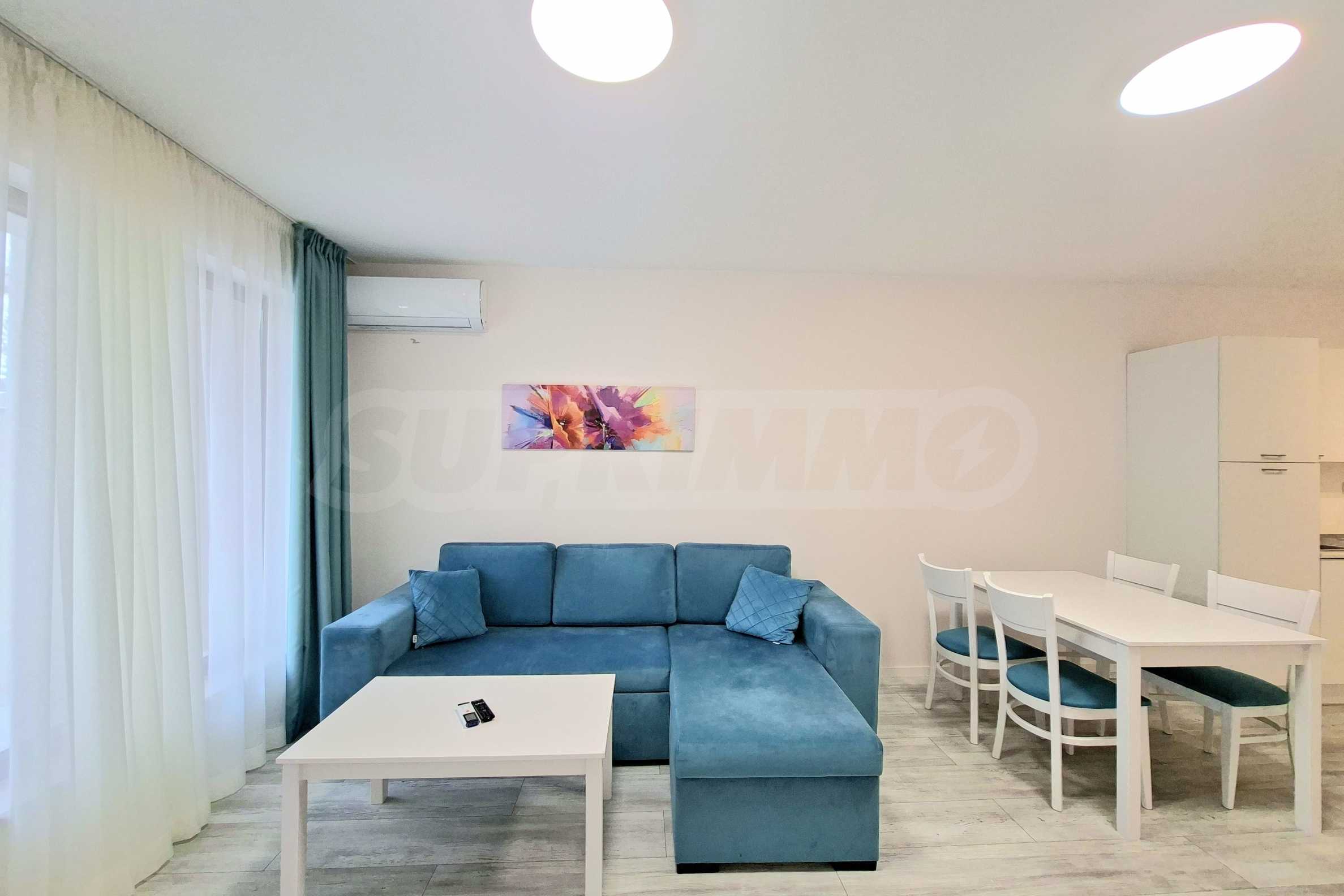 Апартаментът е напълно обзаведен и оборудван с всичко необходимо за живеене като качествени мебели и ел. уреди, с внимание към всеки детайл.