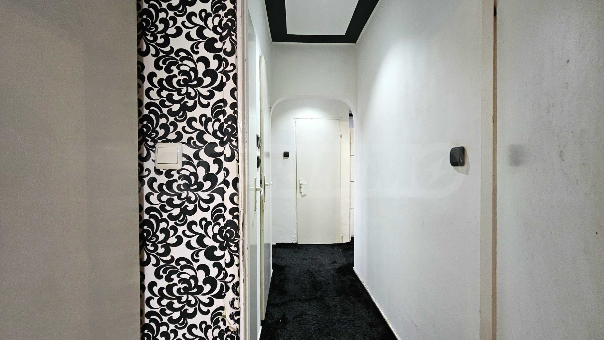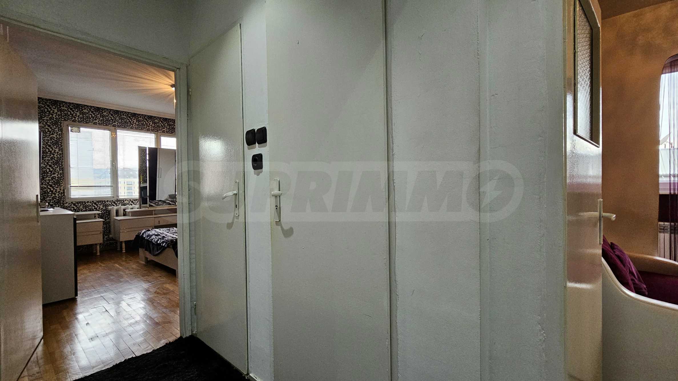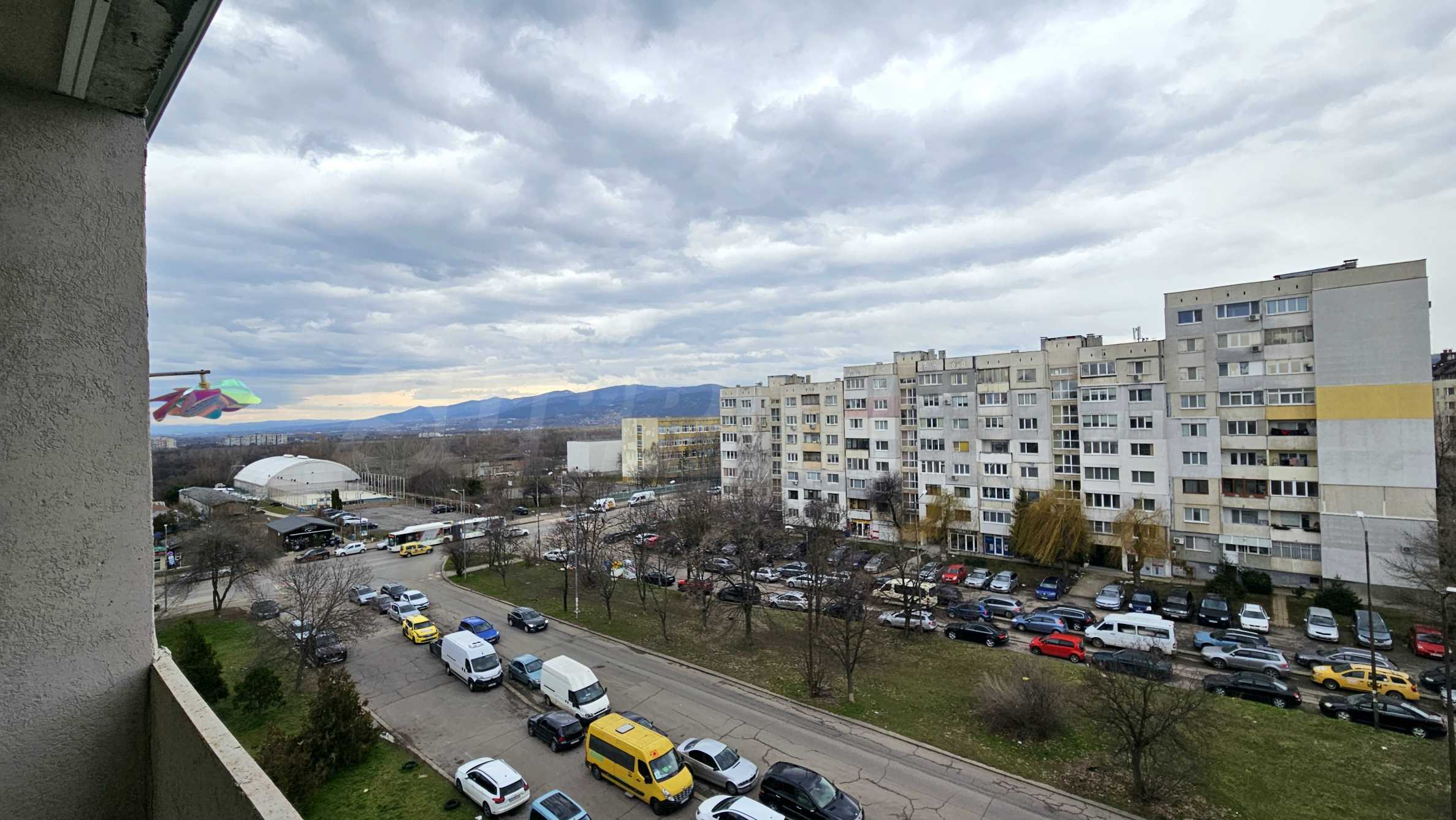 Апартаментът е с чиста използваема жилищна площ от 91.45 кв.м и е разположен на шести, последен етаж в панелна сграда, въведена в експлоатация през периода 1980–1989 г. Разпределението включва входно антре, просторна всекидневна с излаз на балкон, преходна спалня с излаз на балкон, отделна кухня с усвоен балкон, втора самостоятелна спалня, баня с тоалетна, отделна тоалетна и мокро помещение. Към имота има и мазе. Жилището се предлага обзаведено, което позволява нанасяне без необходимост от допълнителни инвестиции. Сградата е с добре поддържани общи части, подменена входна врата и контролиран достъп чрез домофонна система.