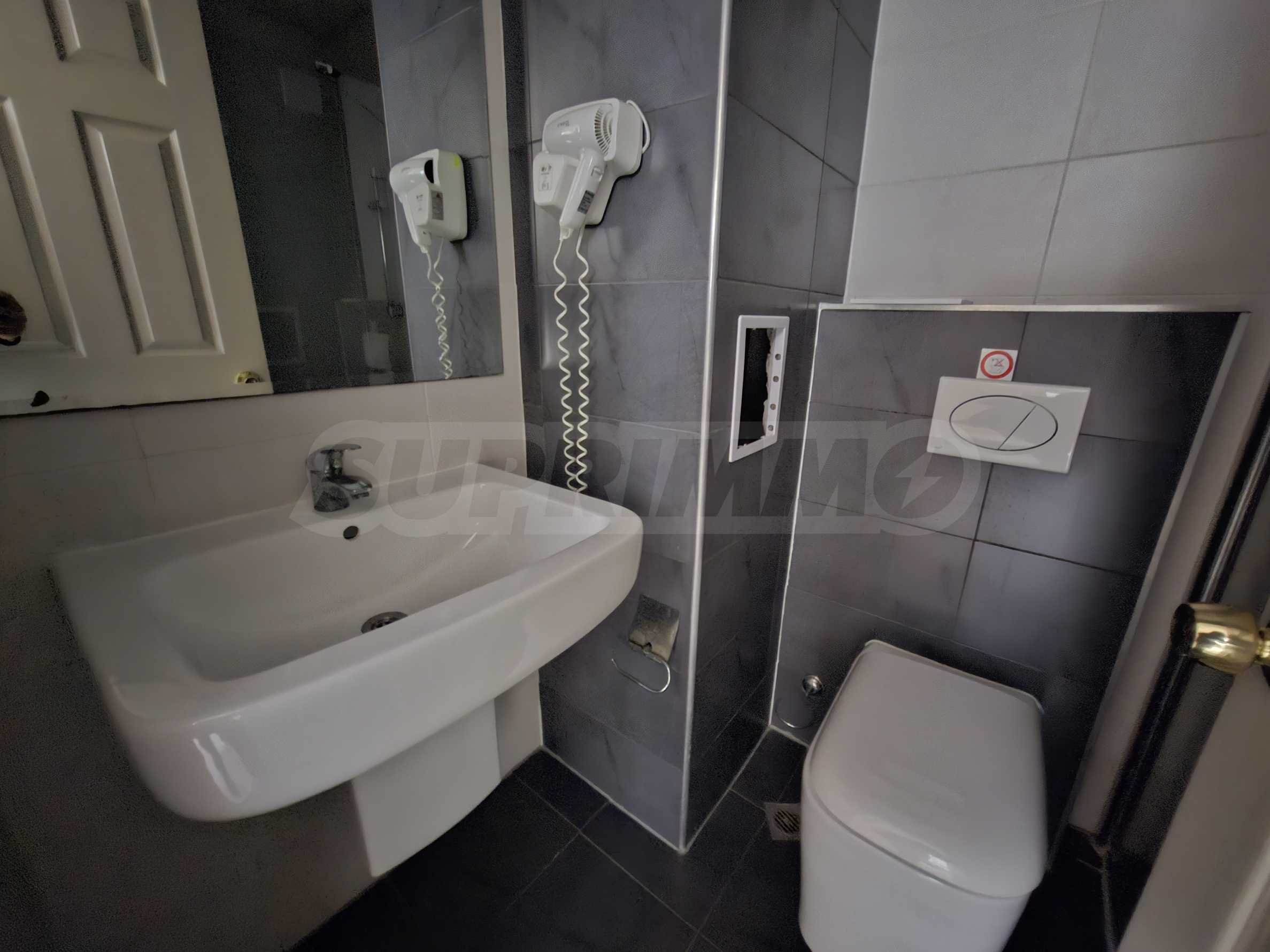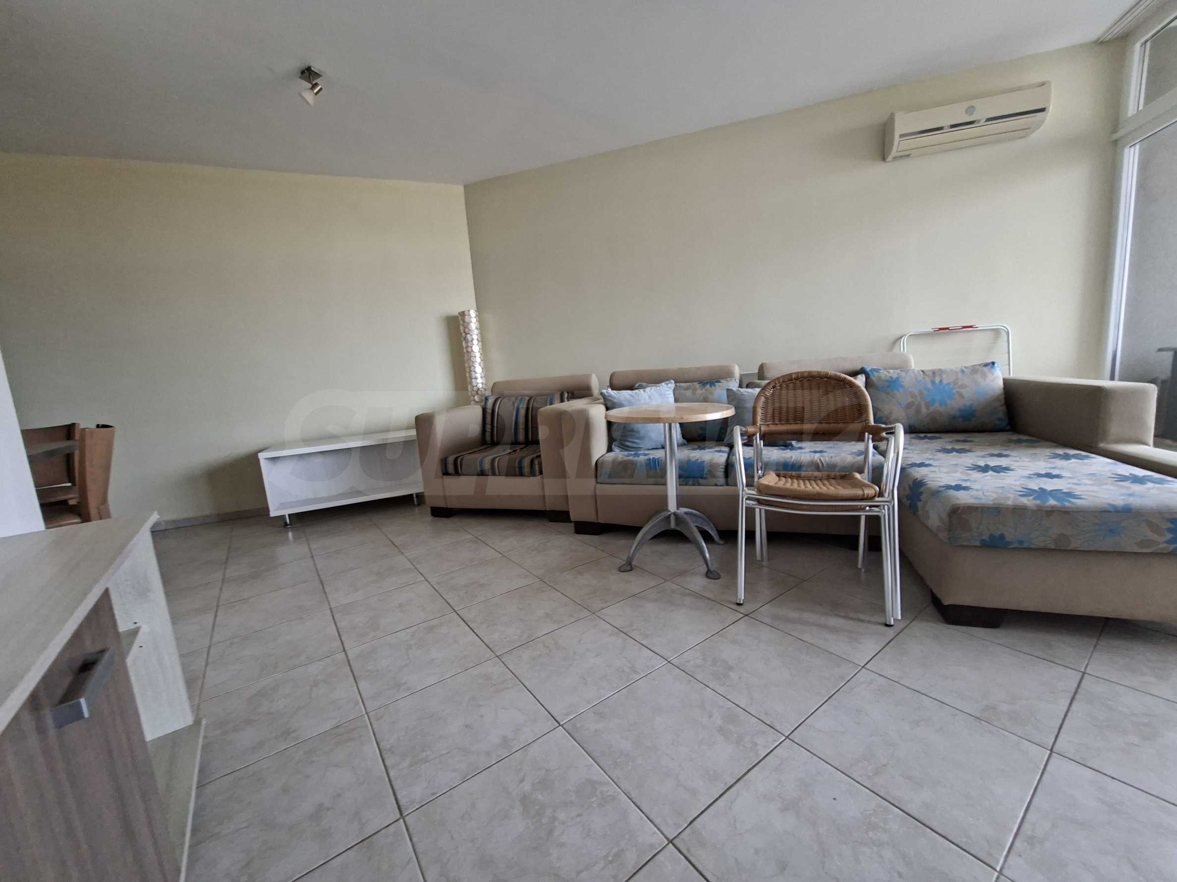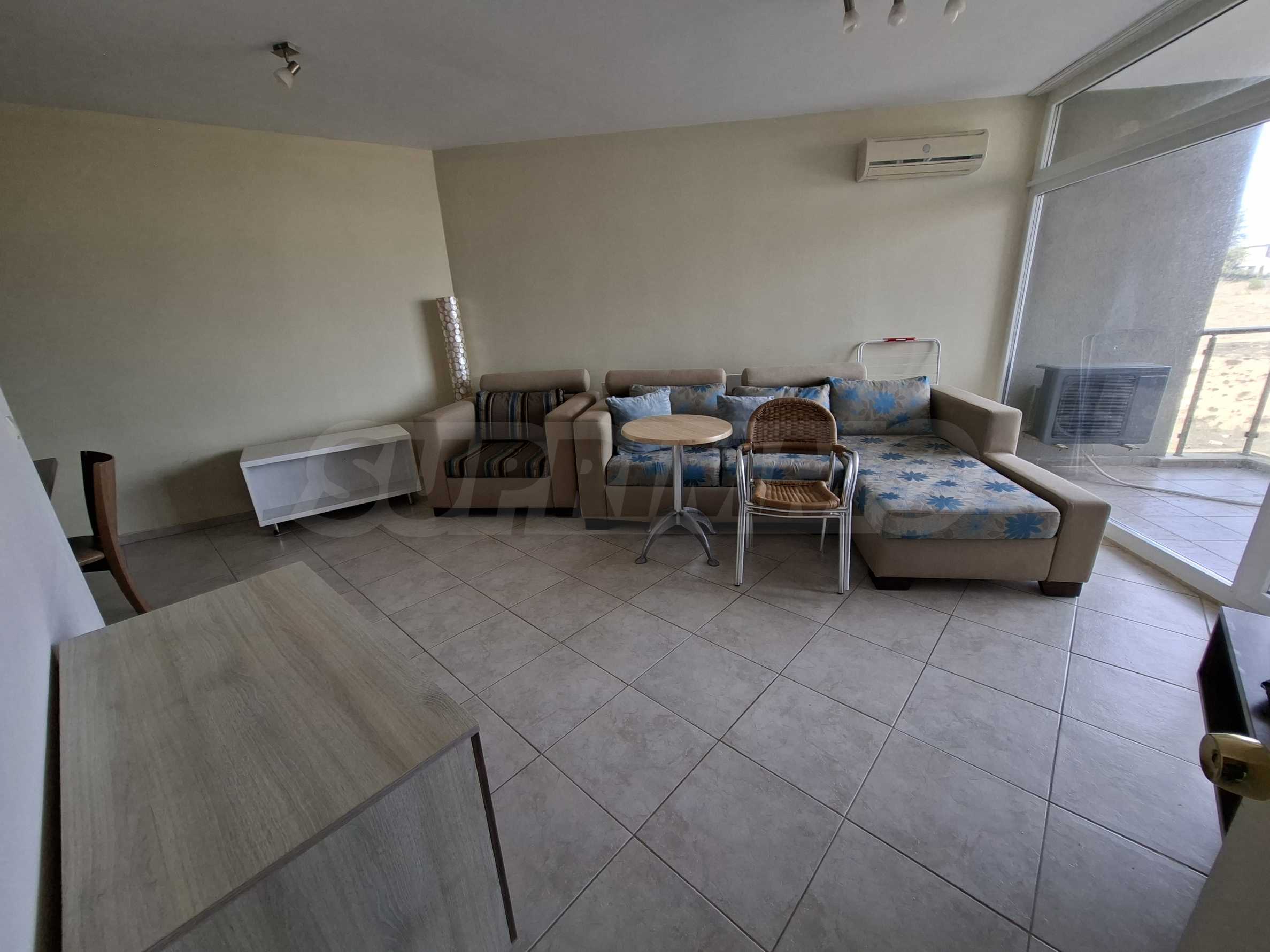 Имотът е част от комплекс с удобства, тризвезден съвременен ризорт с лоби бар и ресторант, басейн, детски басейн и площадка, градина и др.