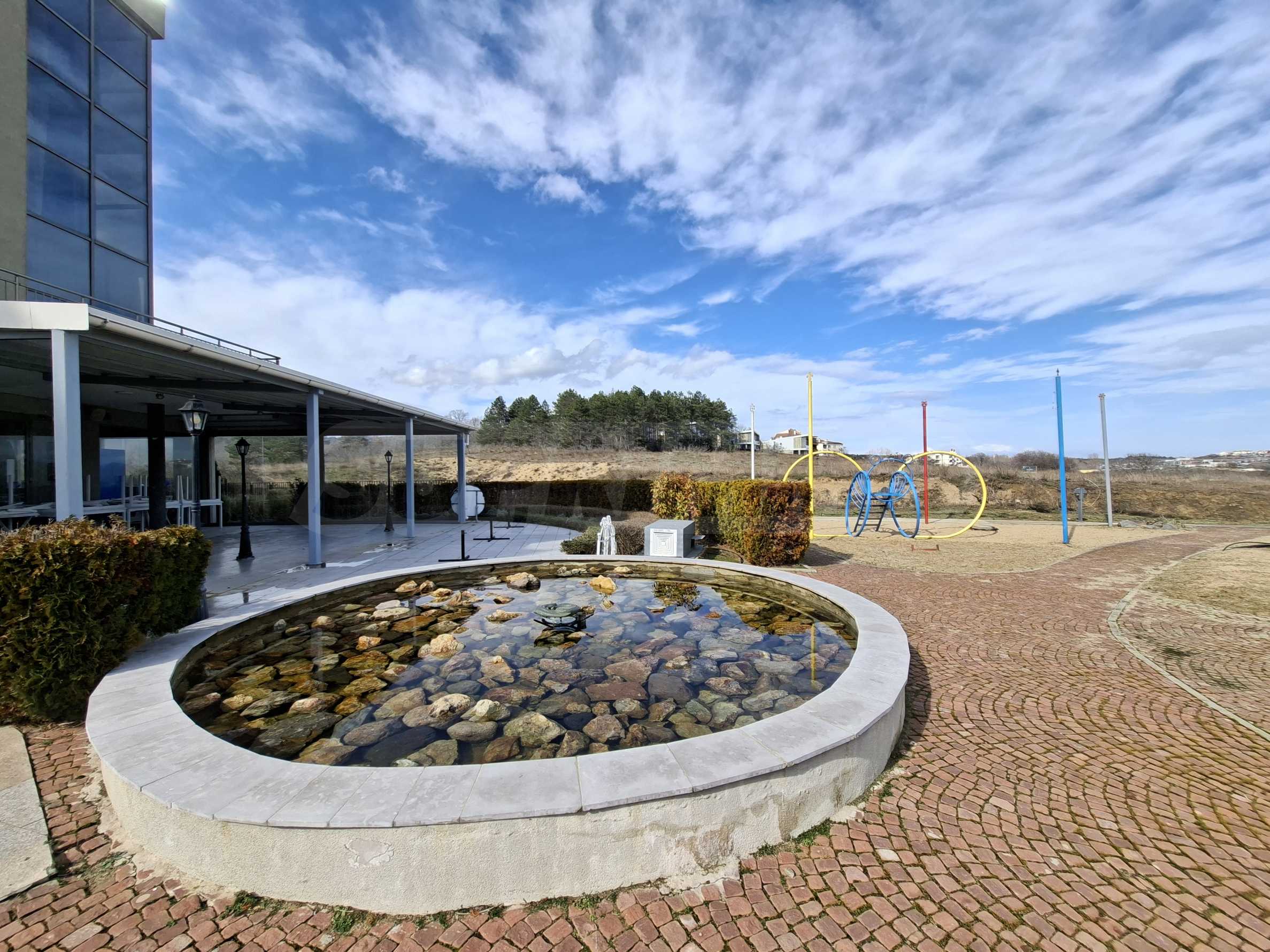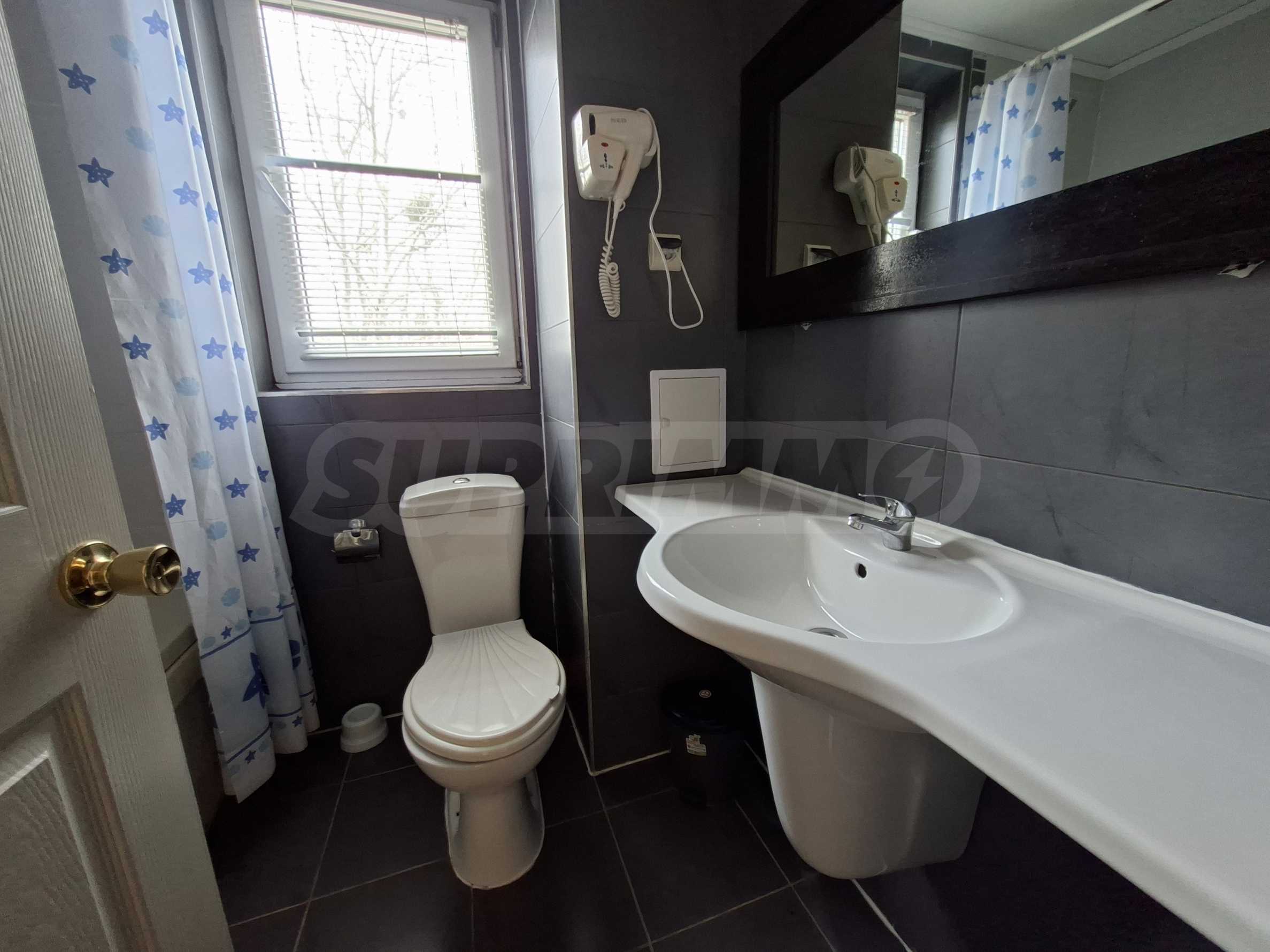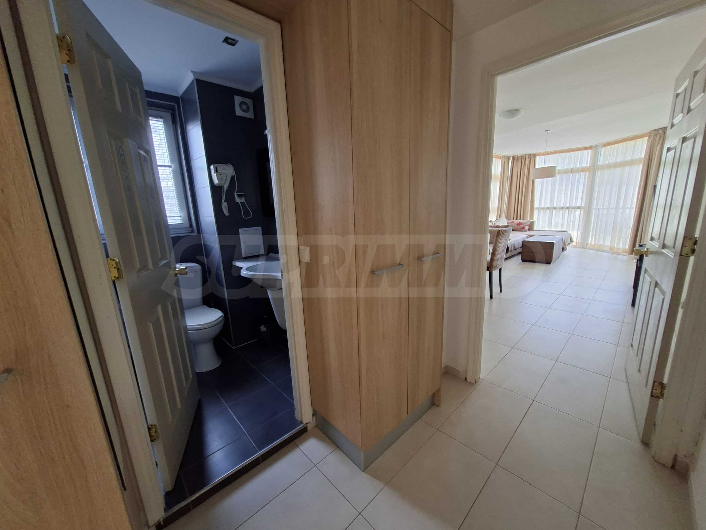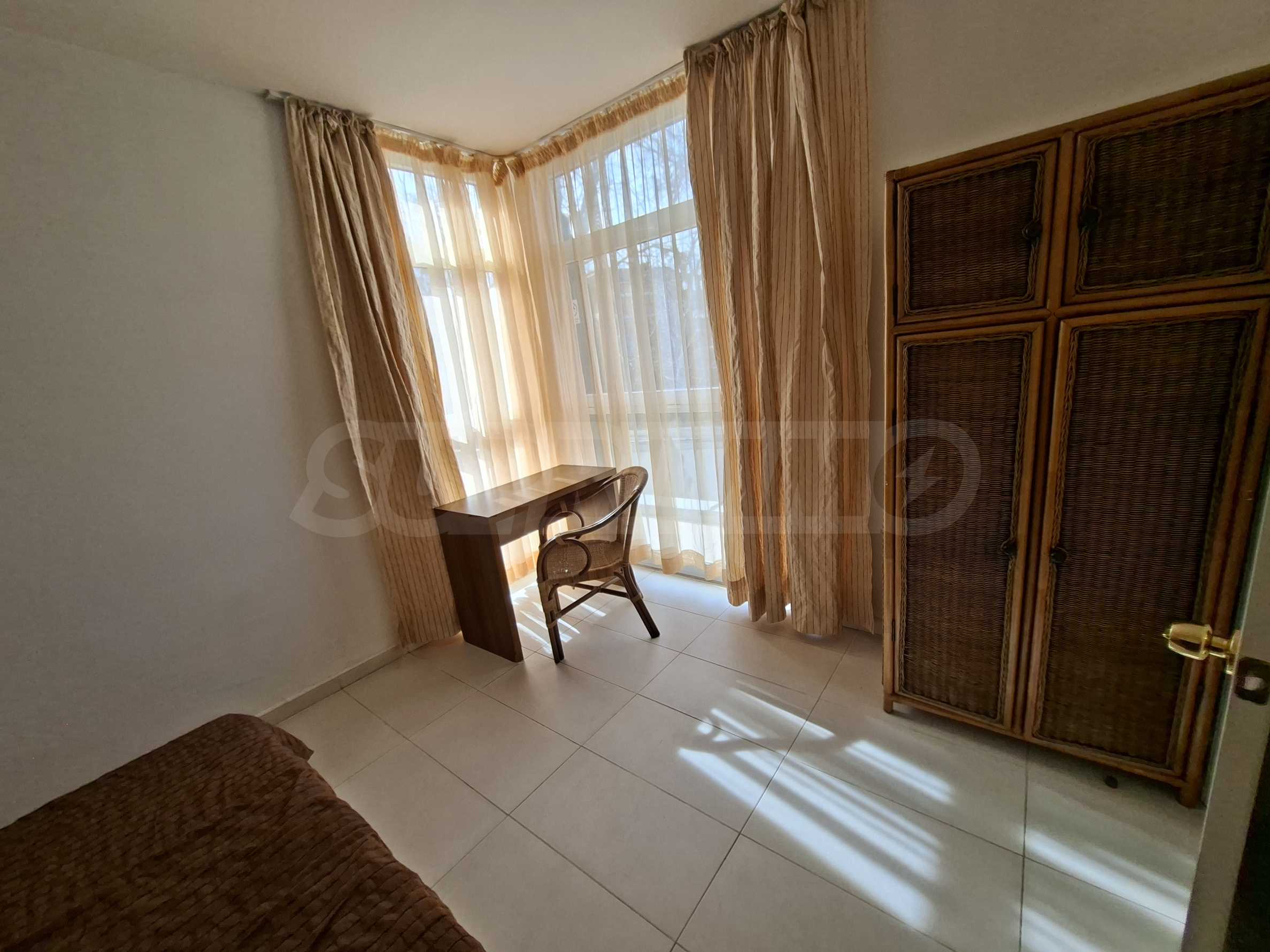 Имотът е част от комплекс с удобства, тризвезден съвременен ризорт с лоби бар и ресторант, басейн, детски басейн и площадка, градина и др.