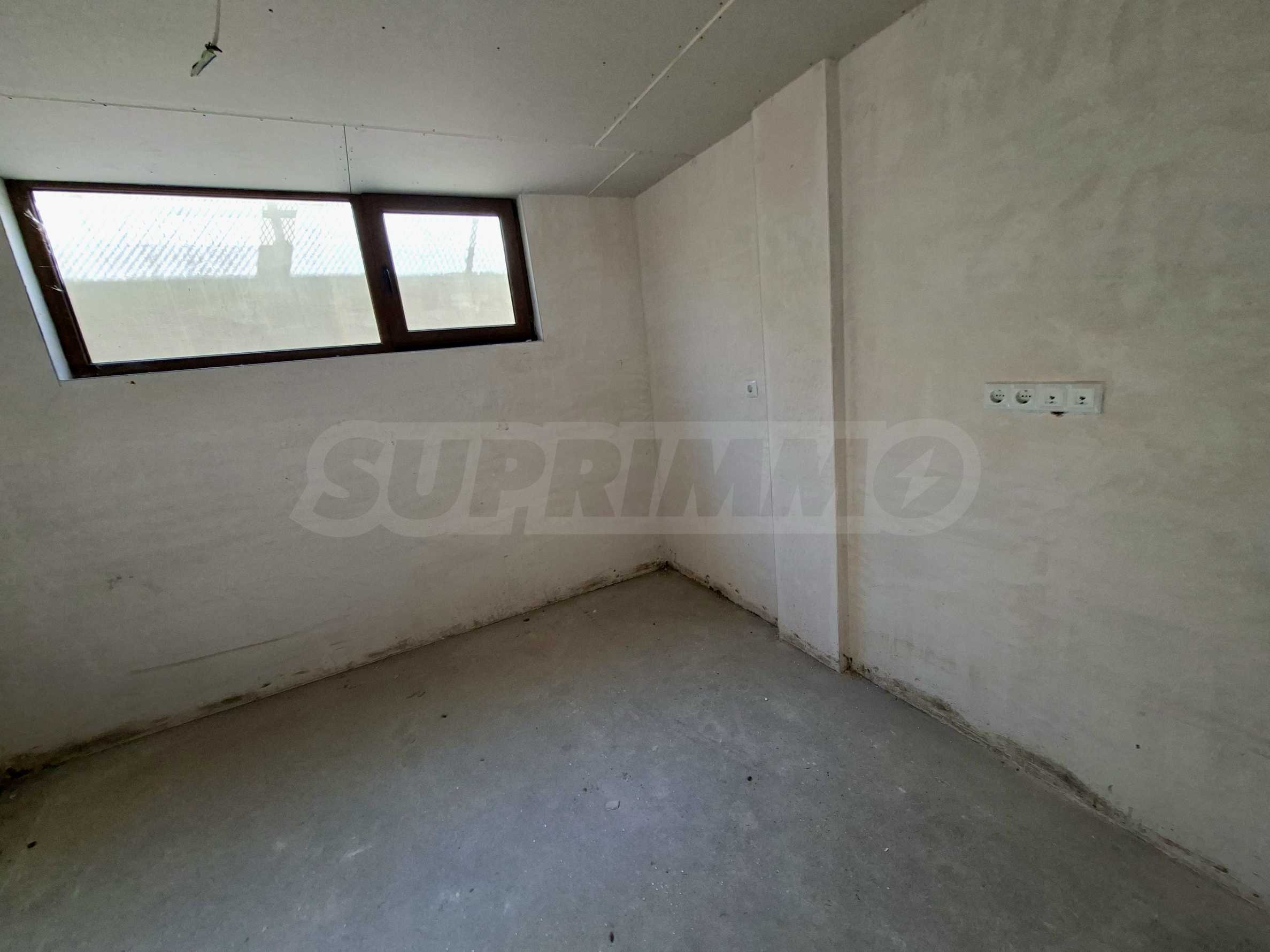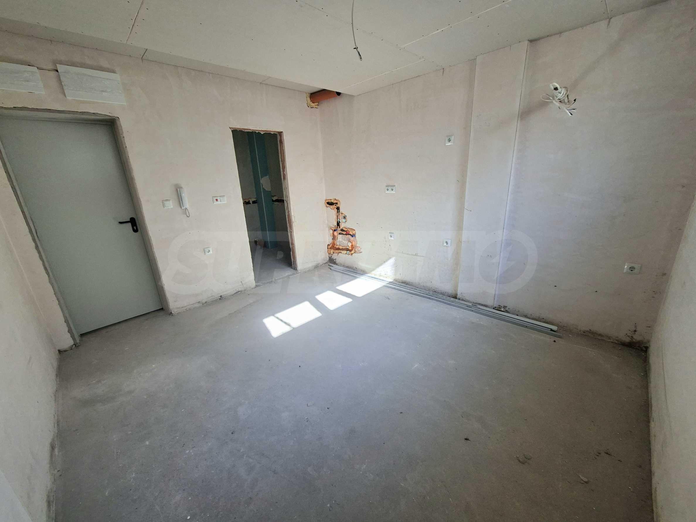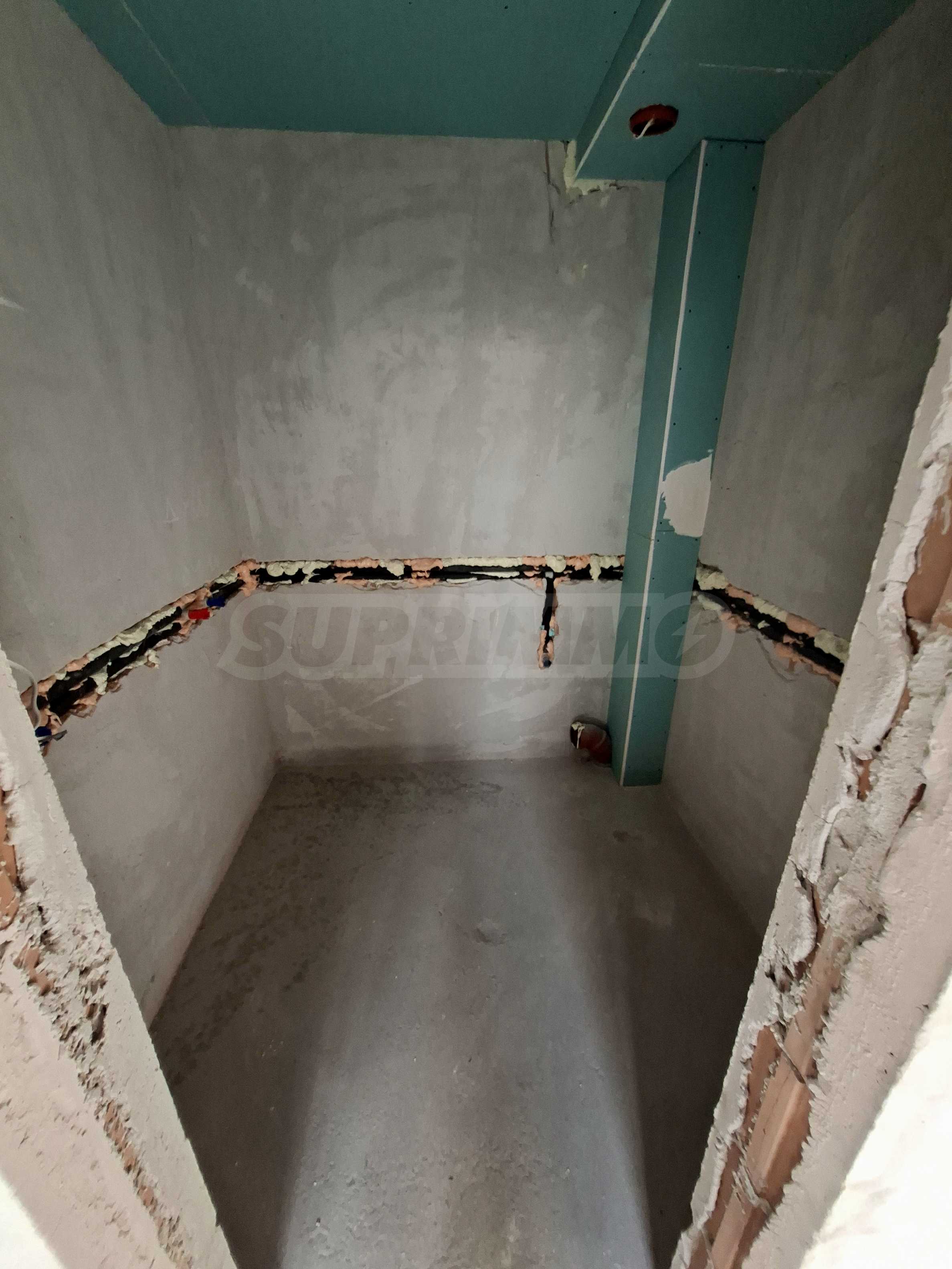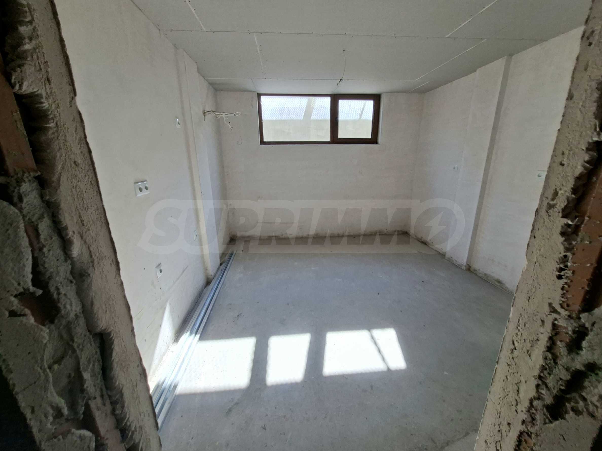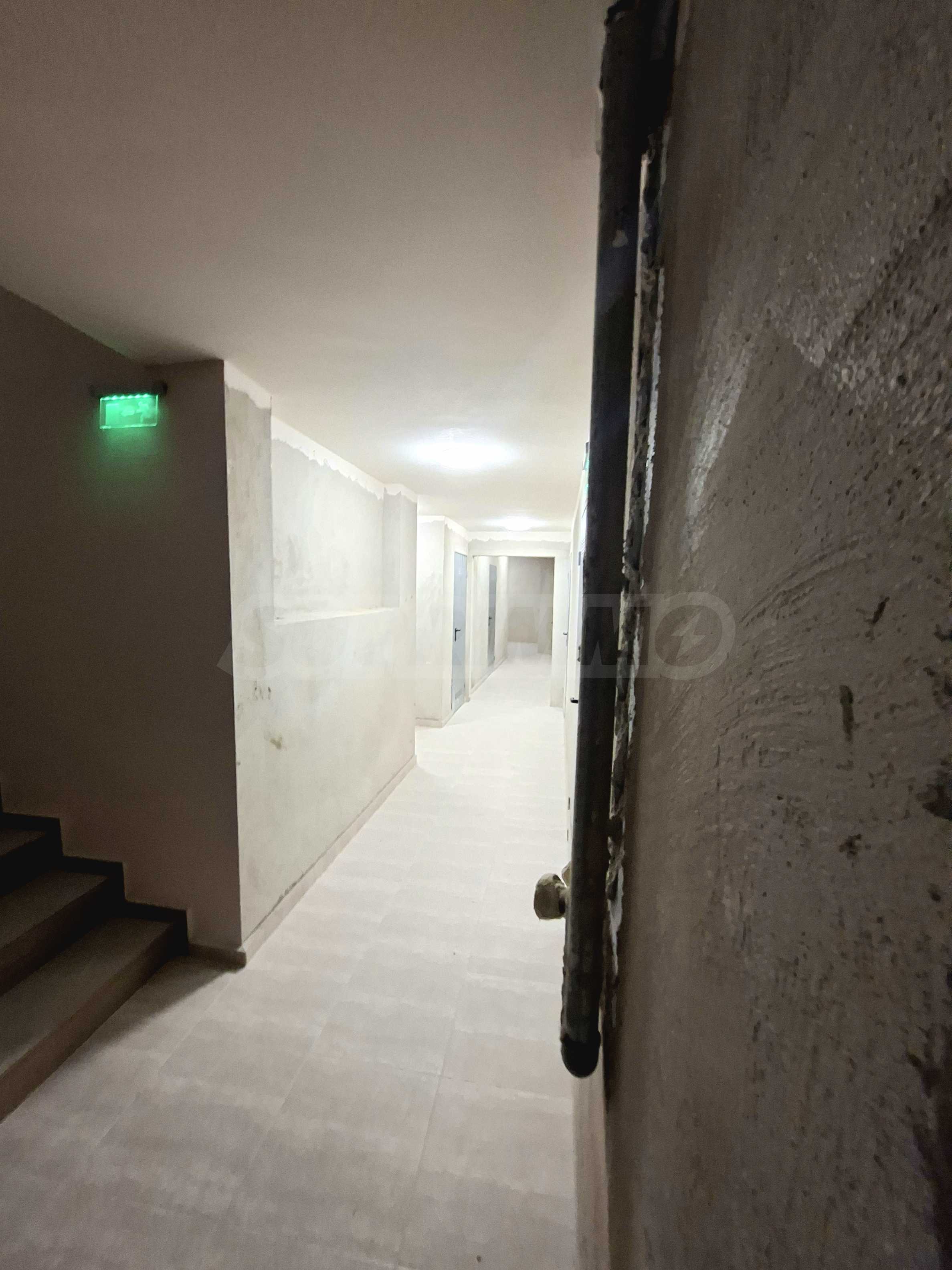 Имотът е с обща площ от 22,16 кв.м, ситуиран на полусутеренен етаж, разполага с: антре, едно помещение и баня с тоалет. Предлага се в степен на завършеност по БДС, на шпакловка и замазка.