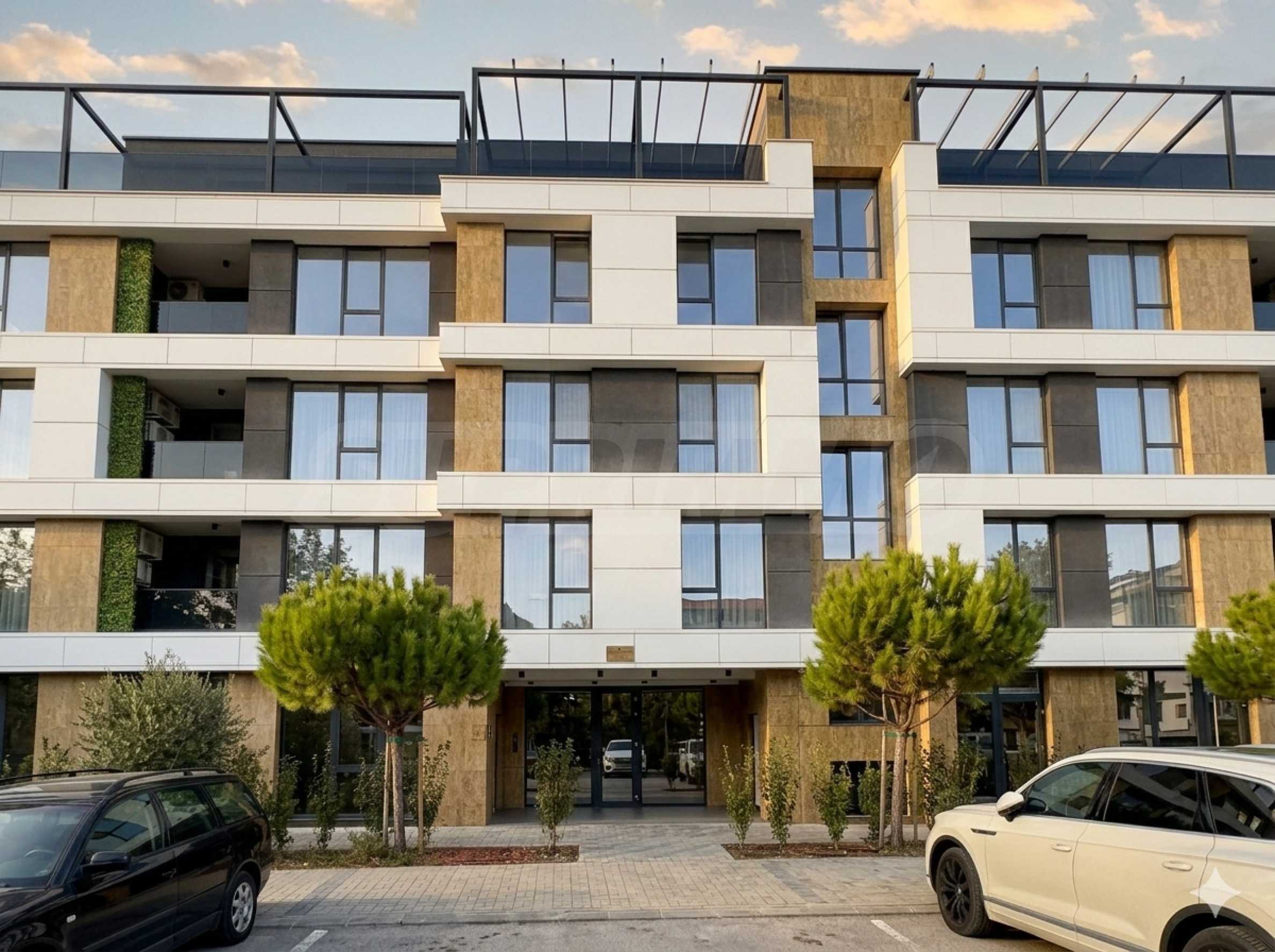 Сградата White View е с представителни общи части – лоби с рецепция, мека мебел, премиум настилки и осветление. Фасадата е вентилируема, инсталациите са съвременни, а алуминиевата дограма Reynaers с троен стъклопакет пази покоя вътре.