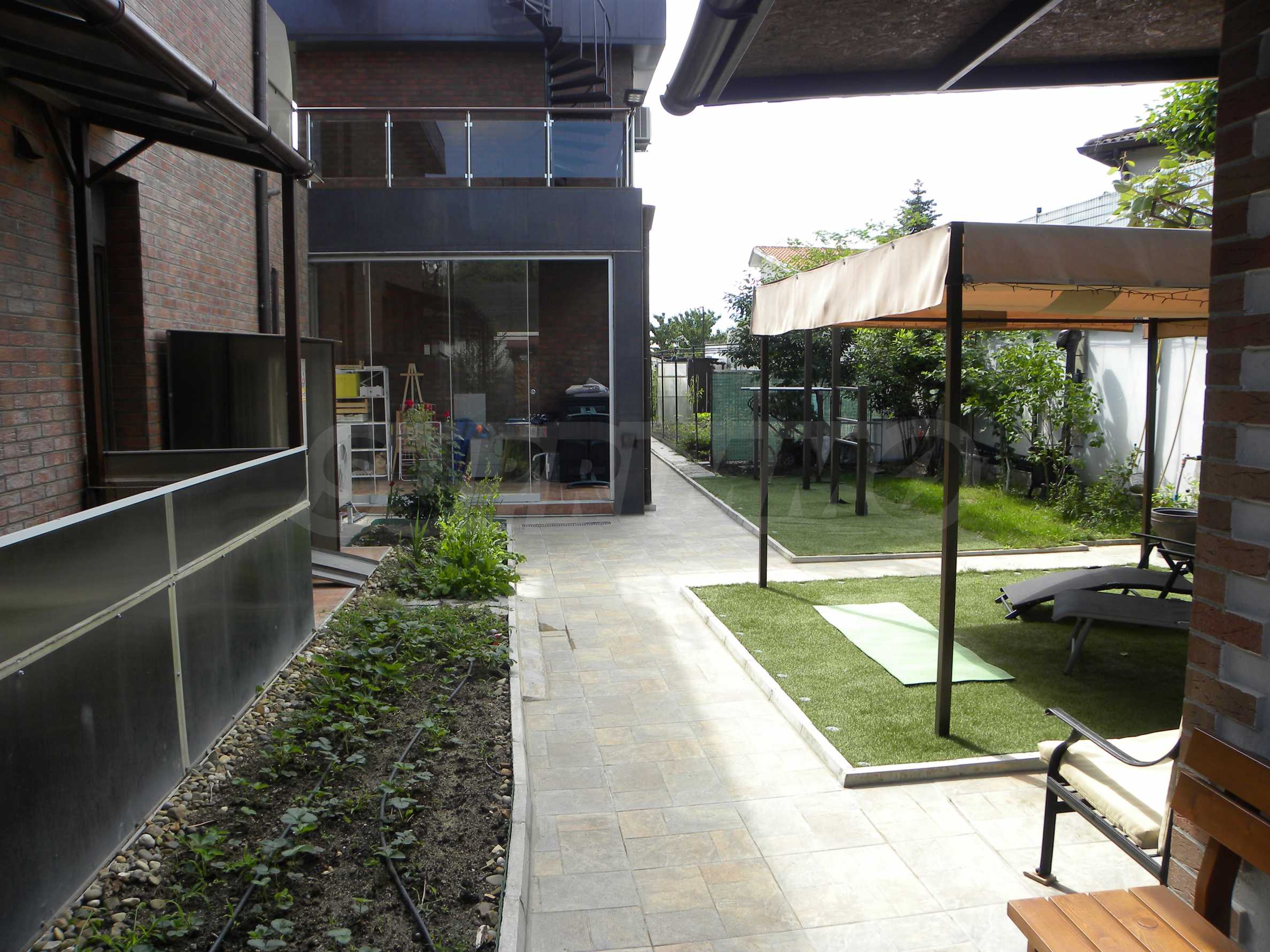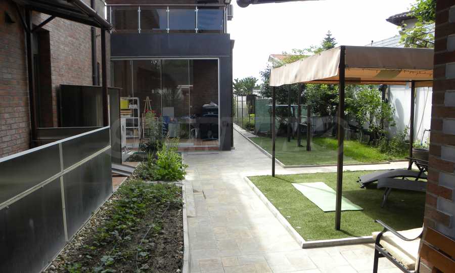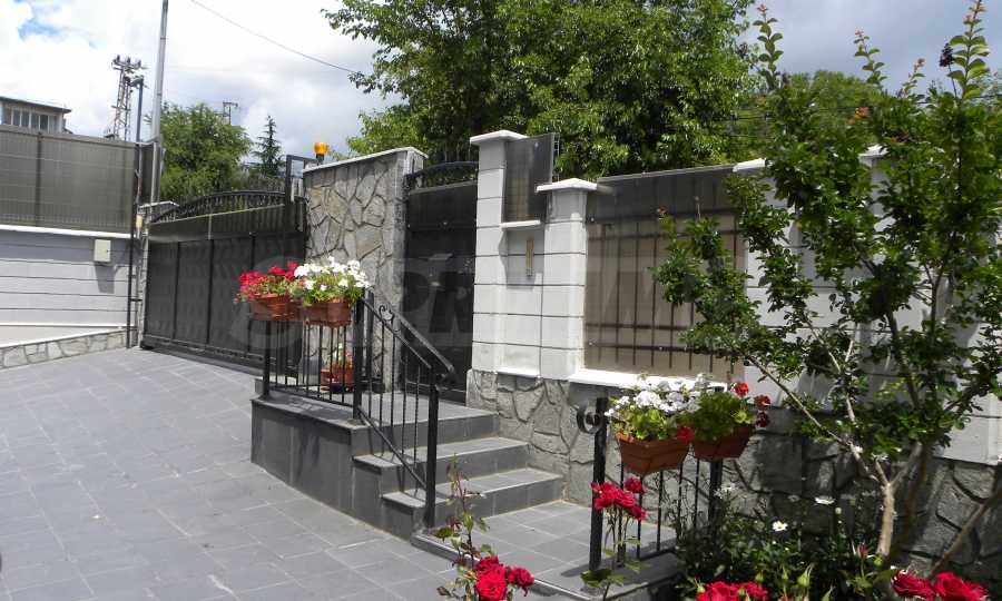 Целият имот е обграден с масивна ограда и разполага с електрически гаражен портал. По границите на територията са монтирани камери за видеонаблюдение. Между двете къщи, на двете нива, има площадки, които са усвоени и не са включени в квадратурите на къщите.