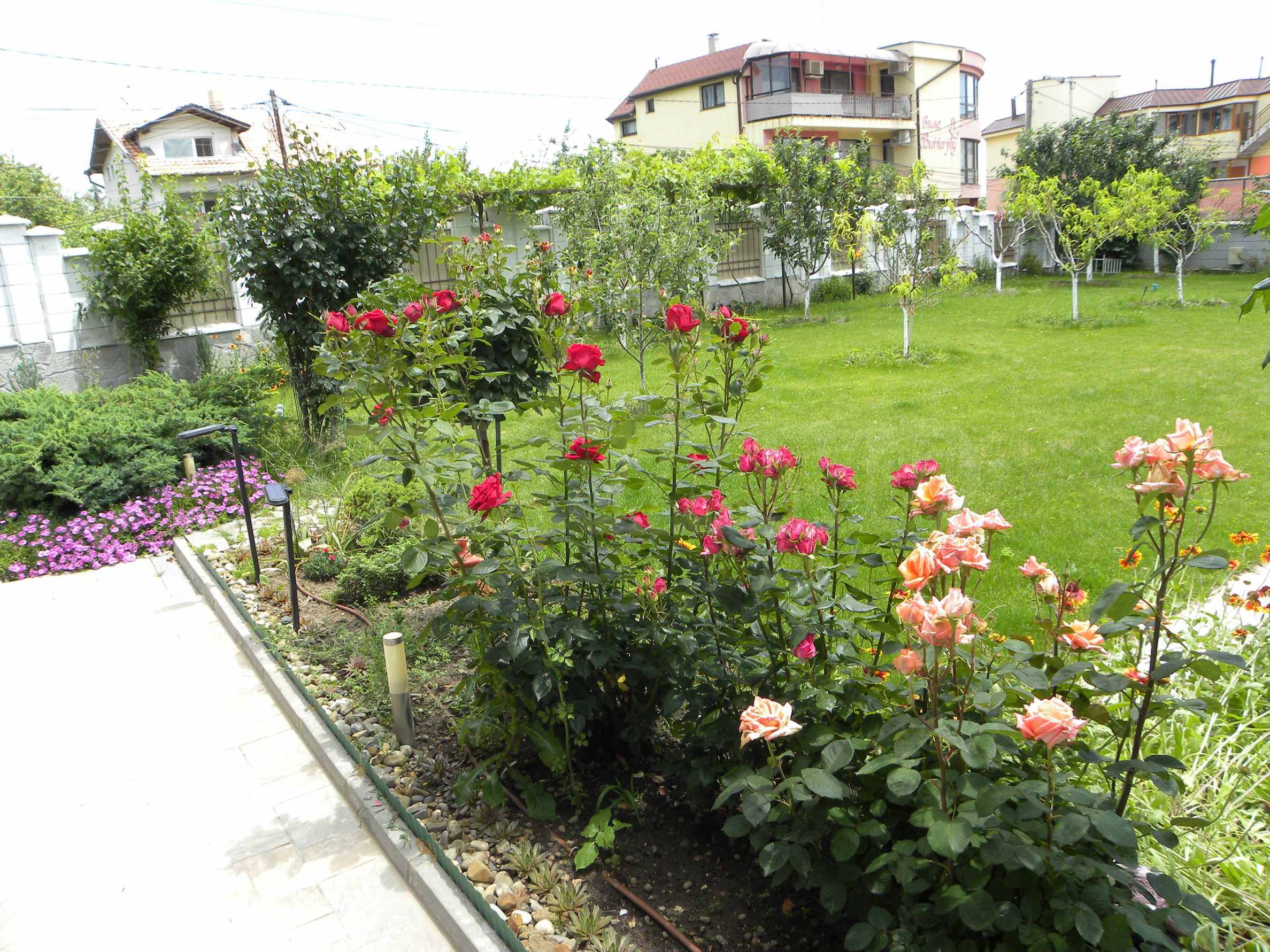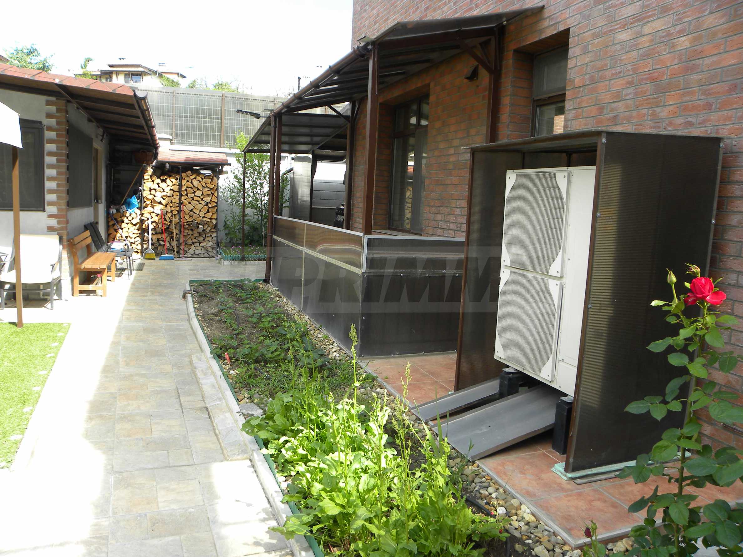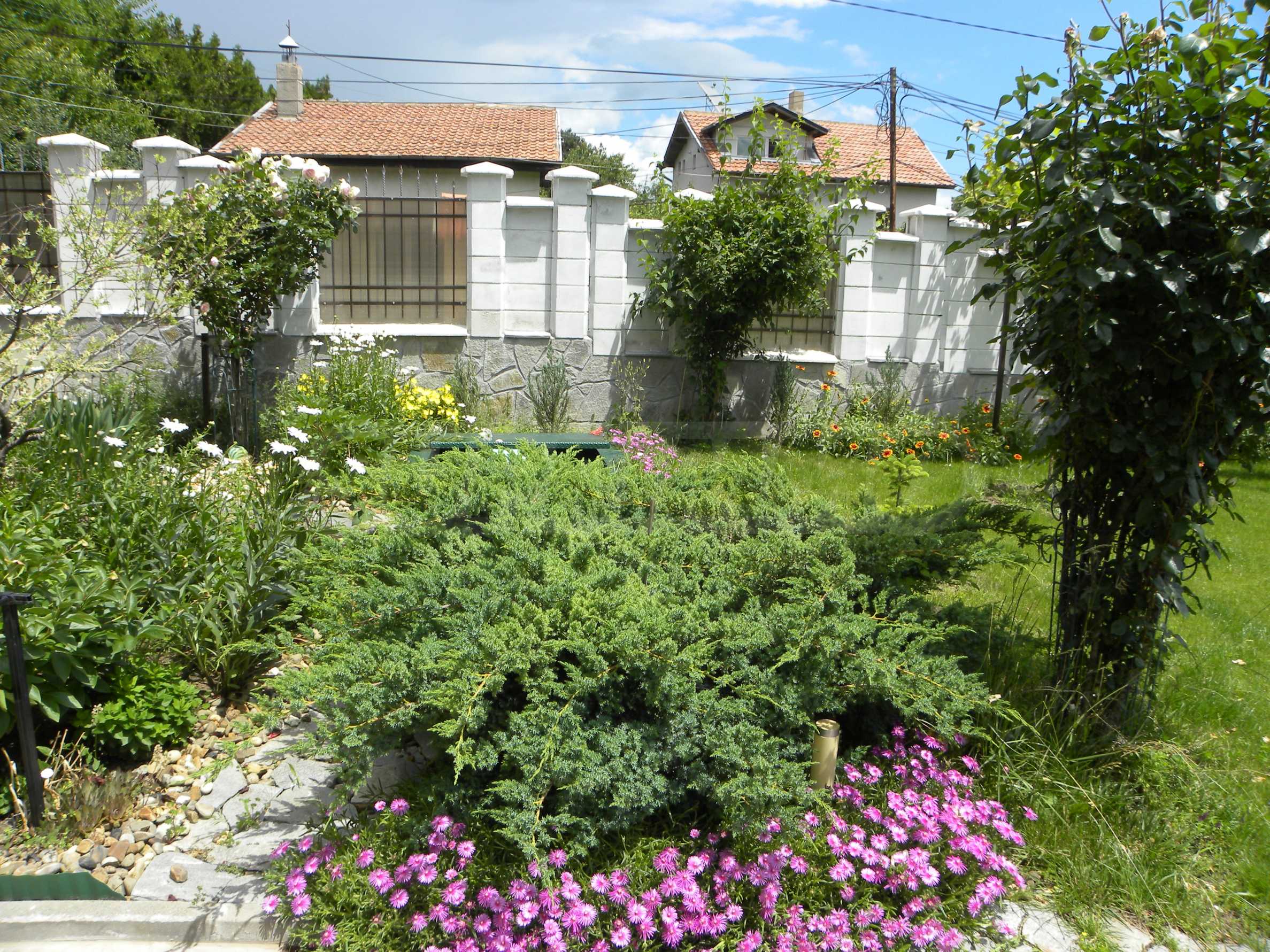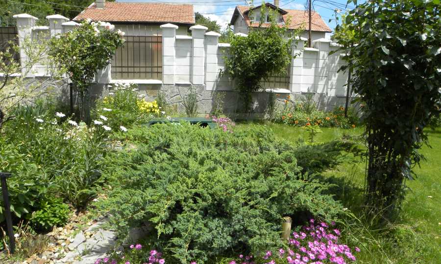 Останалата част от парцела е добре озеленена с райграс, цветна градина, засадени млади плодни дръвчета, изграден парник за зеленчуци.
