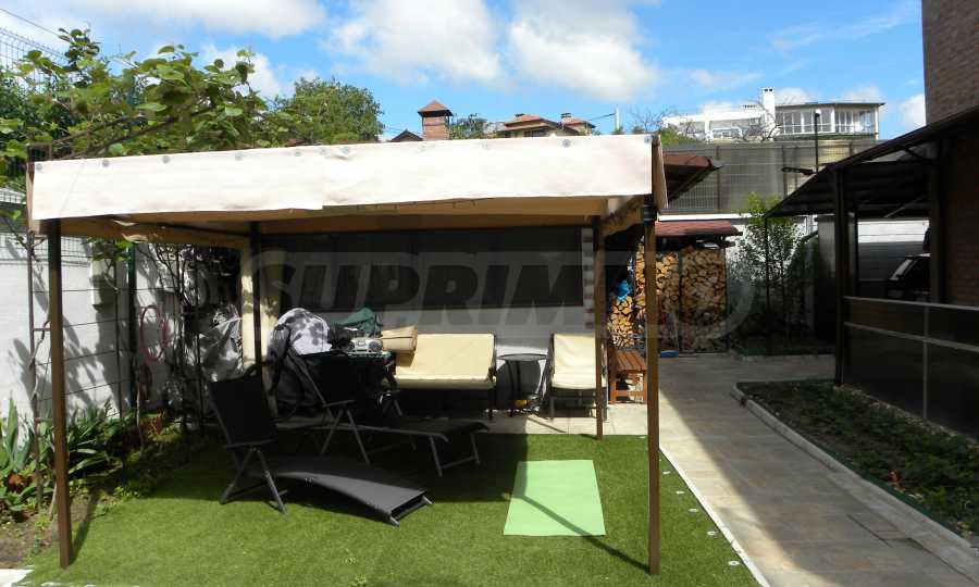 На двора е изградено закрито помещение с лятна кухня, барбекю и пещ, в което има трапезна маса, допълнително е поставена тента, и има отделна малка оборудвана работилница с външна баня и тоалет – 10 кв.м.
