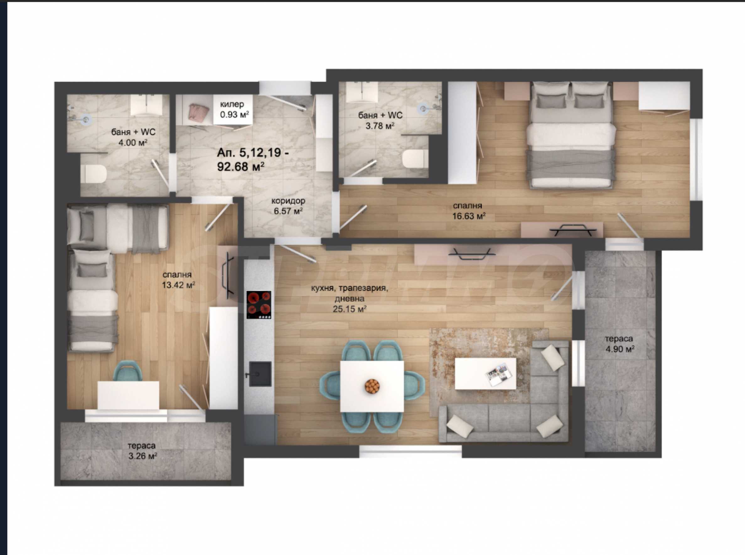 • просторна дневна с кухненски кът и трапезарна зона – идеална за ежедневни моменти с близки и приятели;