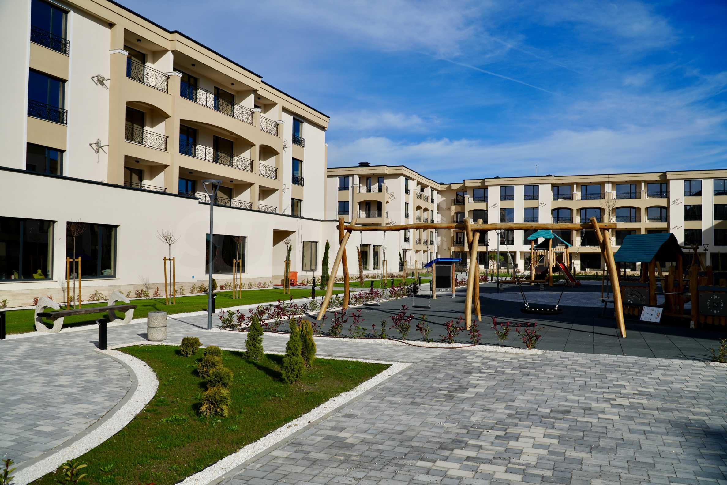 Комплексът е затворен тип с контролиран достъп, зелени площи, детски и спортни зони – всичко за комфортен и сигурен начин на живот. Наличието на Акт 16 гарантира завършеност и инвестиционна сигурност.
