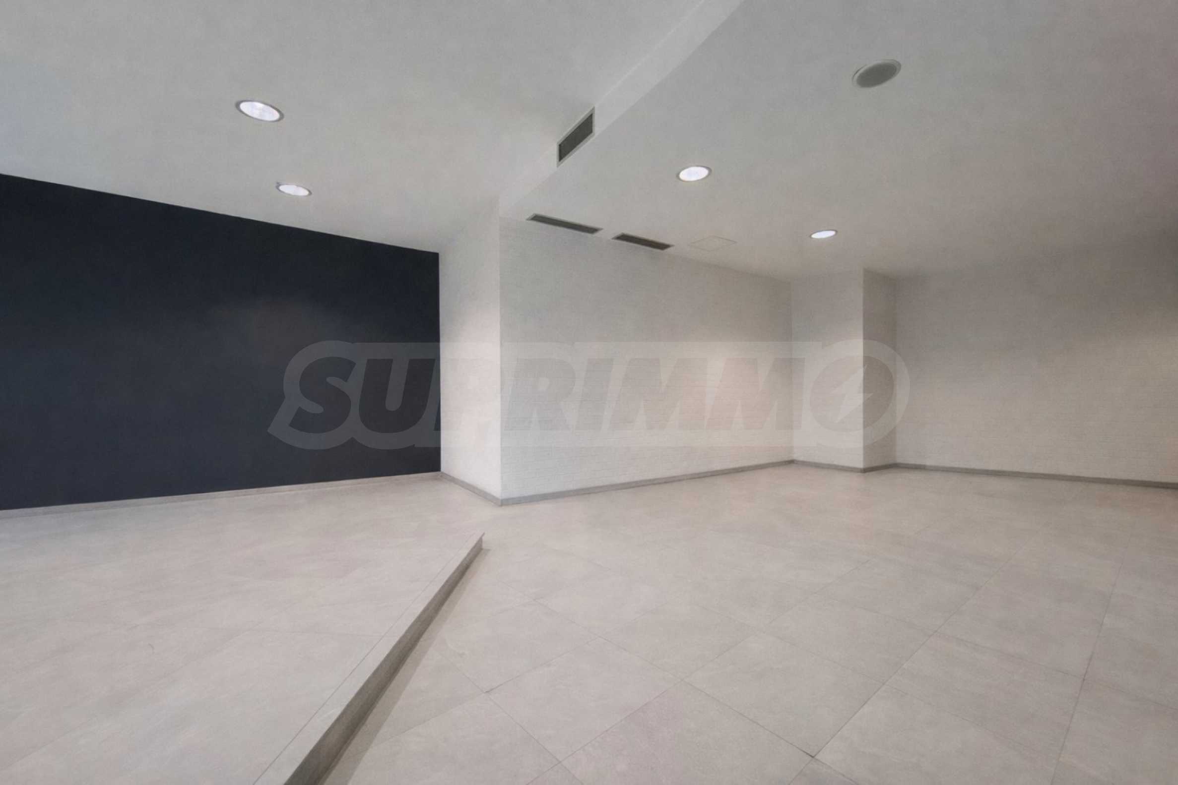 Имотът е ситуиран на партерно ниво и е с обща площ от 120 кв.м. Пространството е функционално организирано и включва основна търговска част, складово помещение и санитарен възел. Помещението е в отлично състояние и се предлага завършено „до ключ“. Търговската зона разполага с обширна и атрактивна витрина, която осигурява отлична видимост, естествена светлина и добра експозиция към преминаващите.