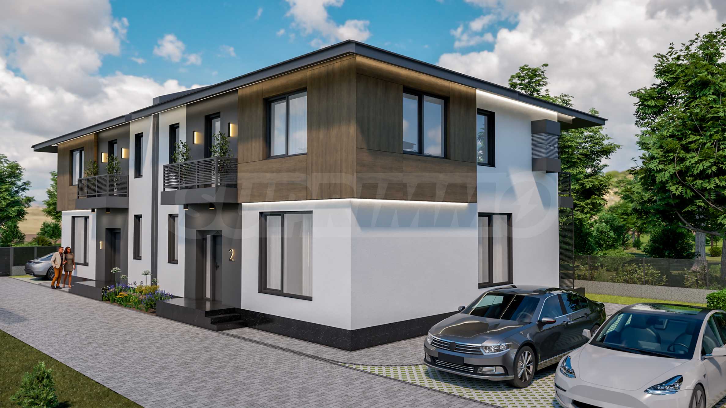 Проектът включва четири двойки къщи, изпълнени две по две на калкан. Всяка двойка се състои от къща тип А и къща тип Б, като тип Б е огледален образ на тип А. Архитектурната концепция гарантира визуална хармония и балансирана естетика, съчетана с усещане за индивидуалност и пространство.