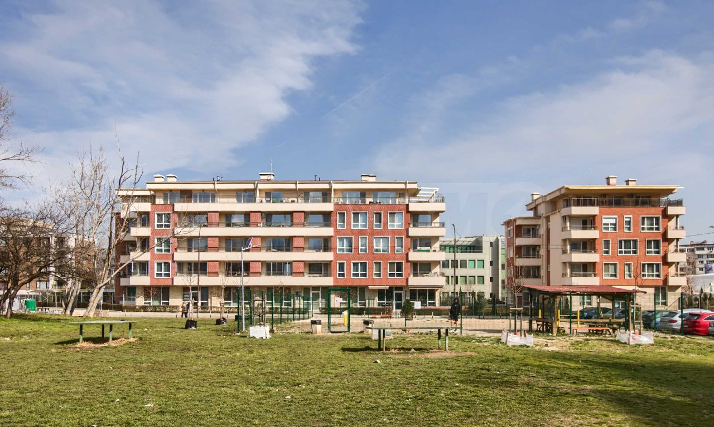Апартаментът е част от малък и добре поддържан комплекс от две сгради, разположен в спокойна и озеленена зона на квартала. Локацията съчетава тиха жилищна среда и отлична транспортна достъпност, което прави имота подходящ както за лично ползване, така и за инвестиция.