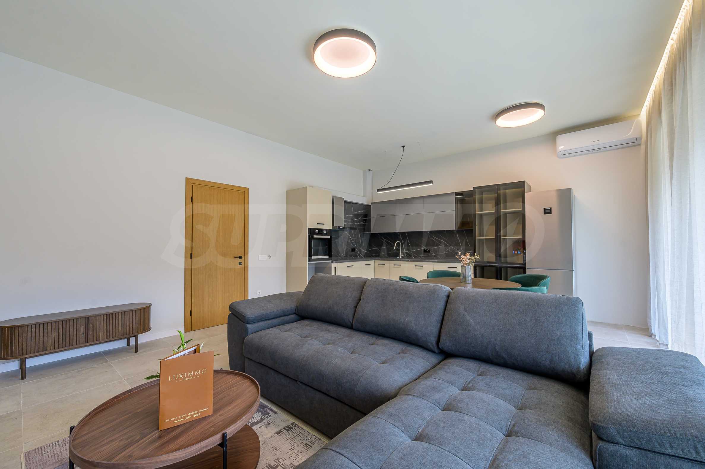 Апартаментът е изключително топъл и уютен, с газово отопление и климатици във всяко помещение. Обзаведен е с висок клас мебели и електроуреди от утвърдени марки, подбрани с внимание към детайла и ежедневния комфорт.