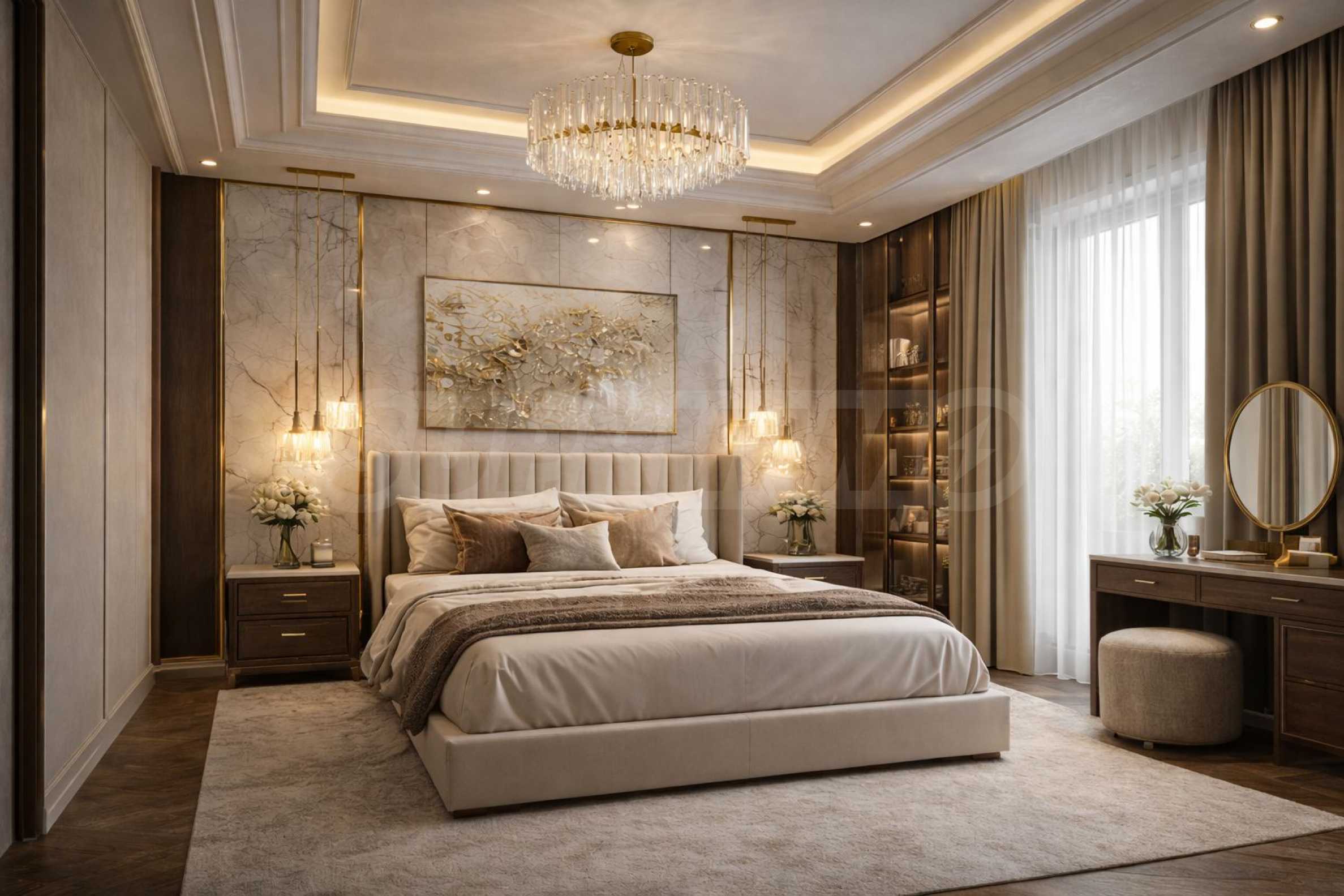 Продава се в степен на завършеност по БДС, на шпакловка и замазка. Интериорните снимки са примерни визуализации.