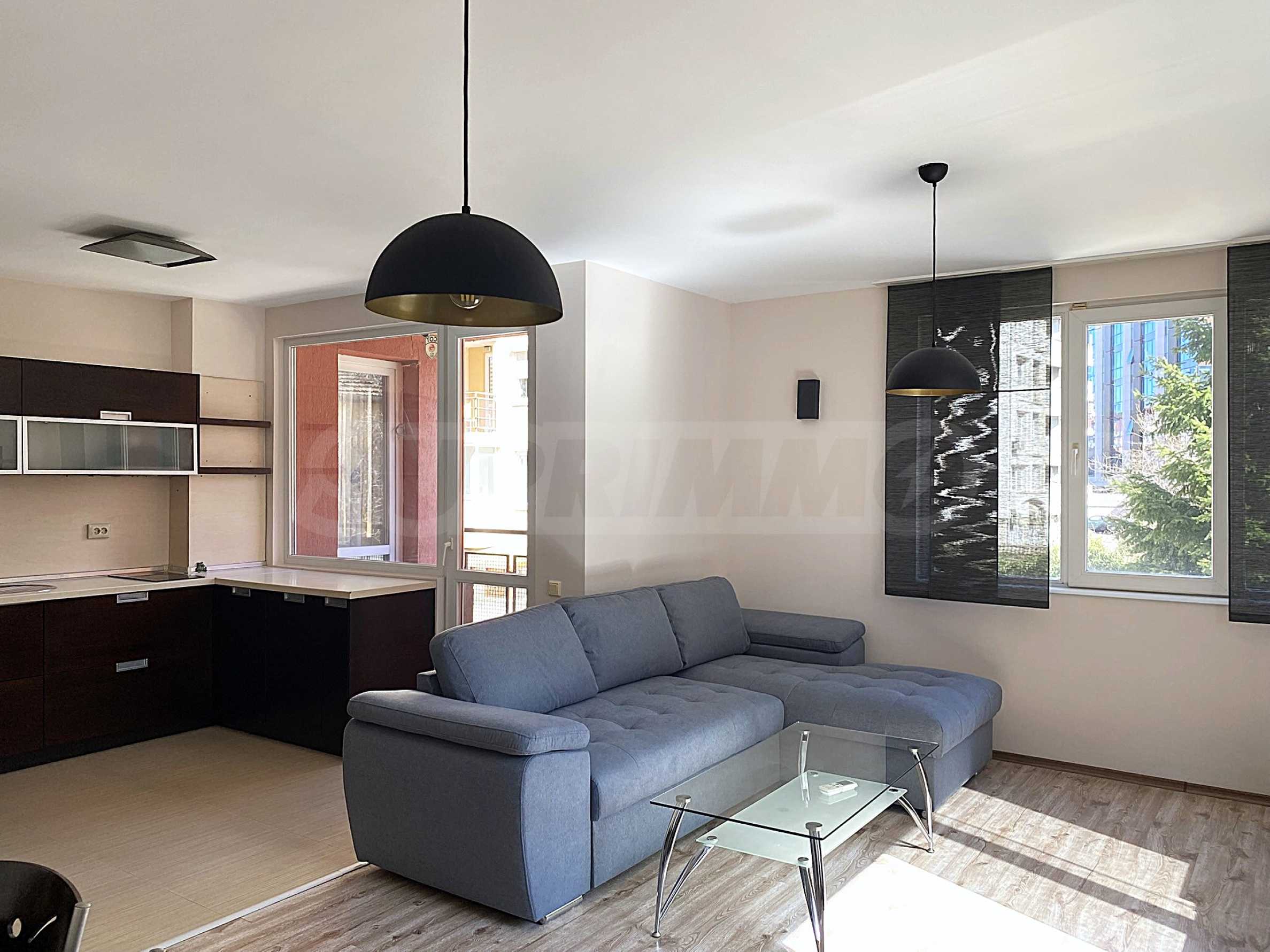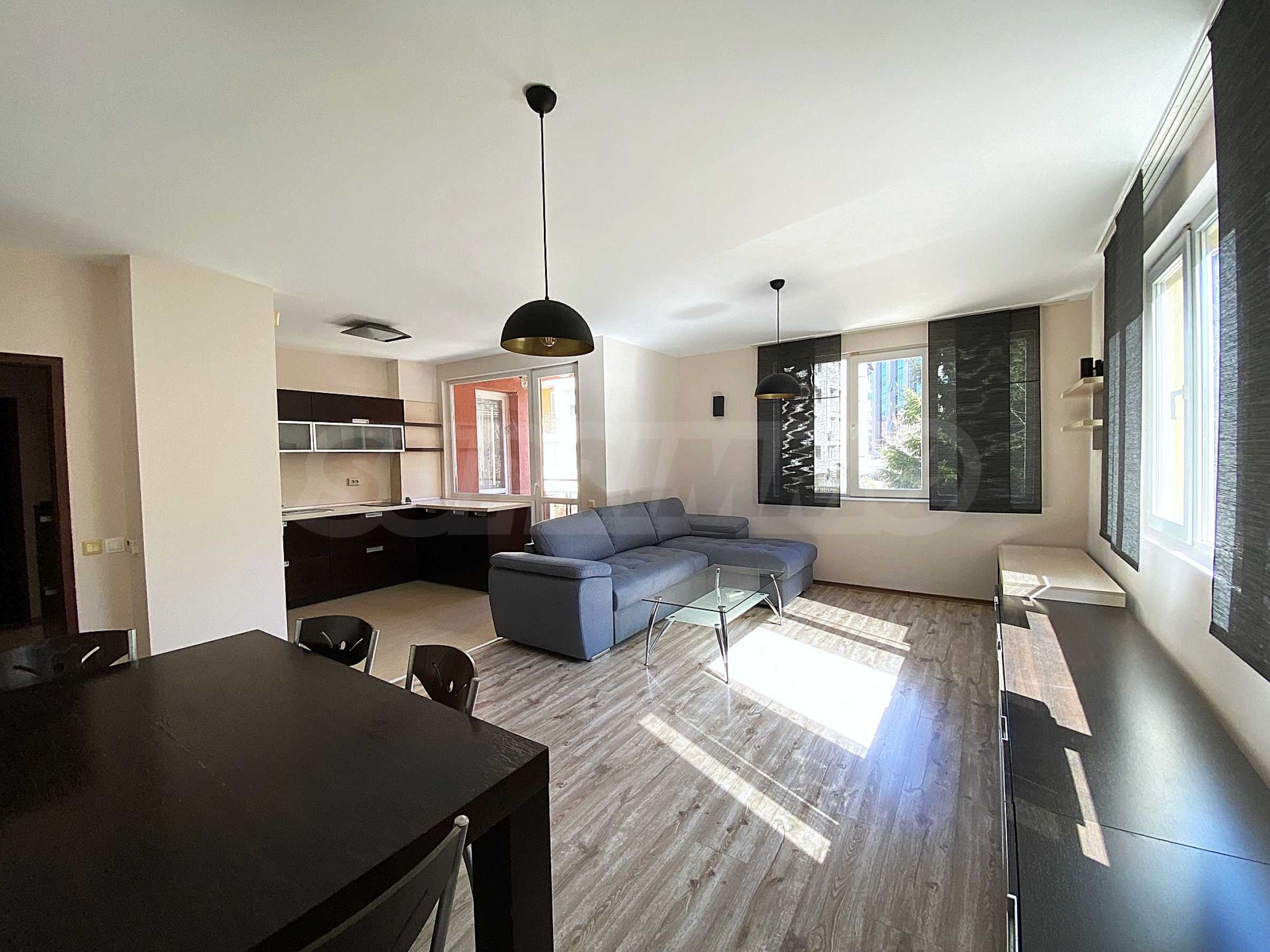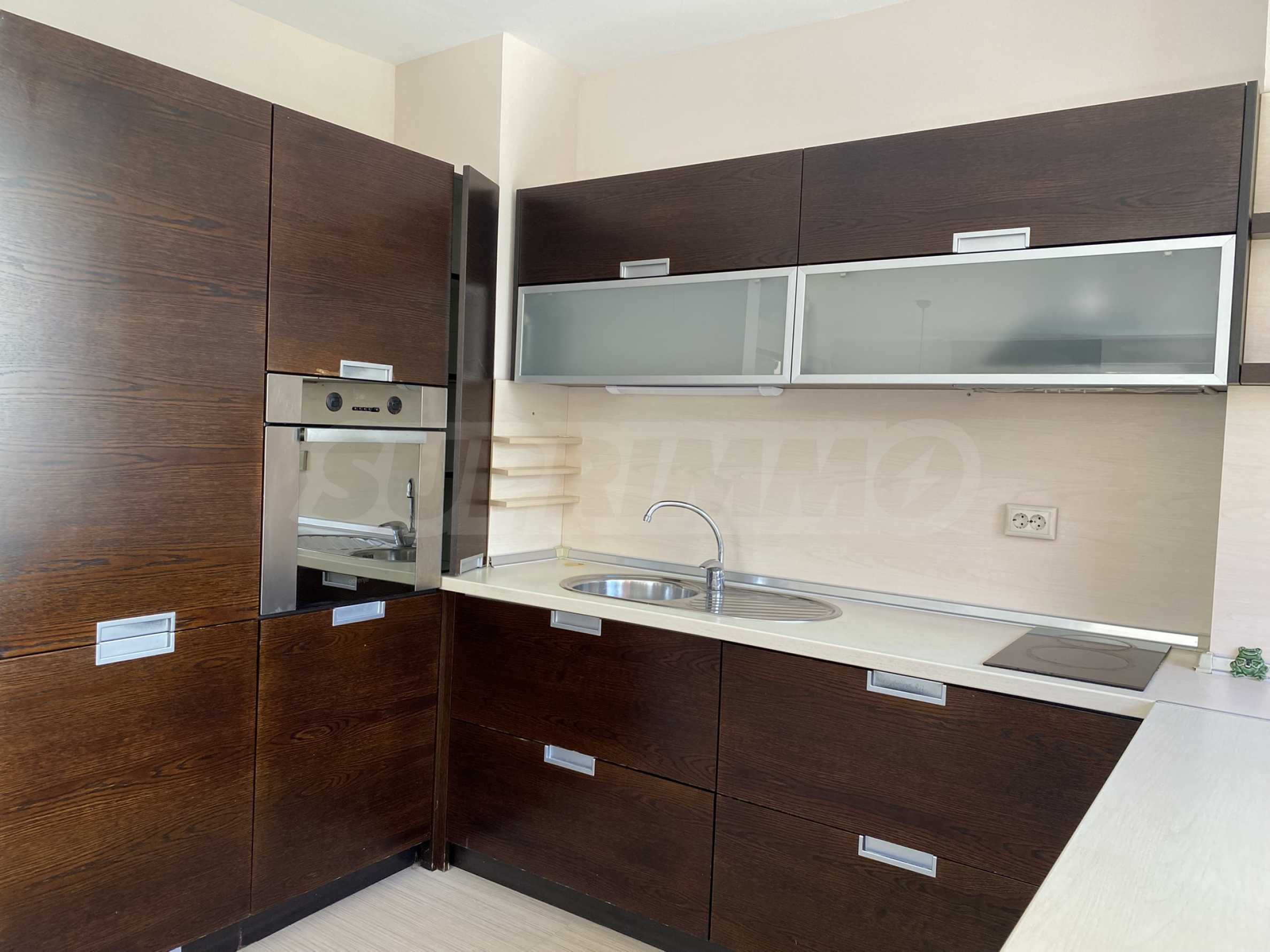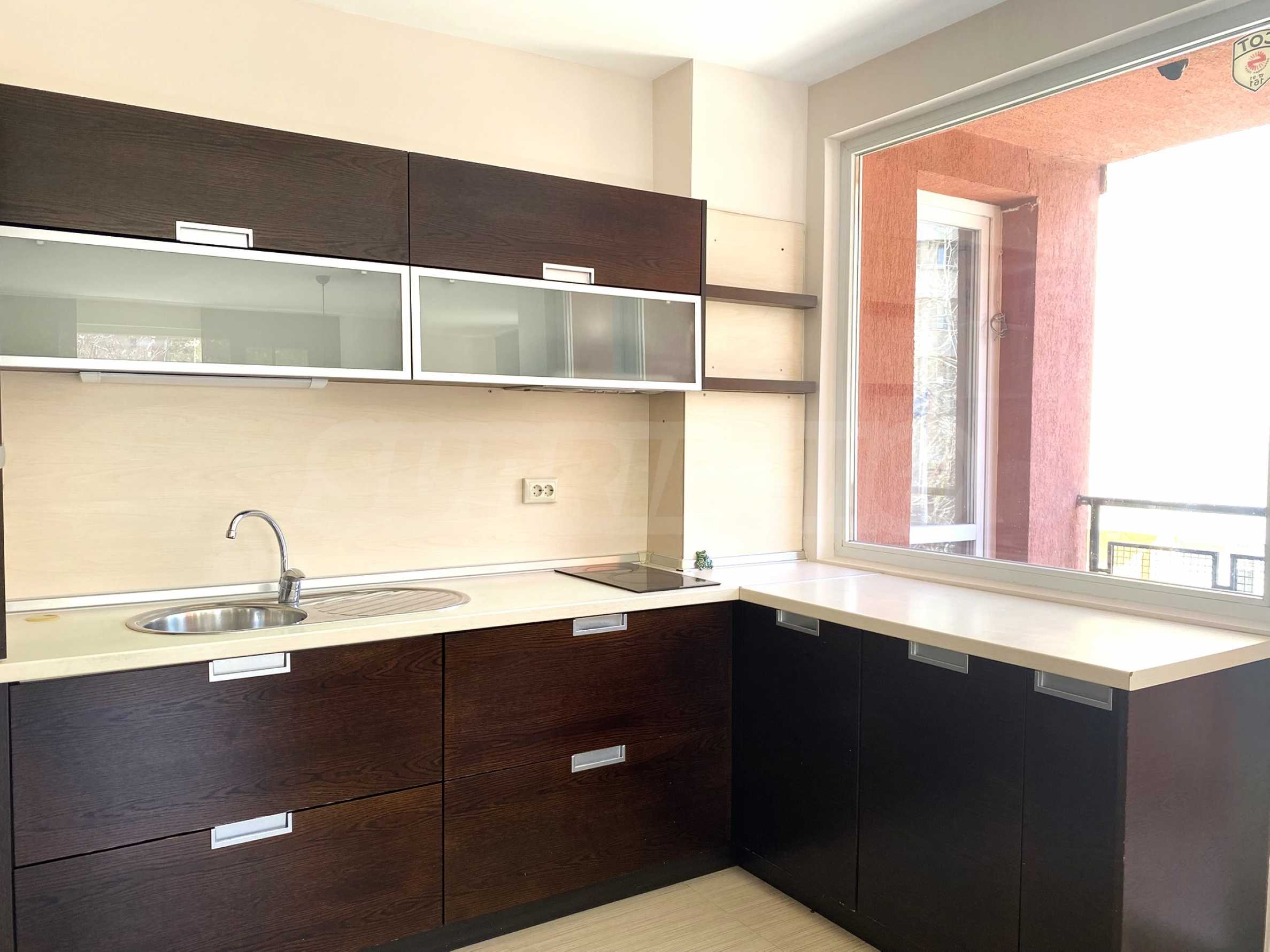 Дневната е просторна и слънчева, с големи прозорци, които осигуряват изобилие от естествена светлина през целия ден. Кухнята е практично организирана и оборудвана с необходимите електроуреди и достатъчно шкафове за съхранение.
