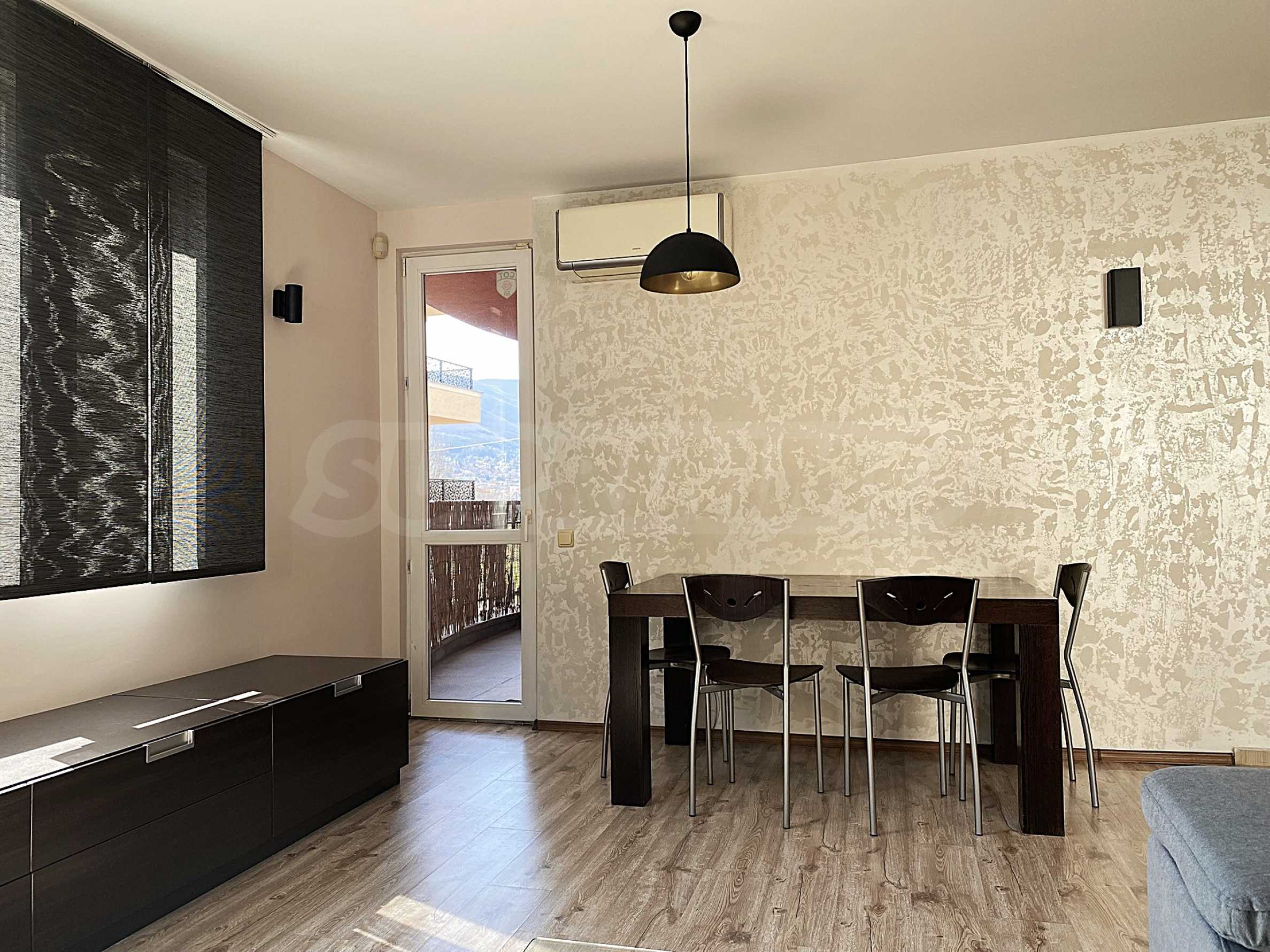 • светла дневна зона с мека мебел и кът за хранене;