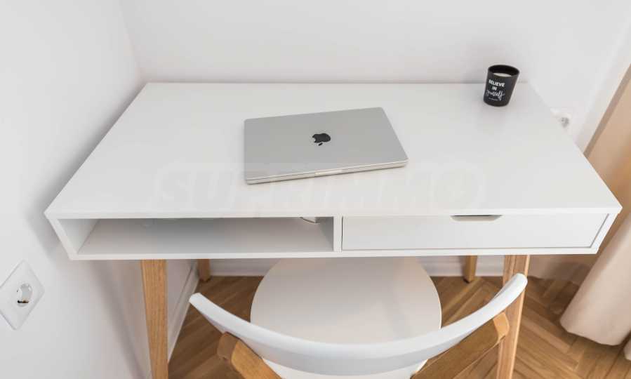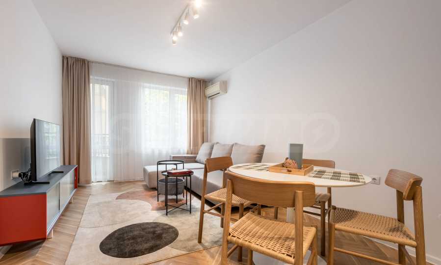 Жилището с обща площ от 70 кв.м е луксозно и модерно обзаведено с изцяло нови мебели и електроуреди, съчетаващи комфорт, функционалност и съвременен стил. Изключително светло и уютно, с просторни помещения и приятна атмосфера, подходящо както за сам човек, така и за двойка.
