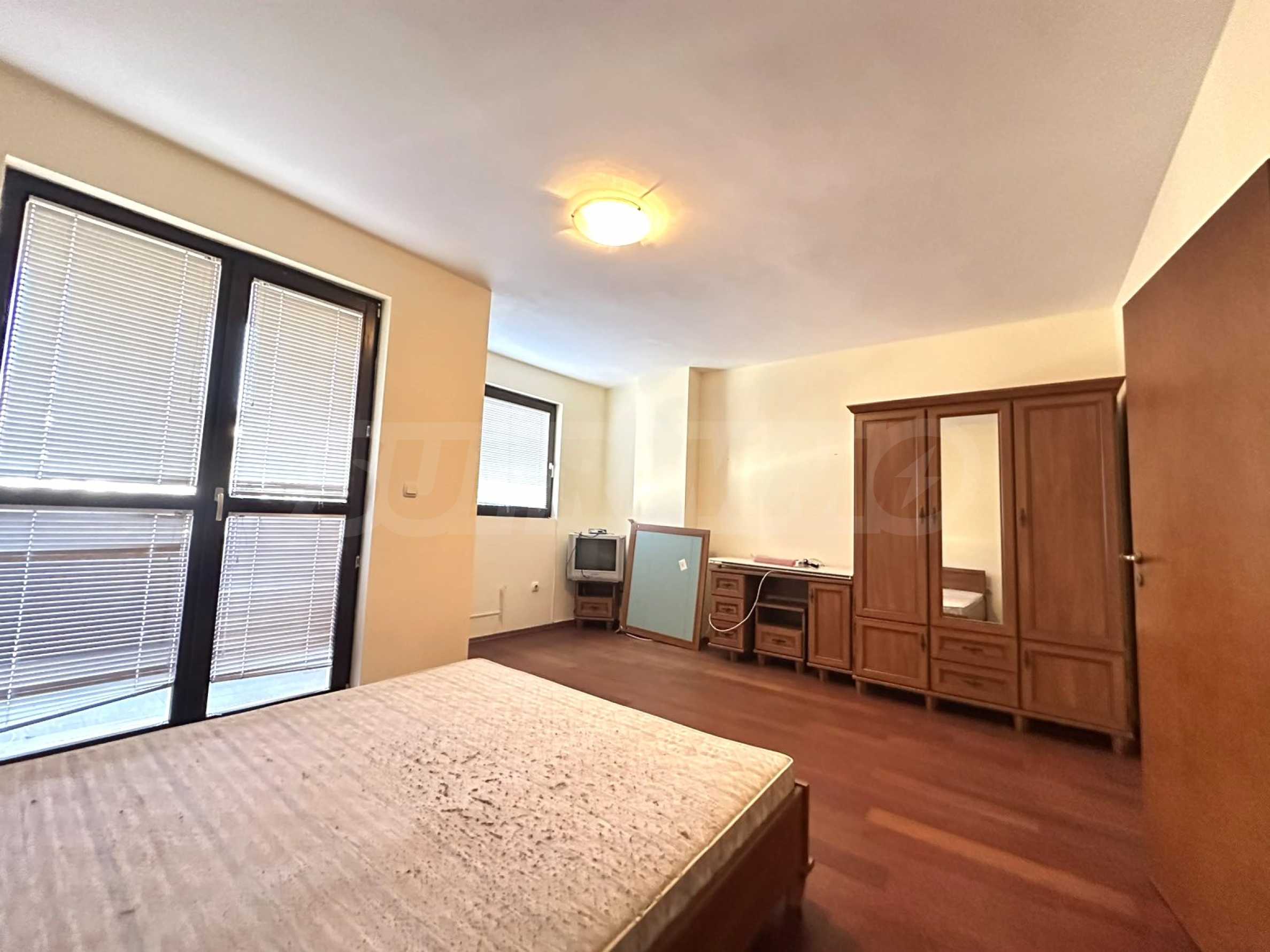 Подовата настилка е дъбов ламинат, прозорците са с PVC-дограма, стените са боядисани с латекс.