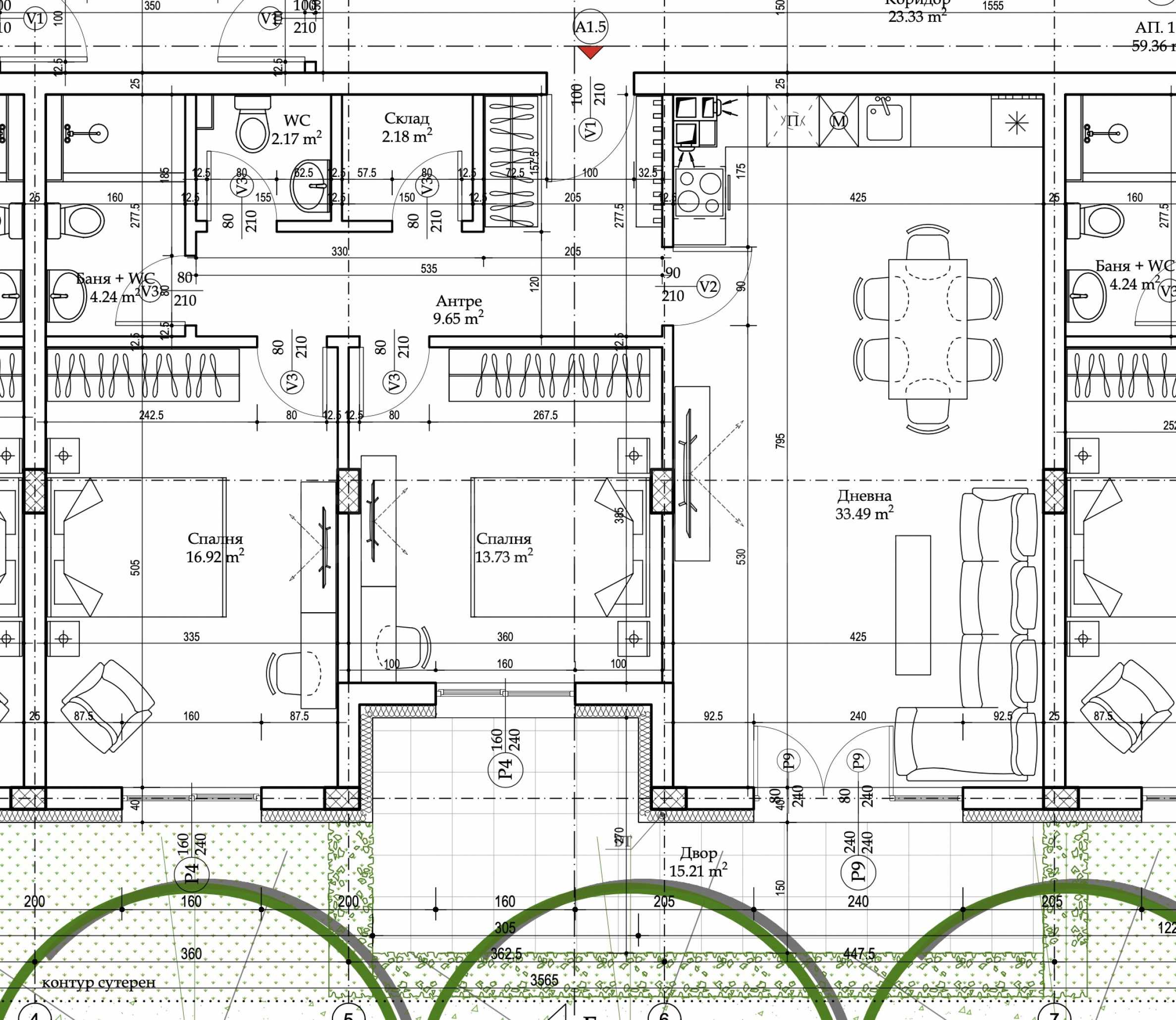 Отоплението ще бъде с термопомпа и конвектори, които осигуряват и охлаждане през лятото.